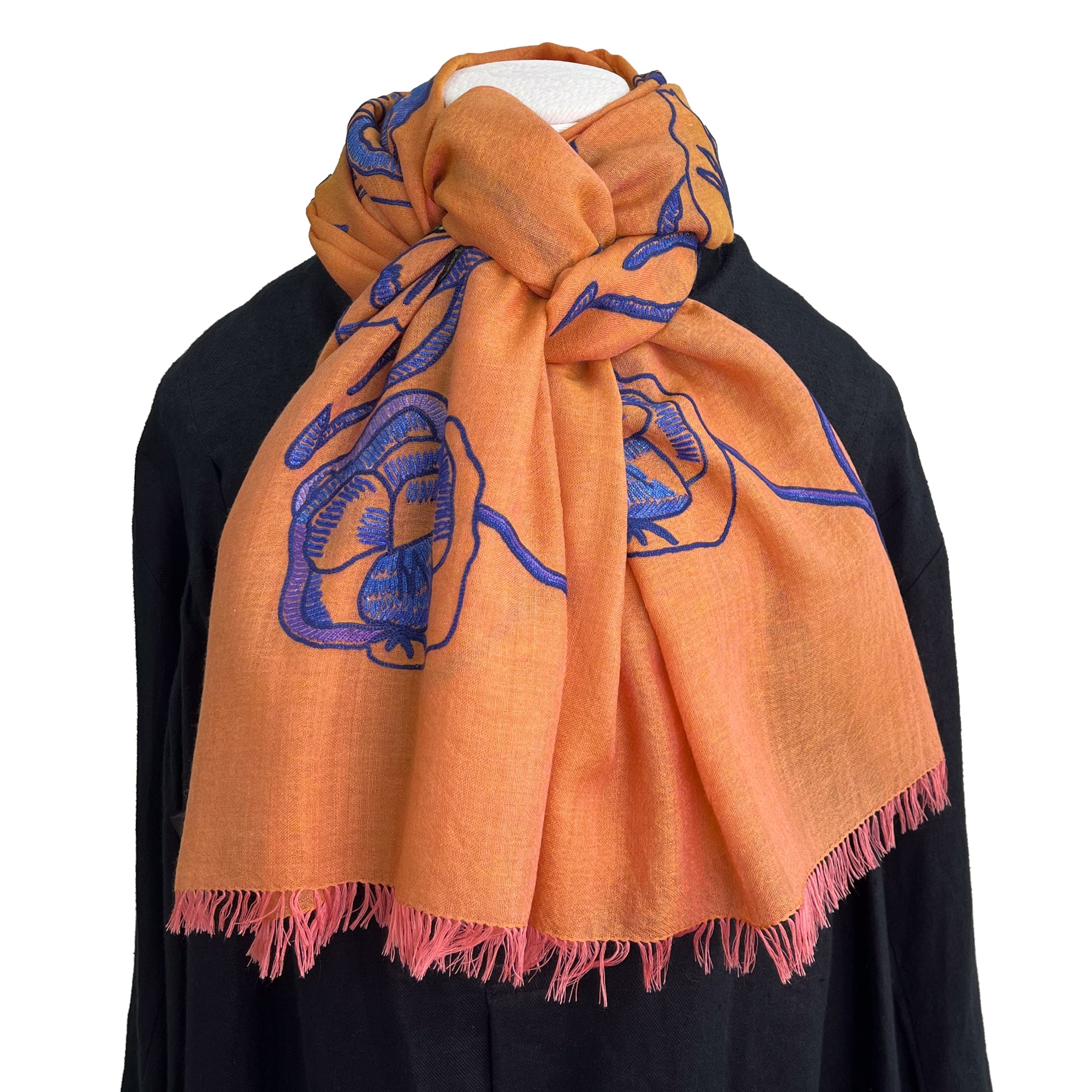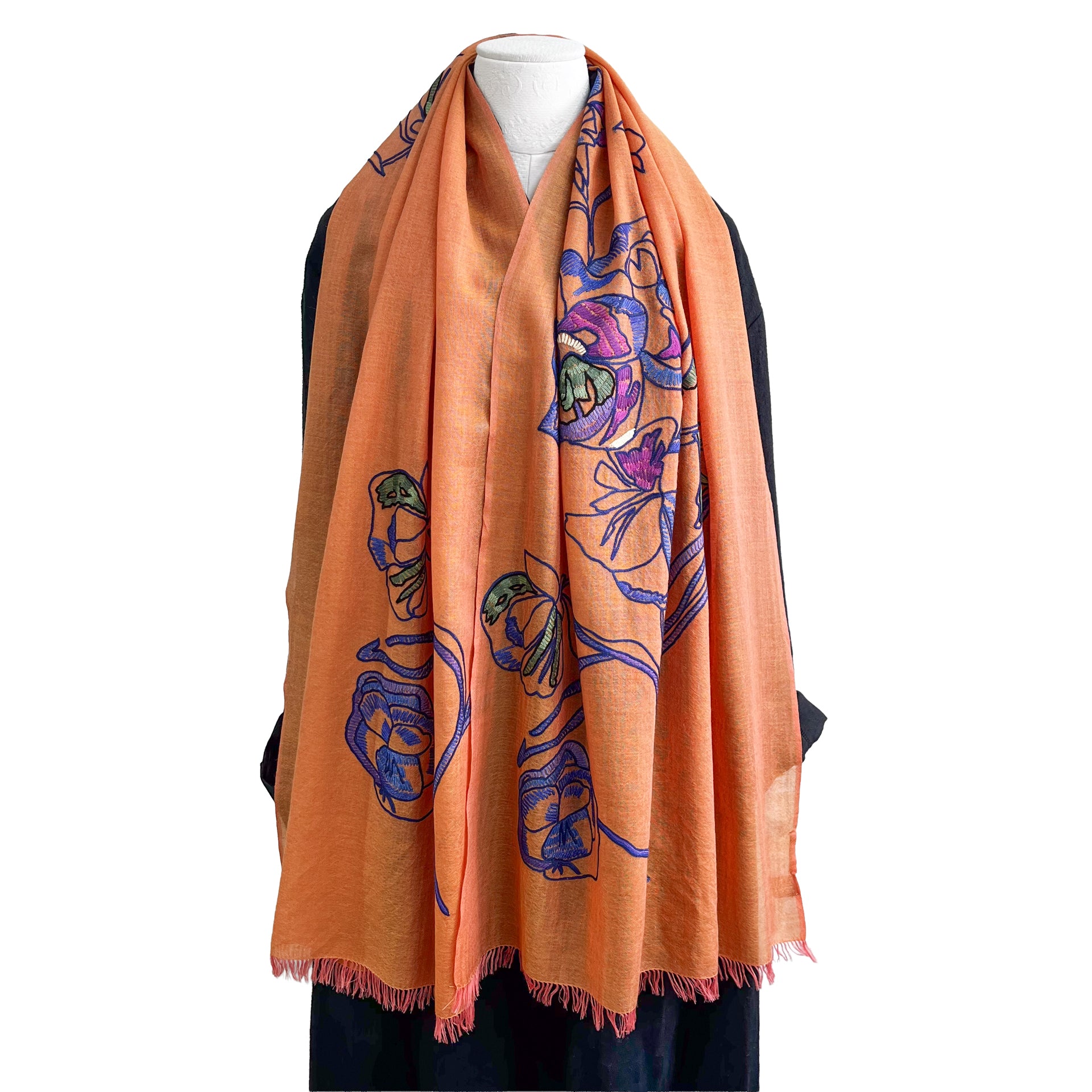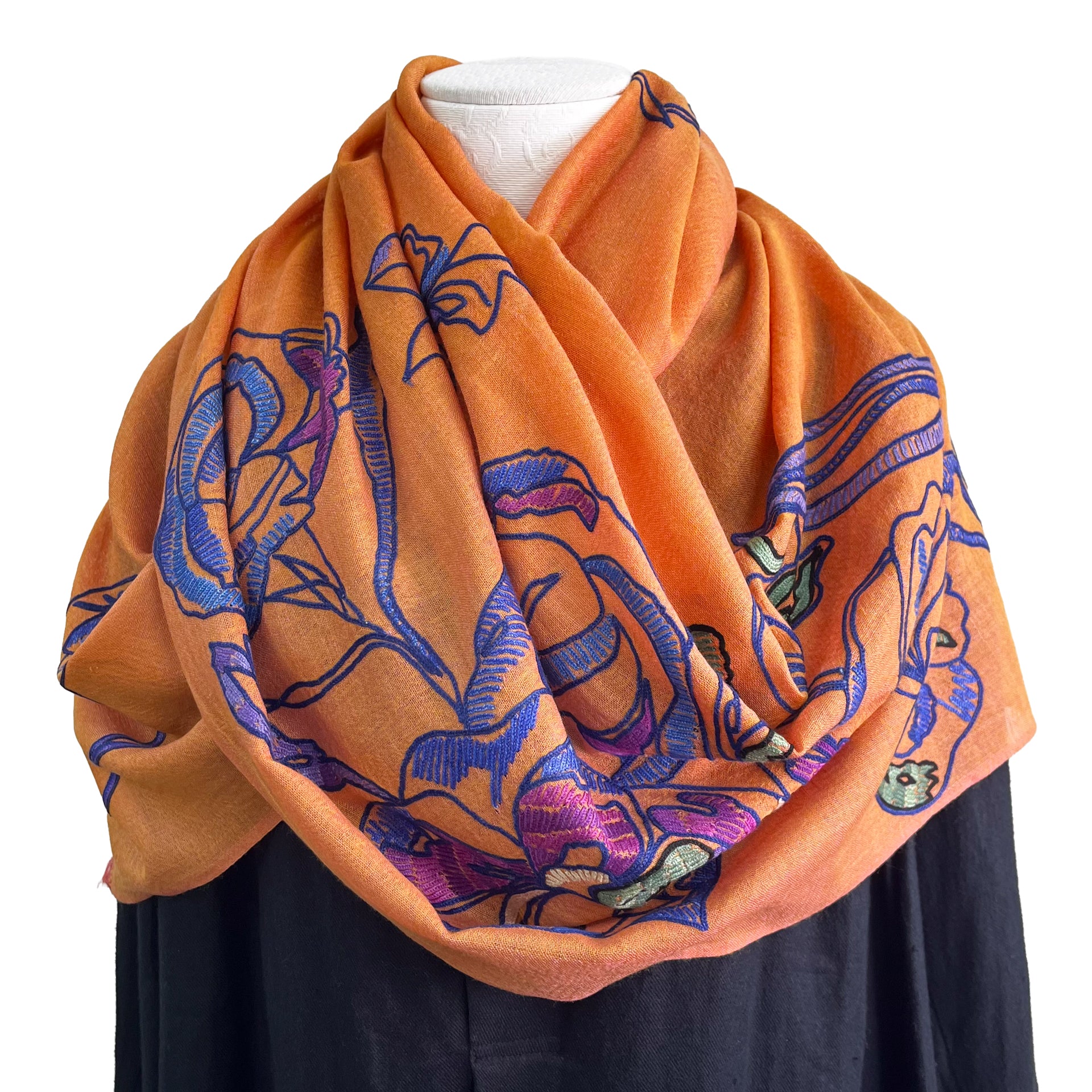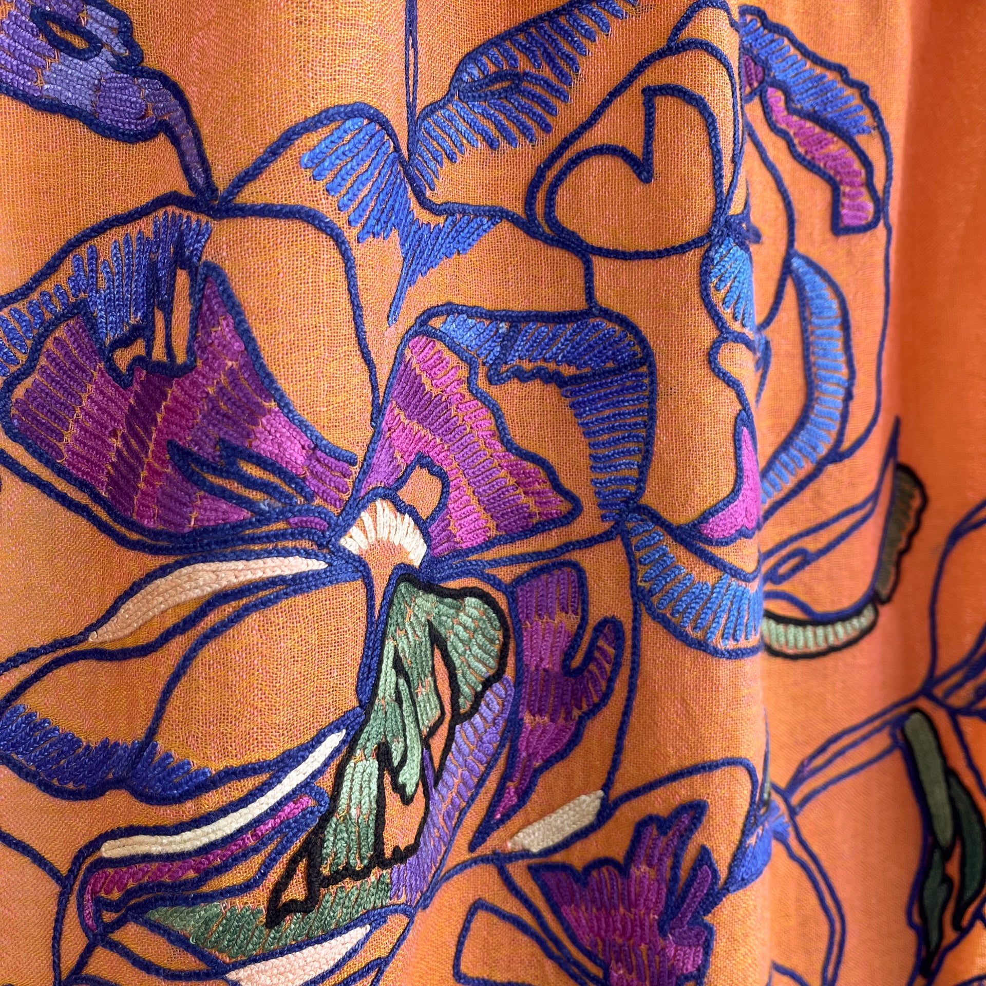 ウール&シルク アリー手刺繍ストール(オレンジ)