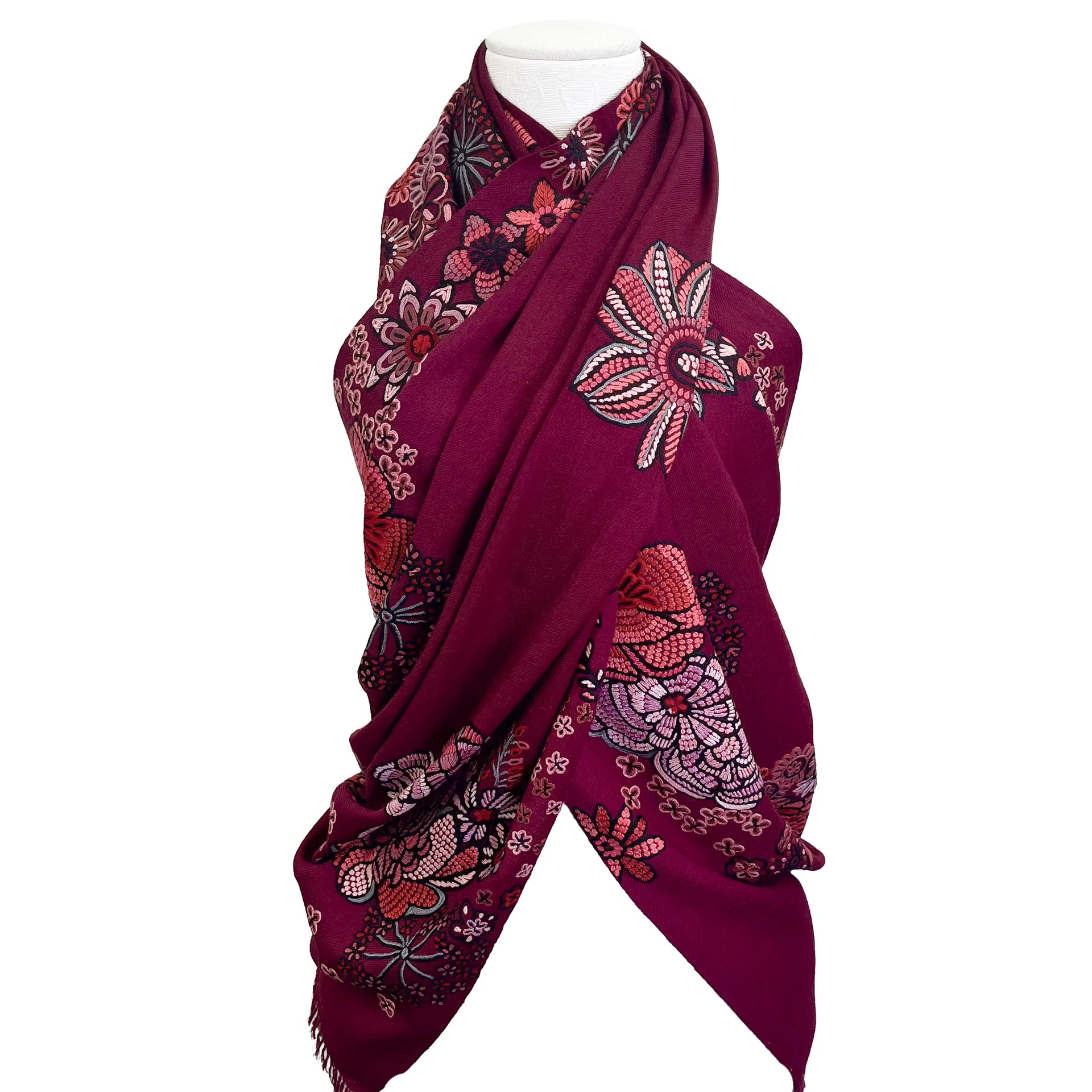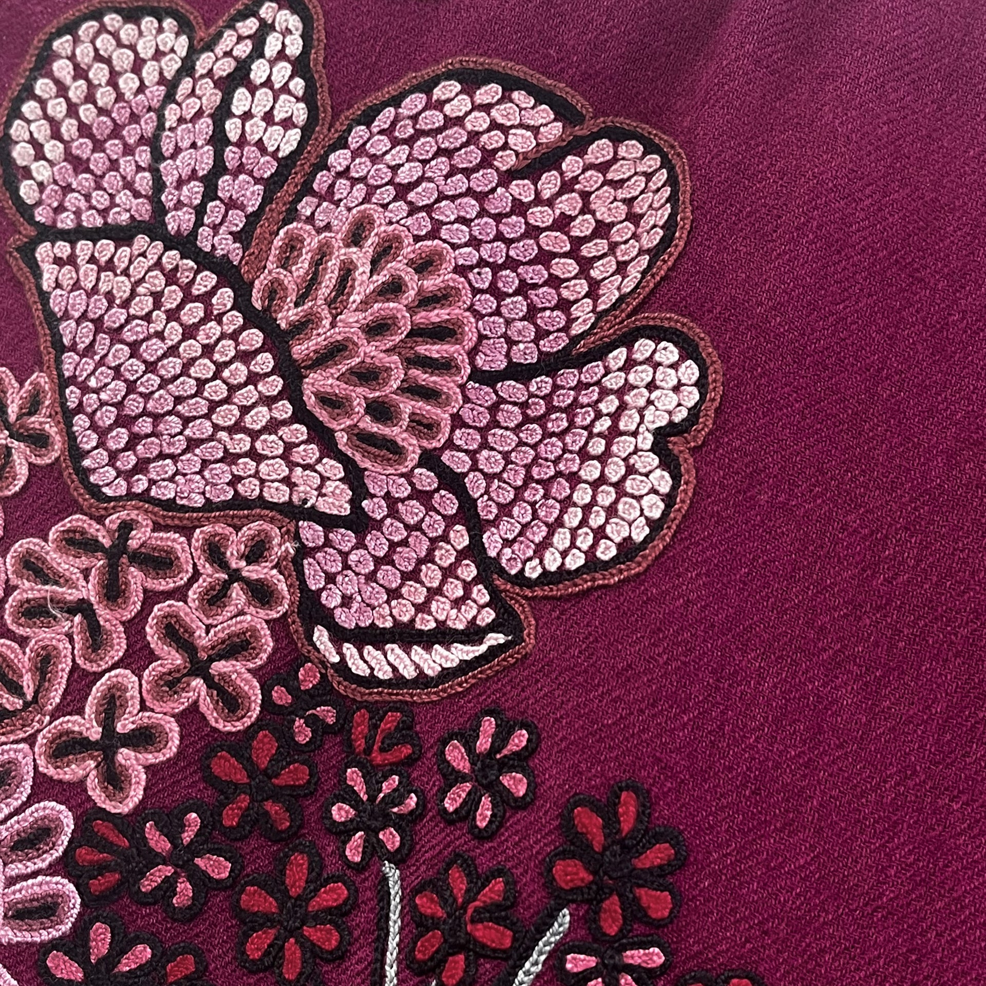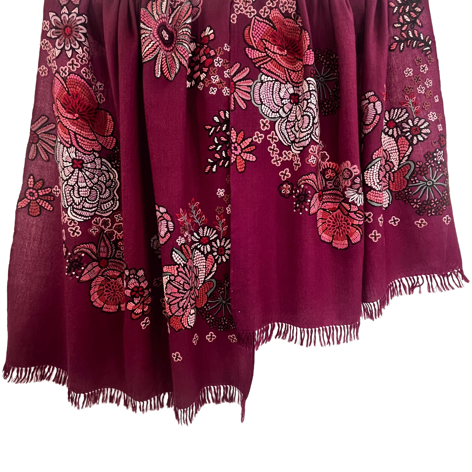 FLOWER MERRY GO ROUND ウール アリー手刺繍ストール (ラディッシュパープル)