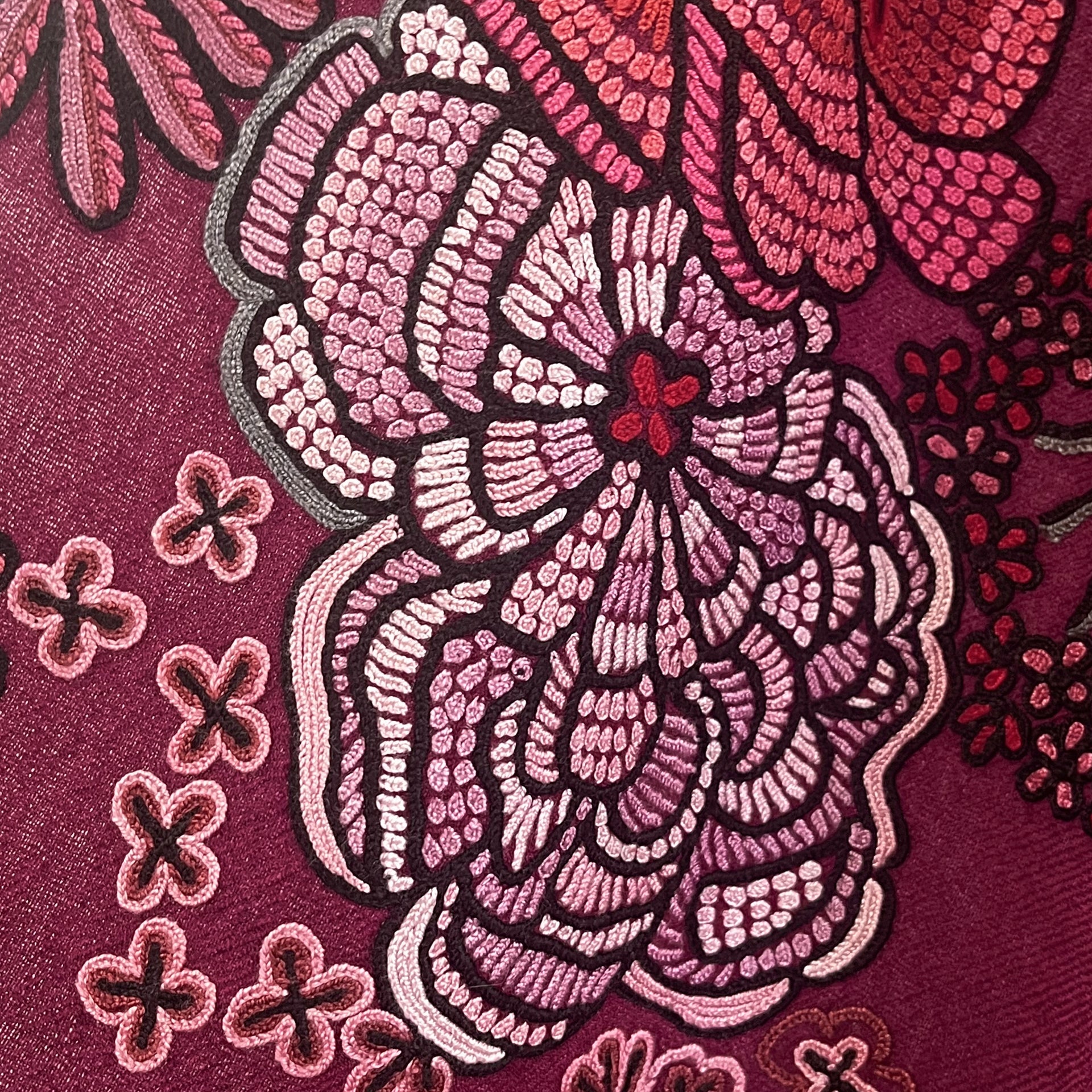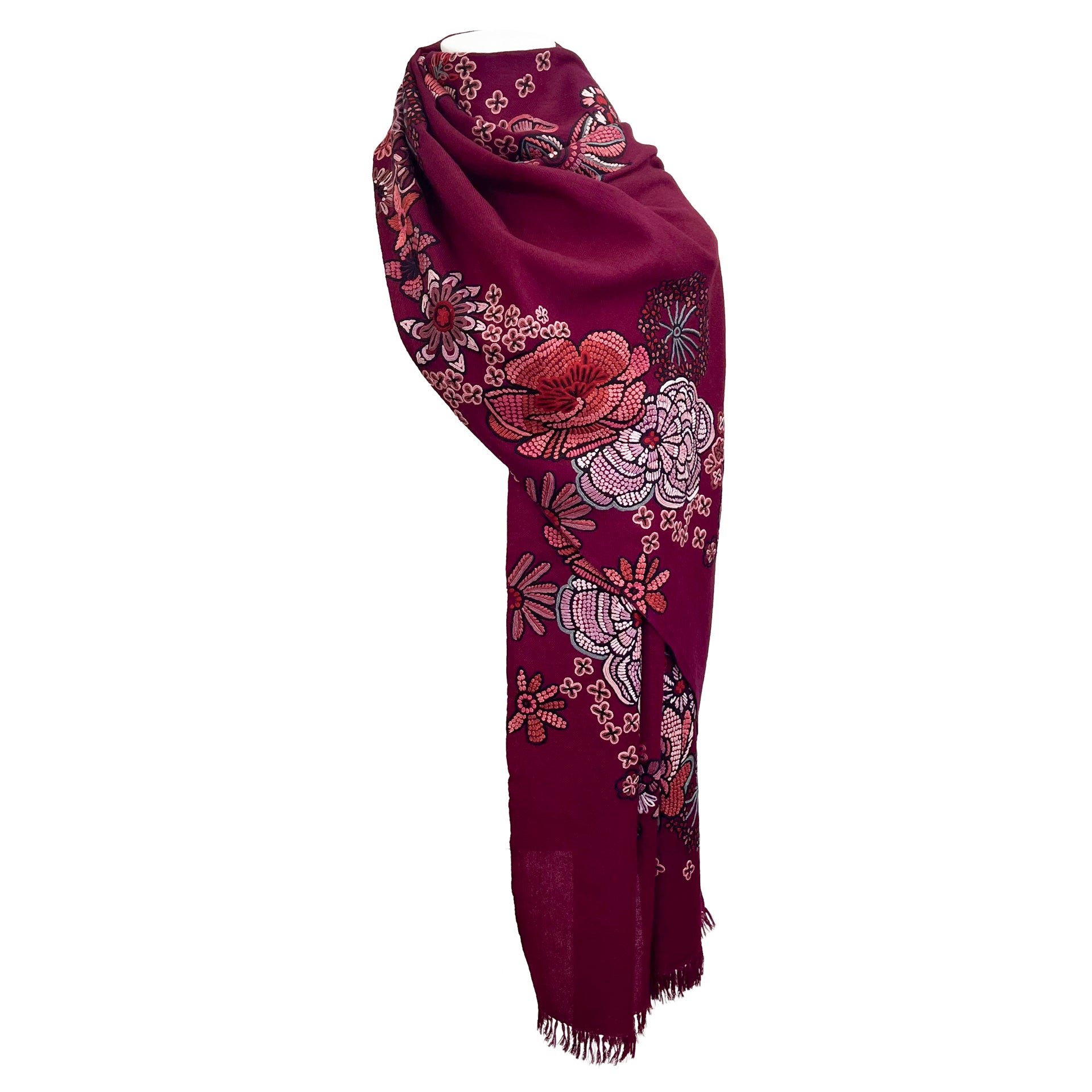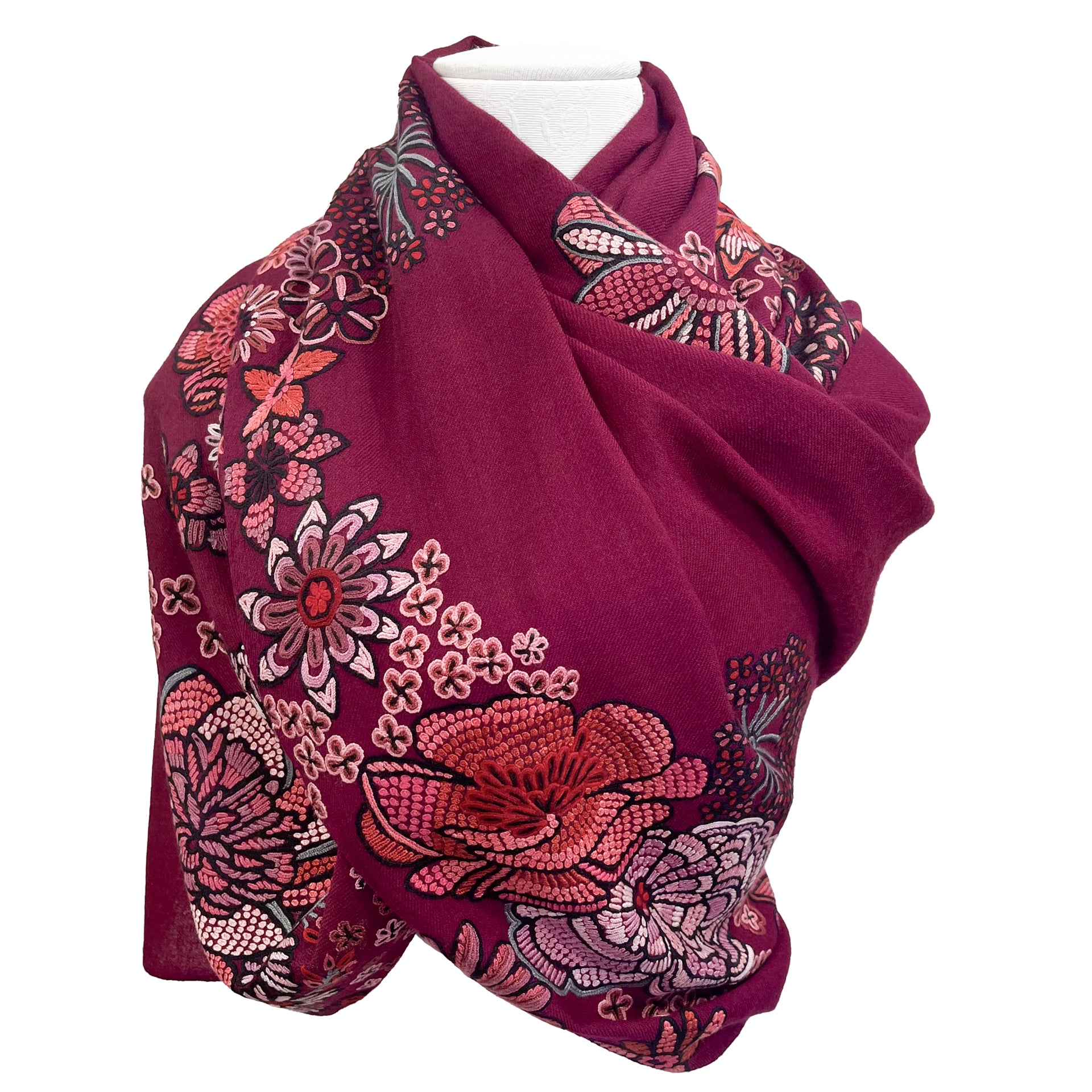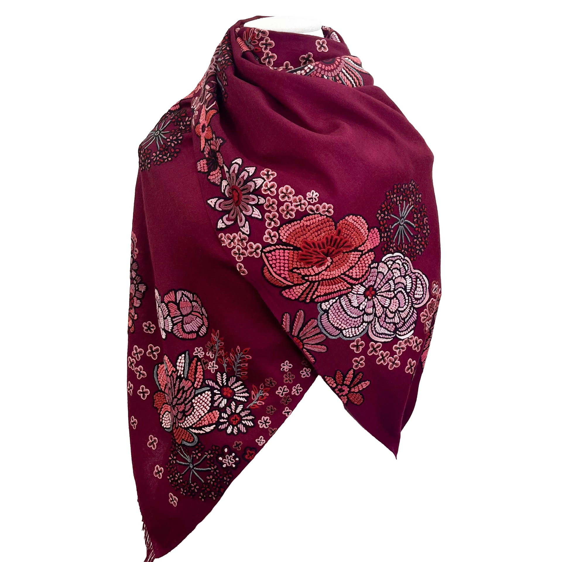 FLOWER MERRY GO ROUND ウール アリー手刺繍ストール (ラディッシュパープル)