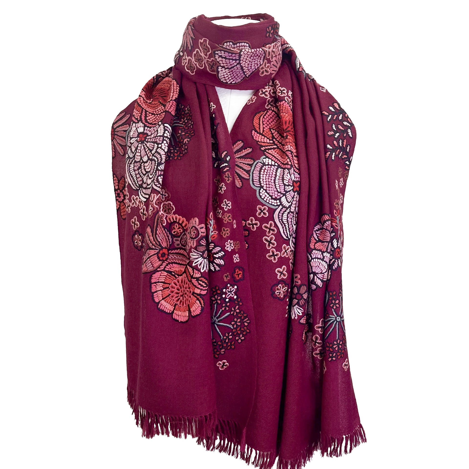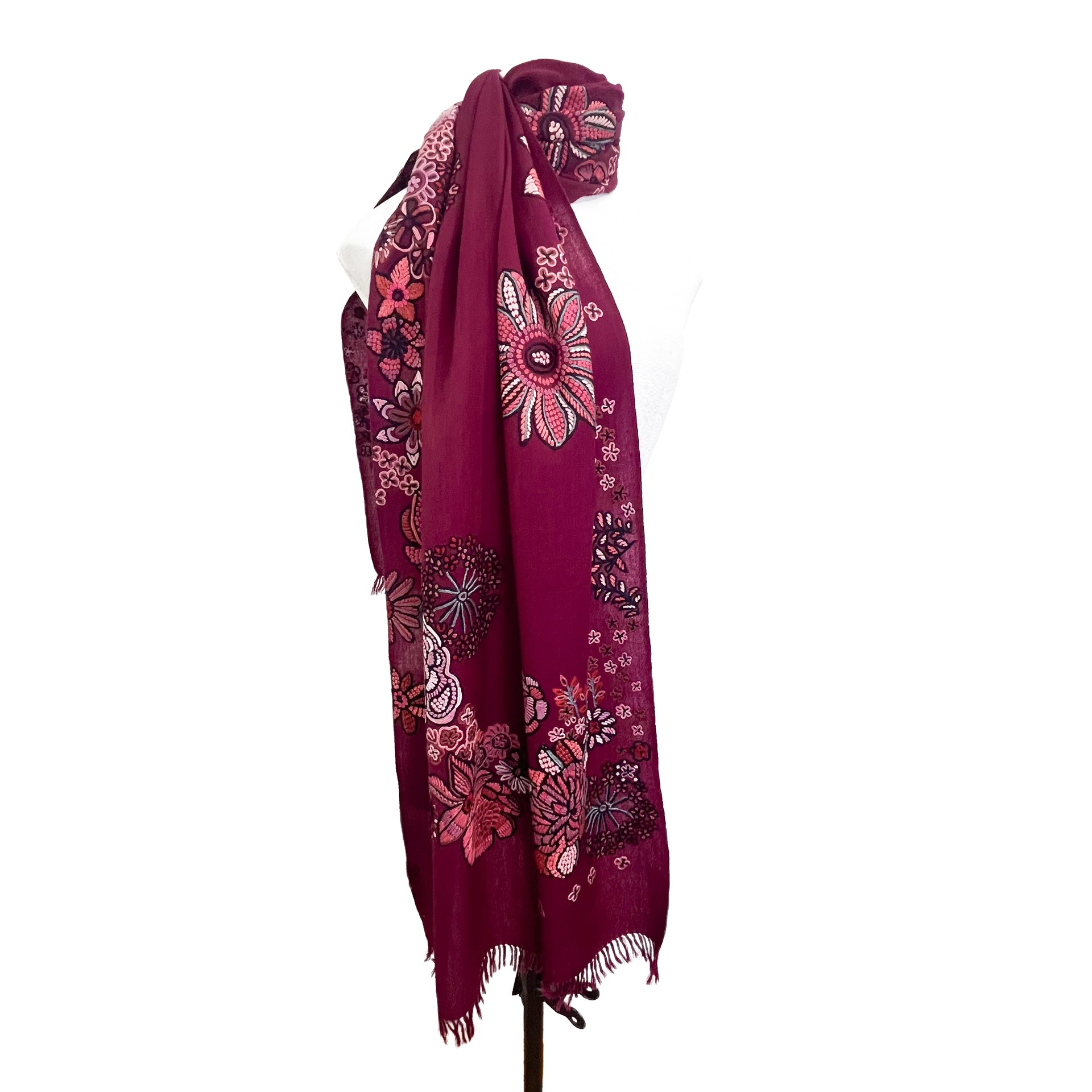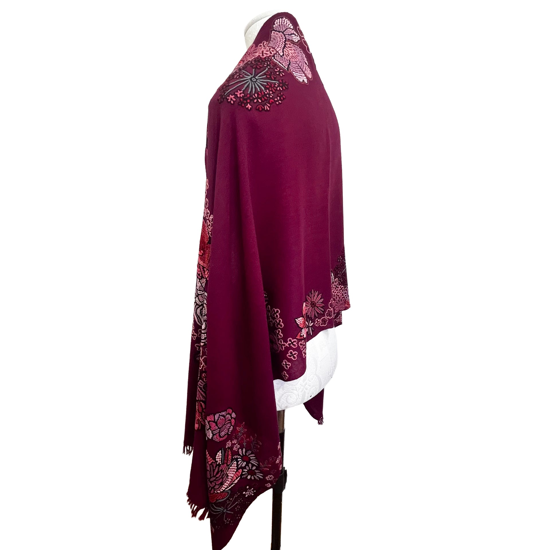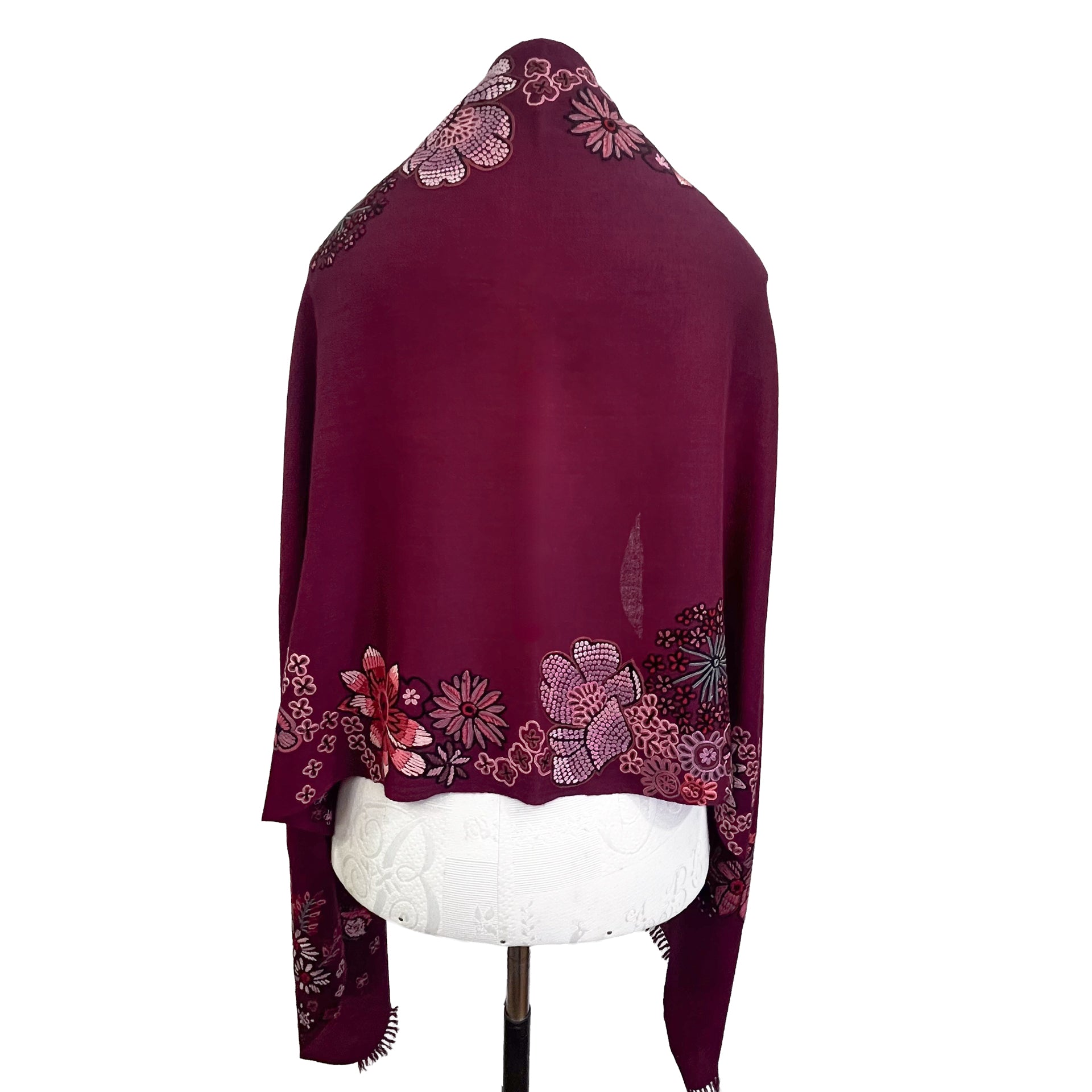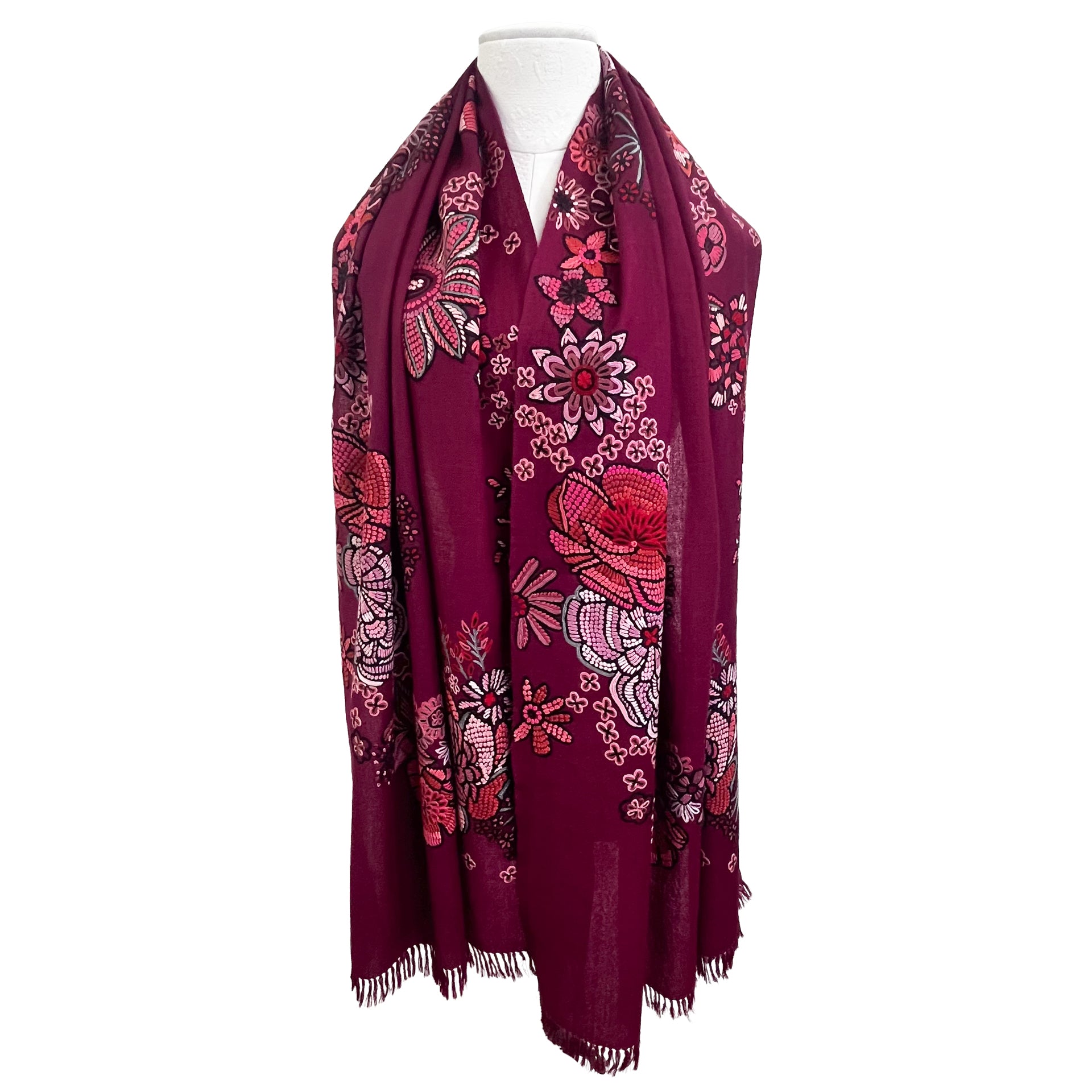 FLOWER MERRY GO ROUND ウール アリー手刺繍ストール (ダークパープル)