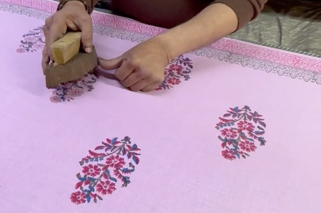 ターラ・ブランカオリジナルのブロックプリント生地で作りました。