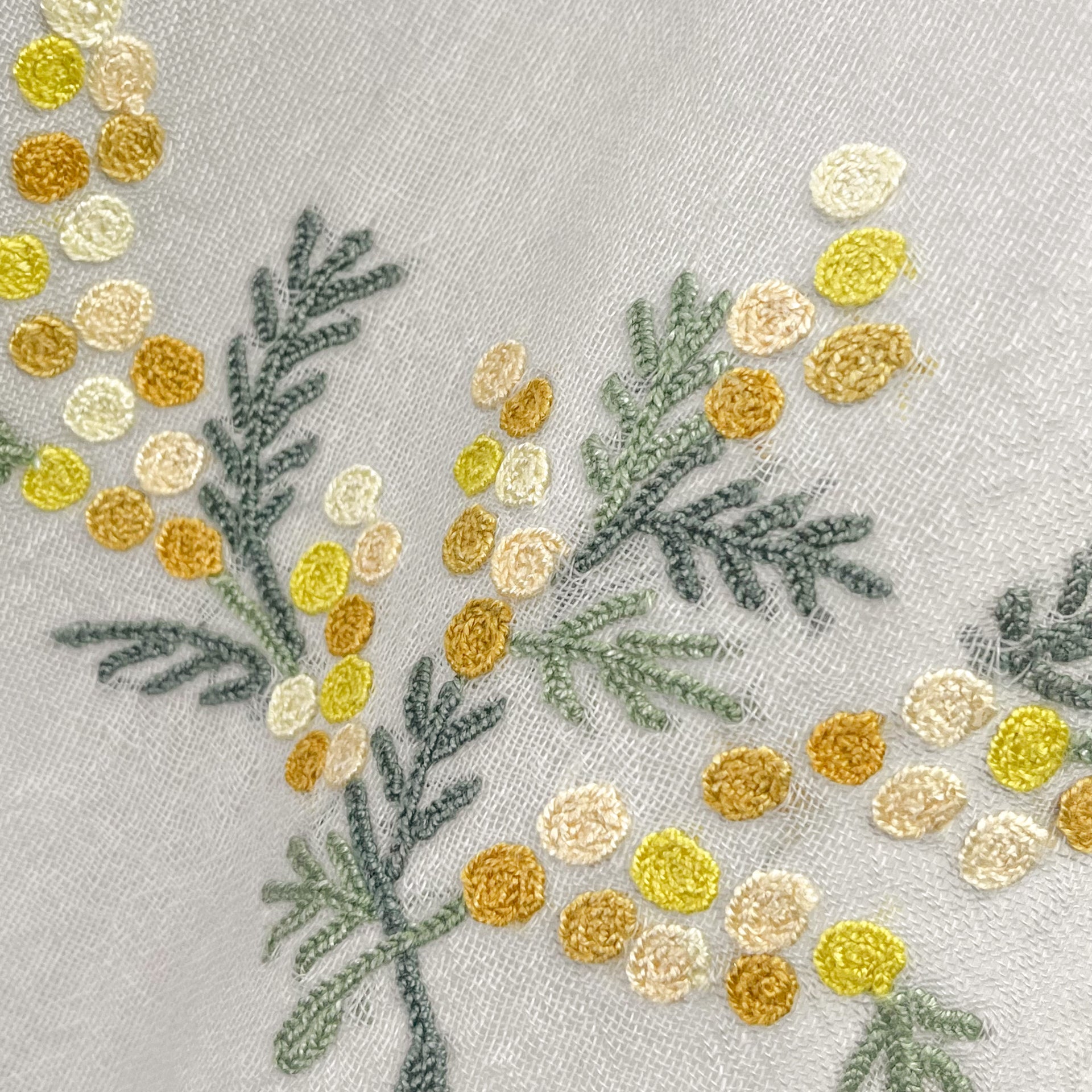 ミモザ 薄手ウール&シルク アリー手刺繍細幅ストール (ライトイエロー)
