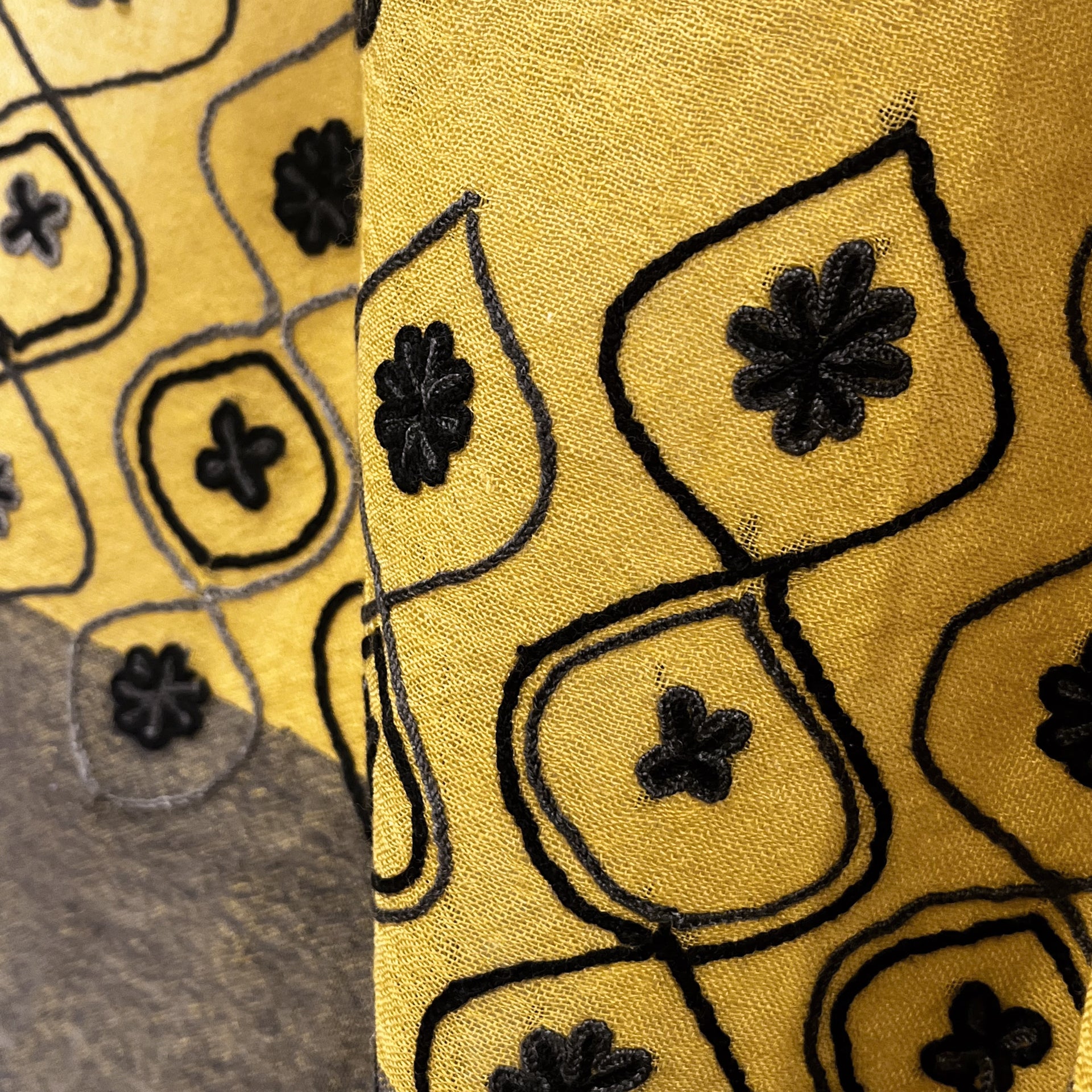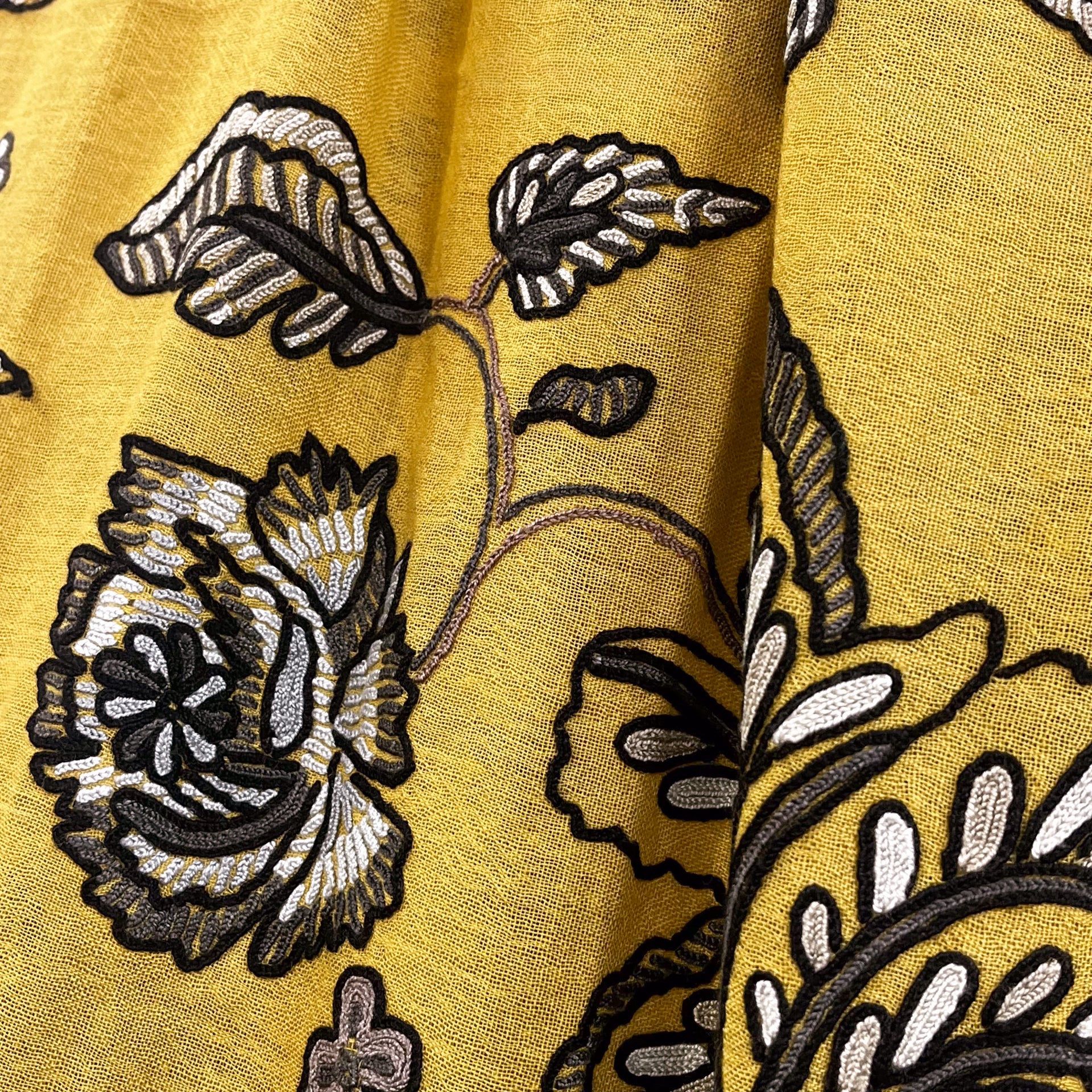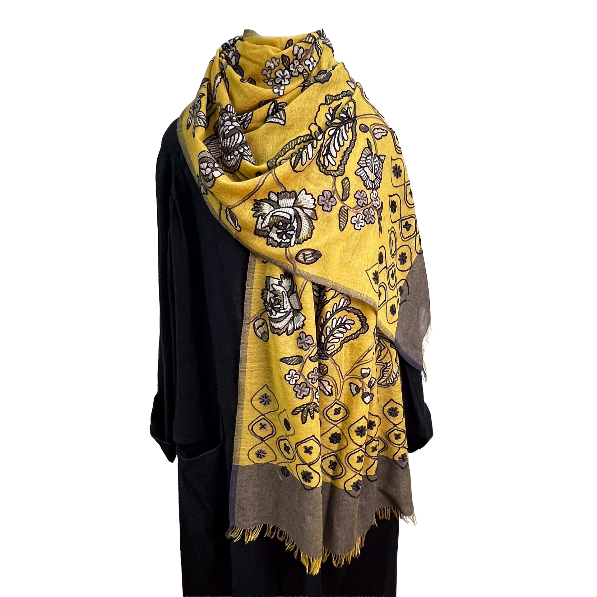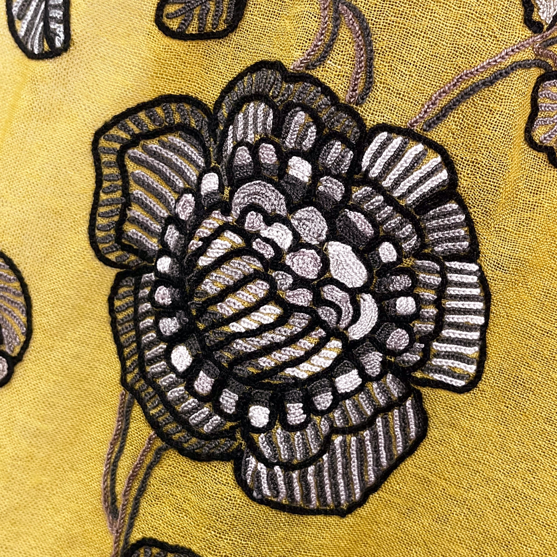 薄手ウール&シルク アリー手刺繍ストール(マスタード)