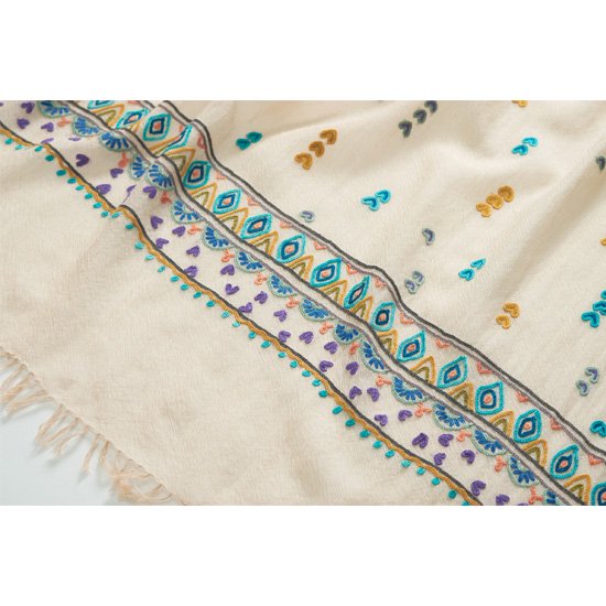 S-WTA4017_0152エレファント ウール&シルク アリー手刺繍ストール (ライトベージュ)