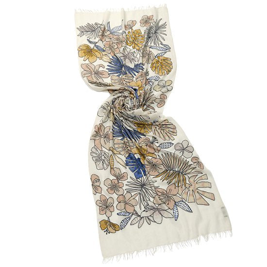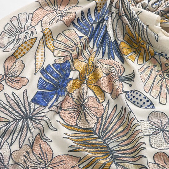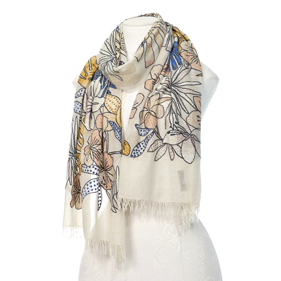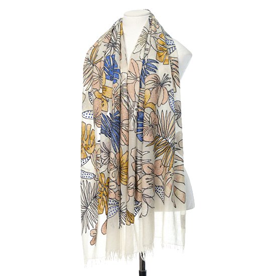 ホワイトジャングル 薄手ウール&シルク アリー手刺繍ストール (ホワイト)S-WTA9016_0271