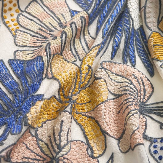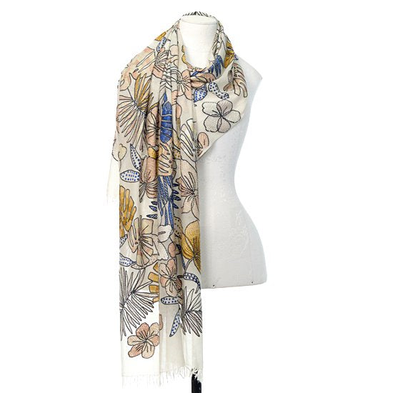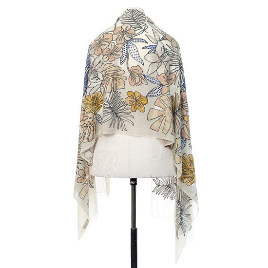 S-WTA9046_0271Flower Celebration 薄手ウール&シルク アリー手刺繍ストール(ホワイト)