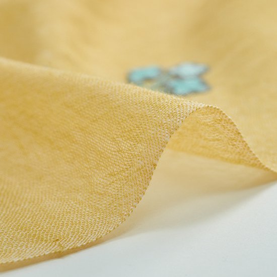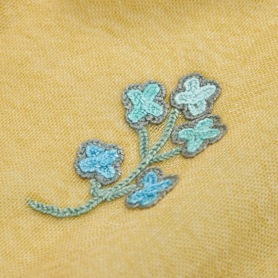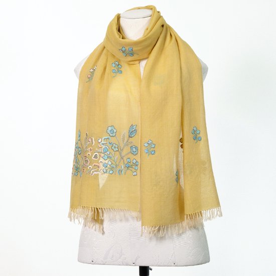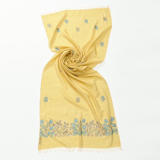 パステルフラワー 薄手ウール&シルク アリー手刺繍ストール (イエロー/ベージュ)