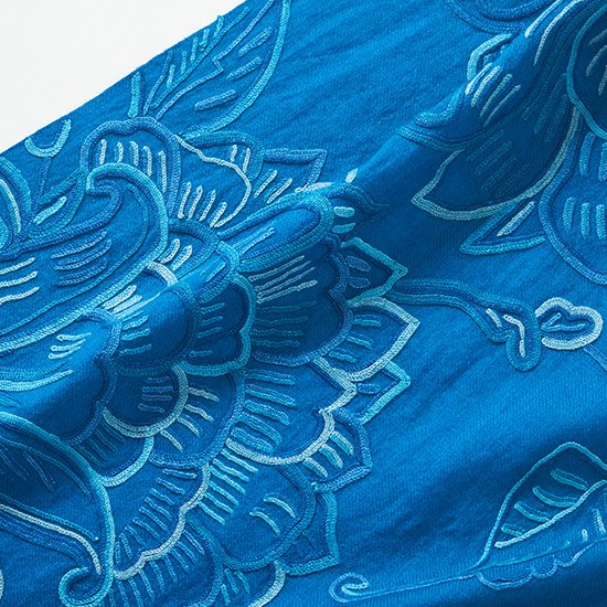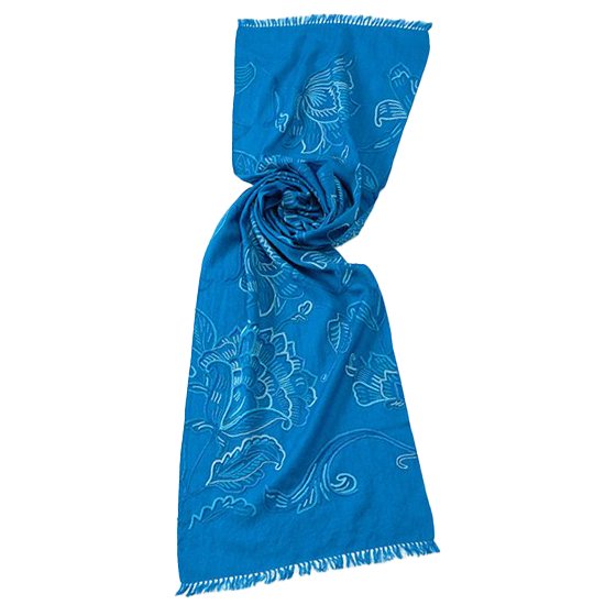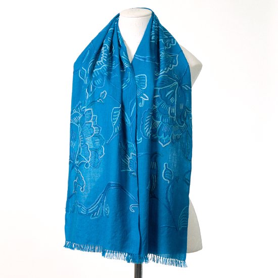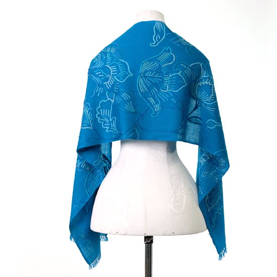 S -WTA9043_0009Fusion Flowers ウール&シルク アリー手刺繍ストール (ターコイズ)