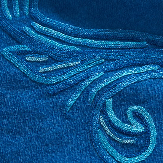 SMALL WILD FLOWER(スモールワイルドフラワー)ターラ・ブランカの定番デザインのひとつ「ワイルドフラワー」は、アリー手刺繍によるラインで描かれた大輪の花が印象的なデザイン。これまでは薄手のウールシルク素材で展開していましたが、こちらはウール素材の小さめのサイズでのご紹介です。