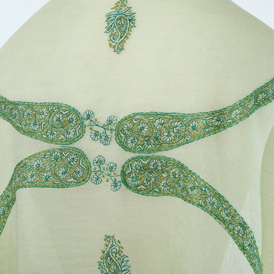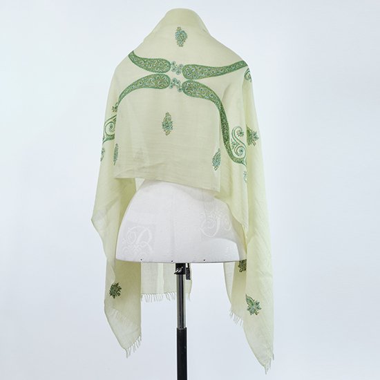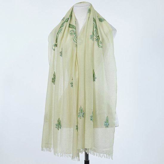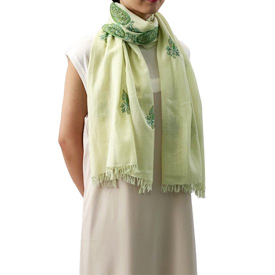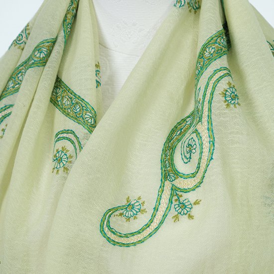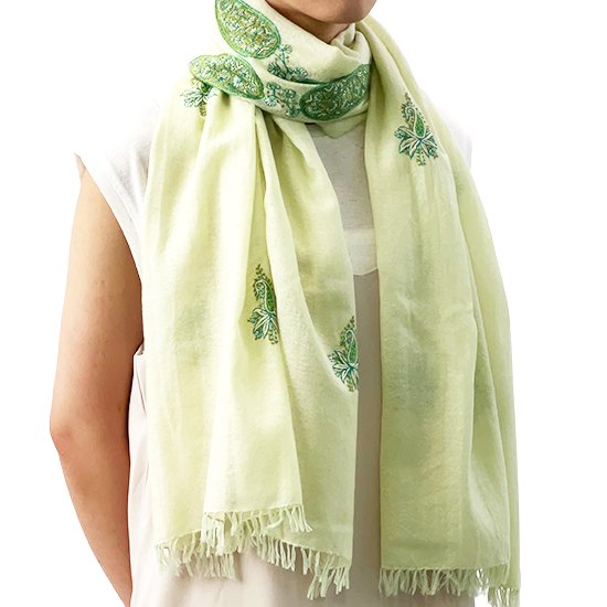 ウール&シルク ニードル手刺繍ストール (アップルグリーン)