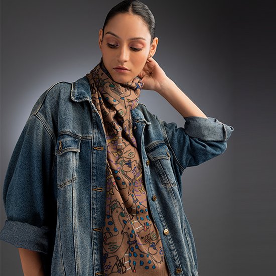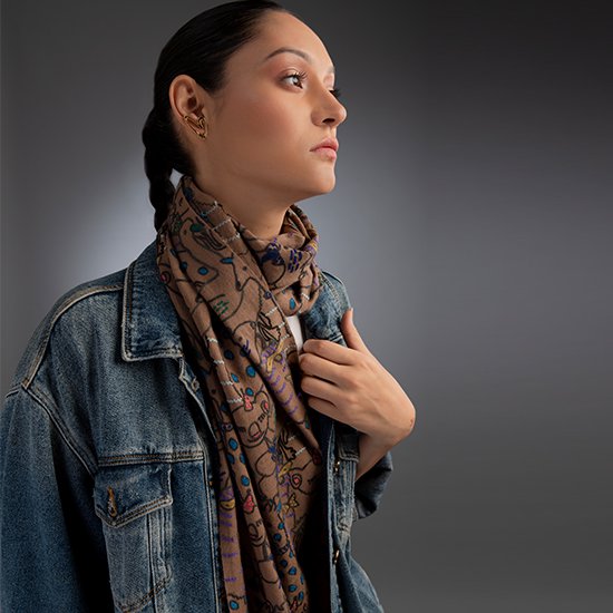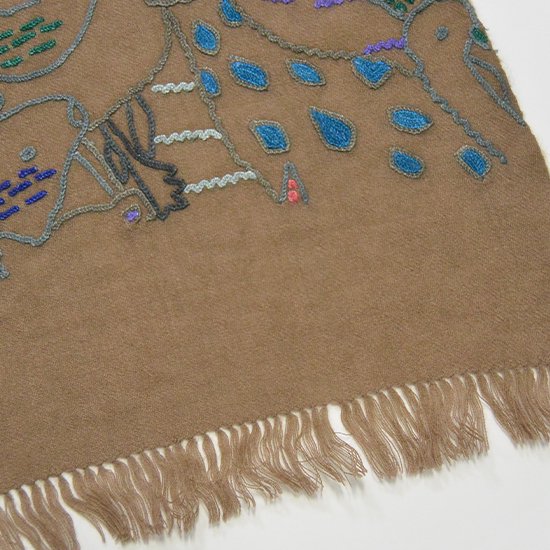 Animal Party ウール アリー手刺繍ストール(ダークベージュ) SM-WA5000_0153