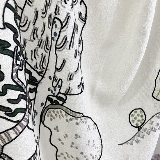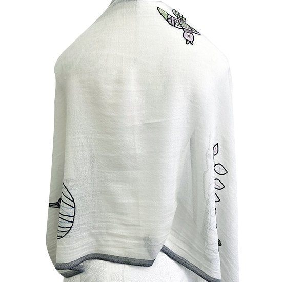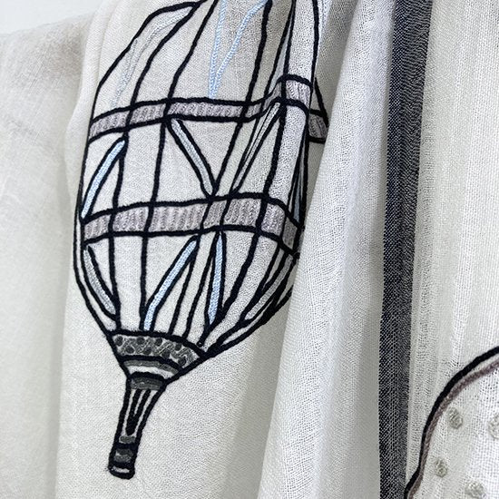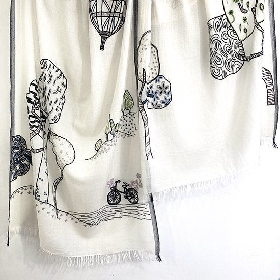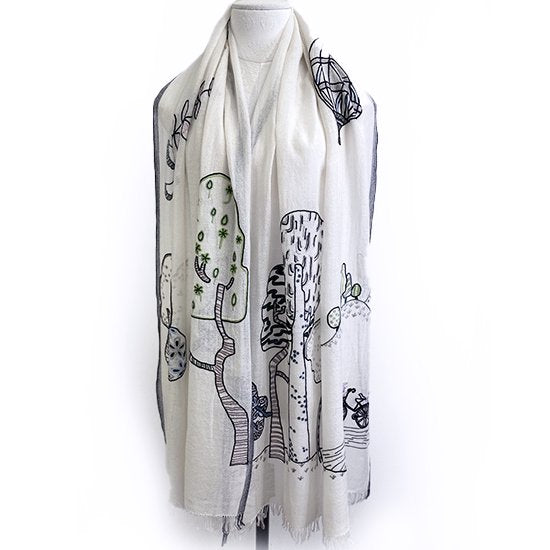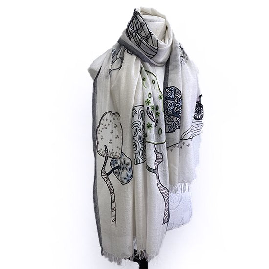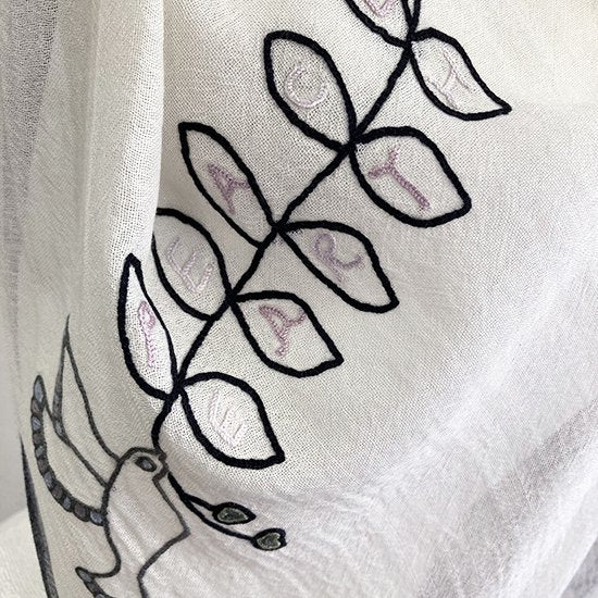 Peace On Earth ウール/シルク 手刺繍ストール(ホワイト)
