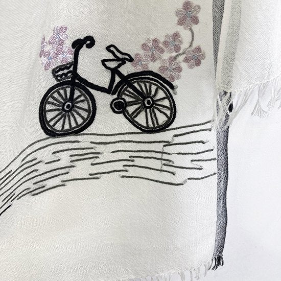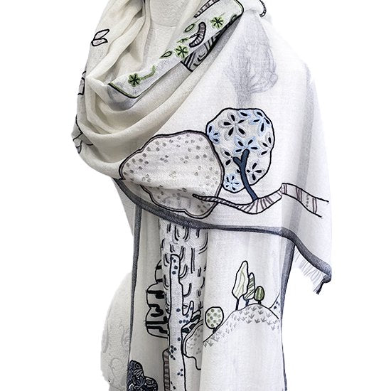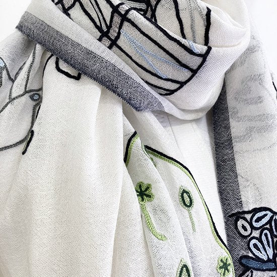 S-WTA5025_0271Tree of Life 薄手ウール&シルク アリー手刺繍ストール (ホワイト)