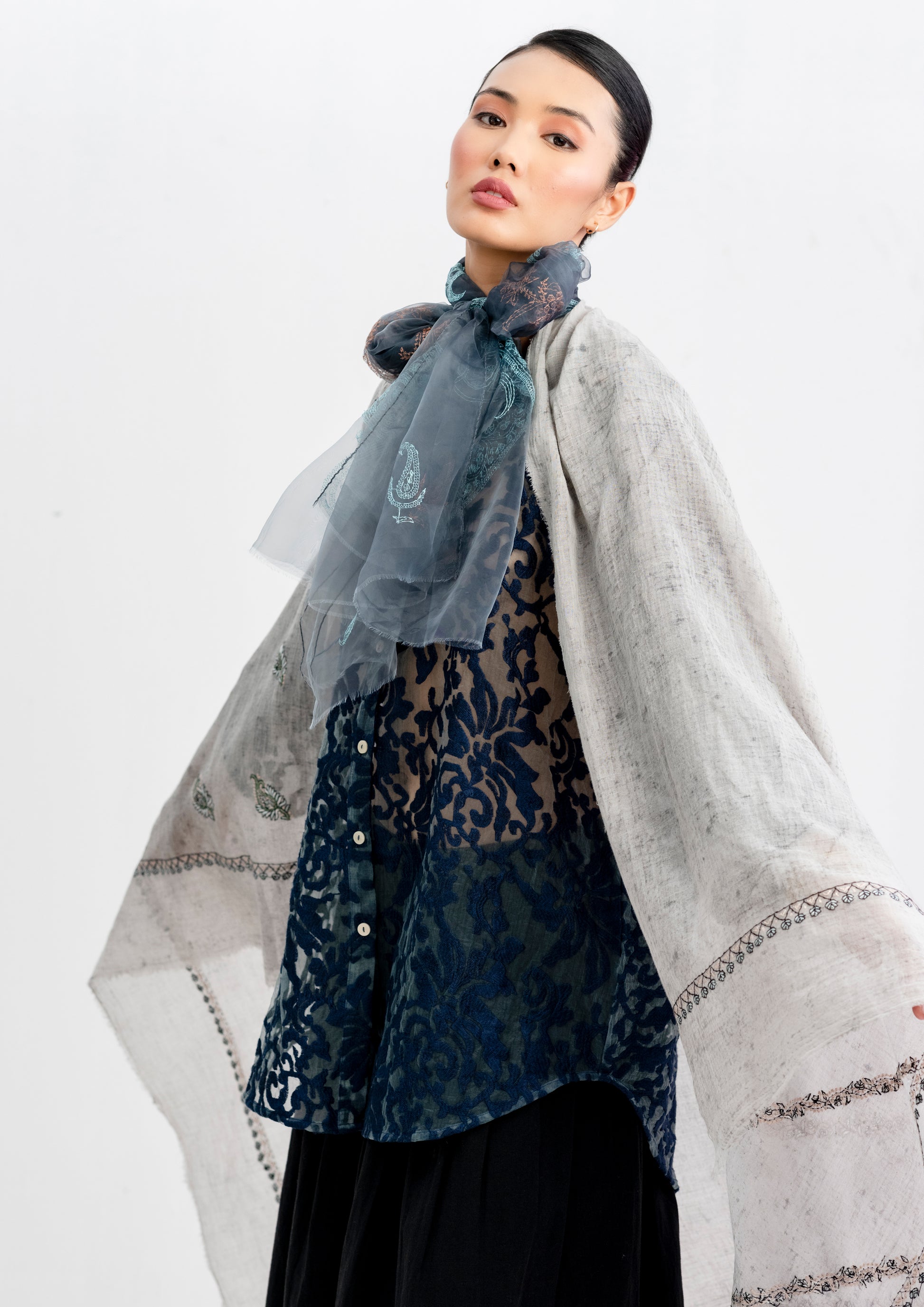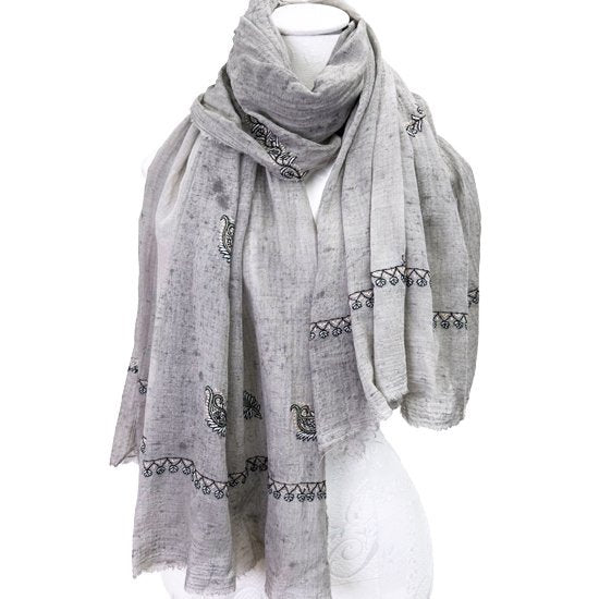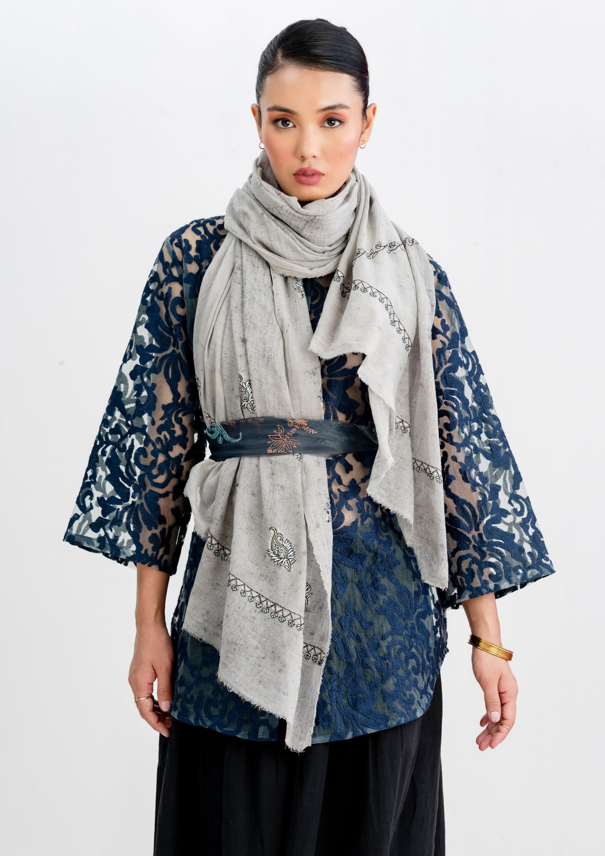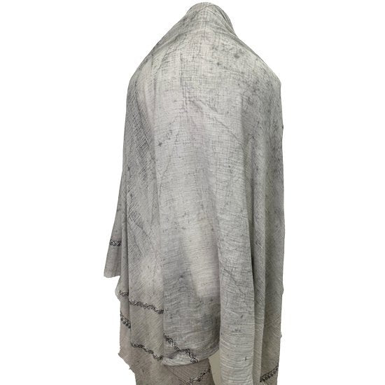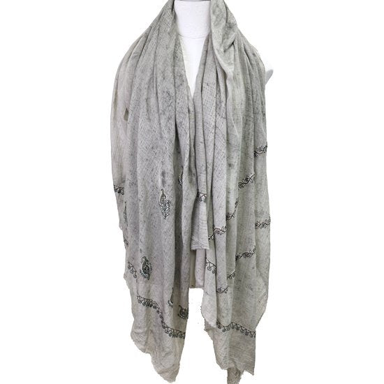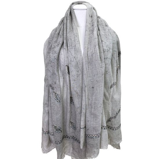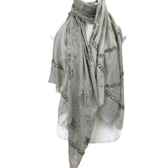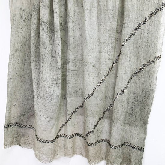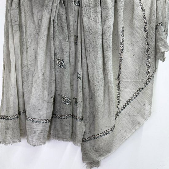 日本製オーガニックコットン素材 ニードル手刺繍 ストール (ライトグレー)