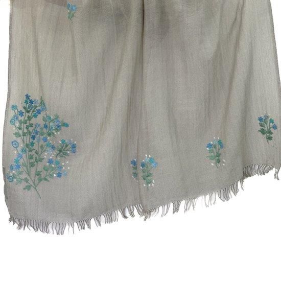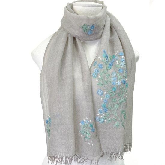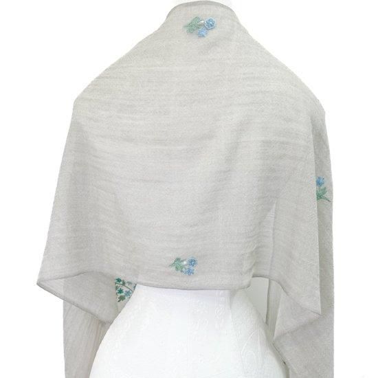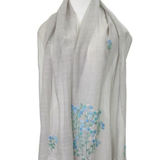 ミモザ 薄手ウール&シルク アリー手刺繍細幅ストール (ライトグレー)