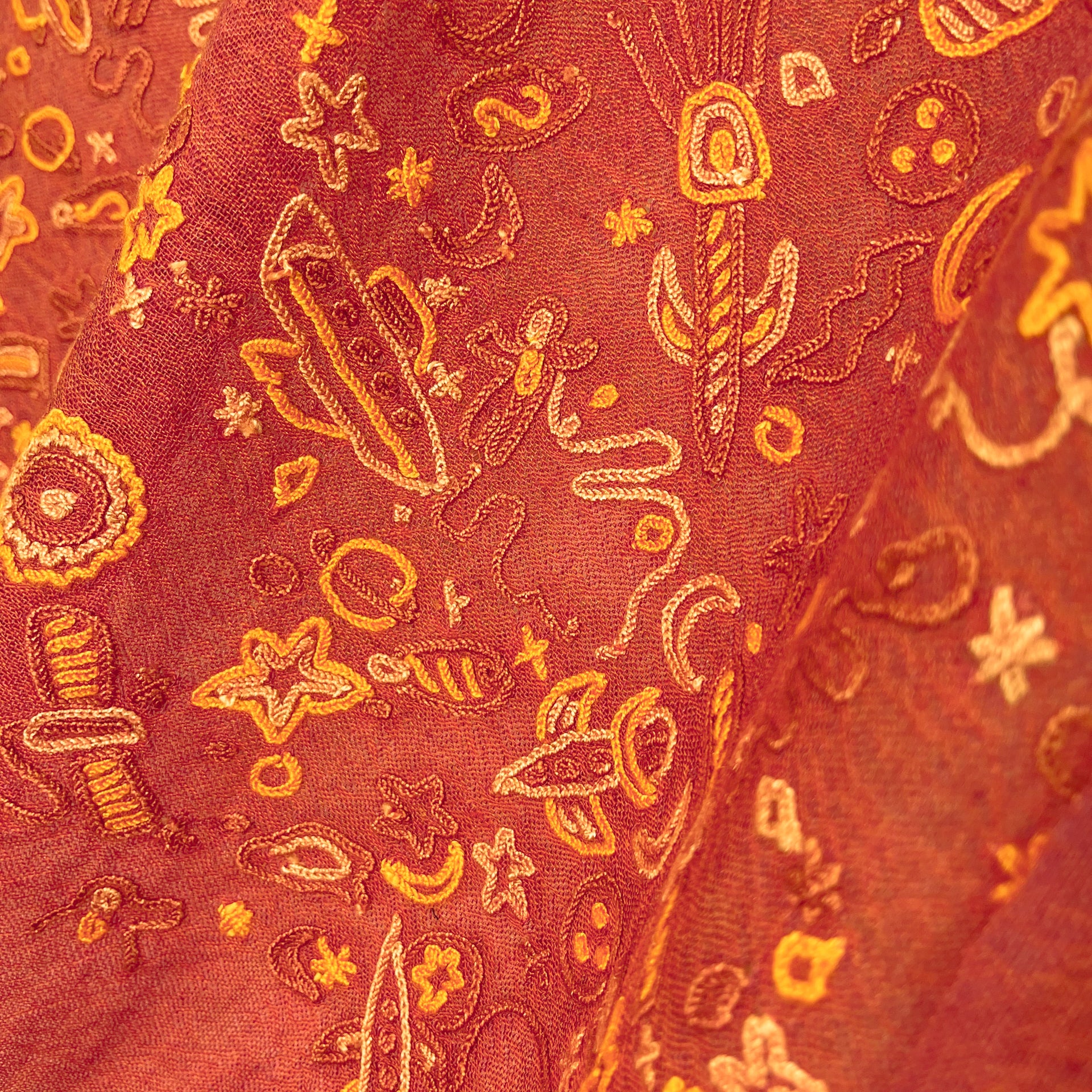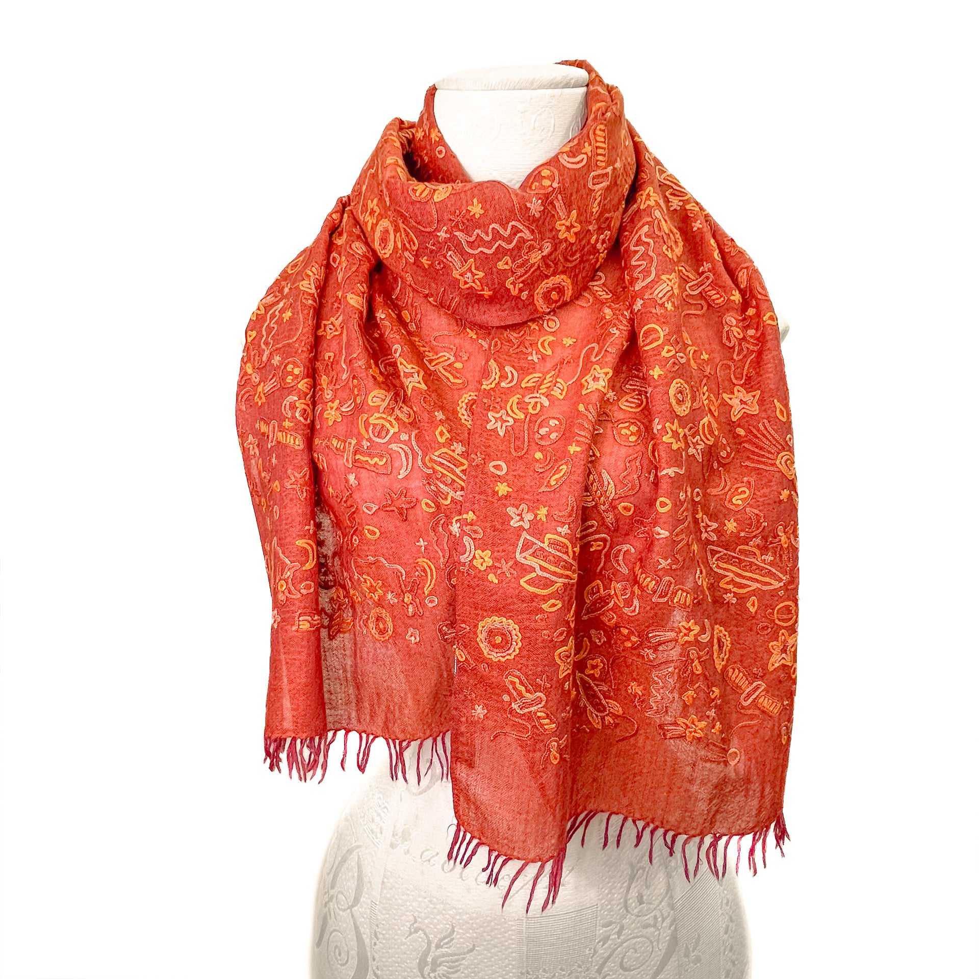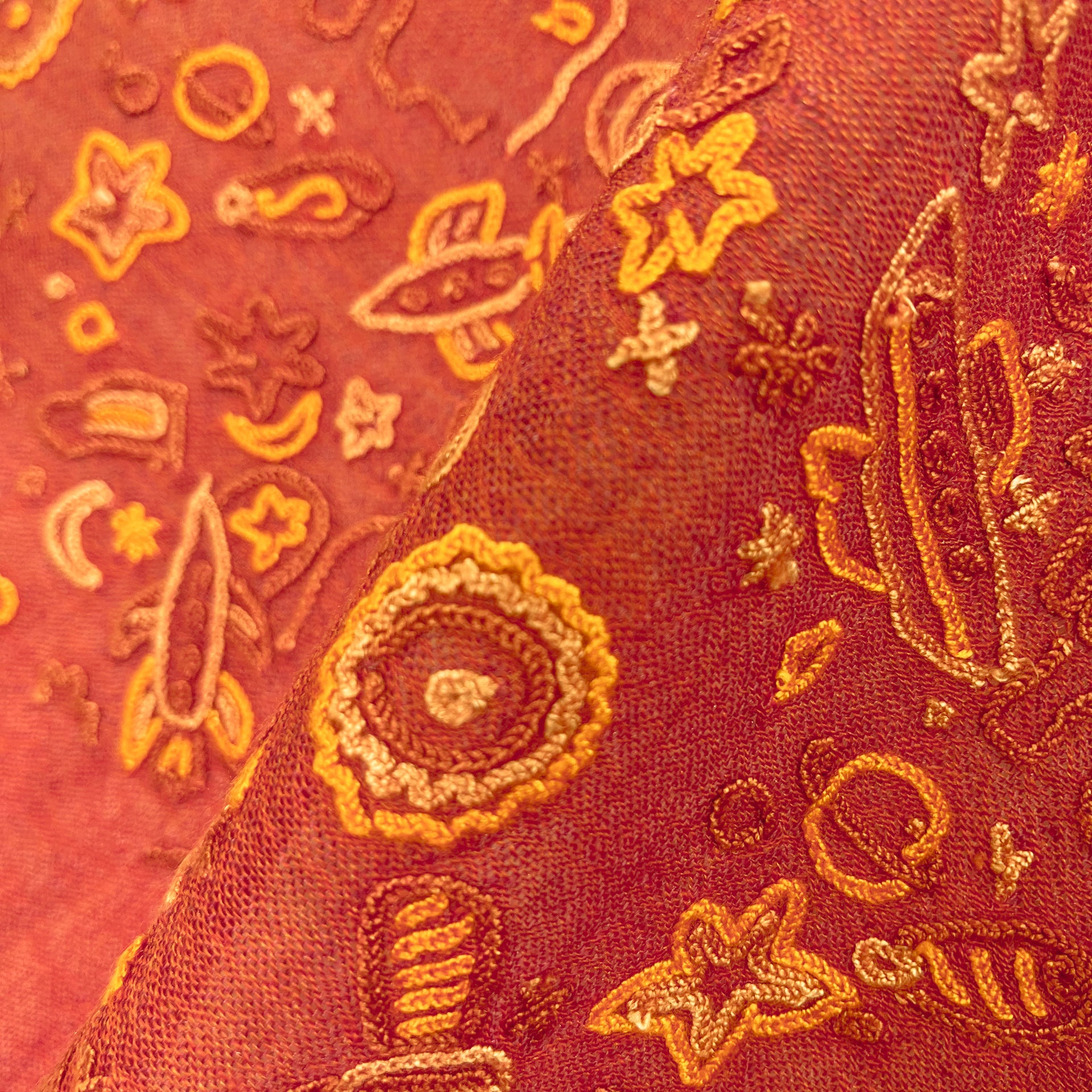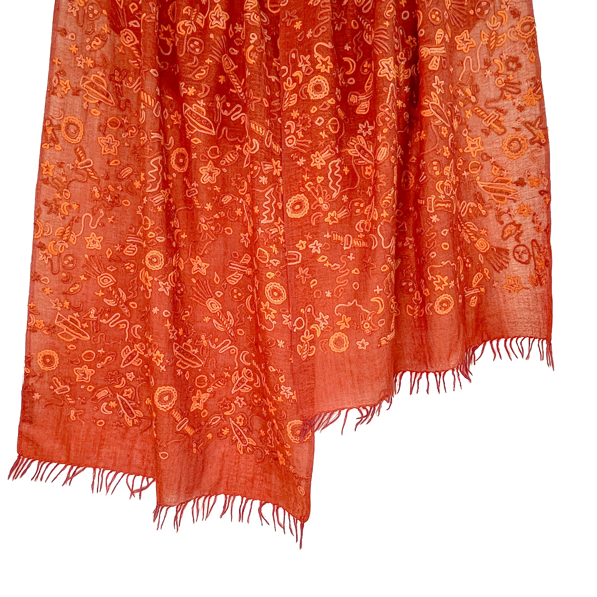 SPACE ODYSSEY ウール&シルク 手刺繍ストール (オレンジ)