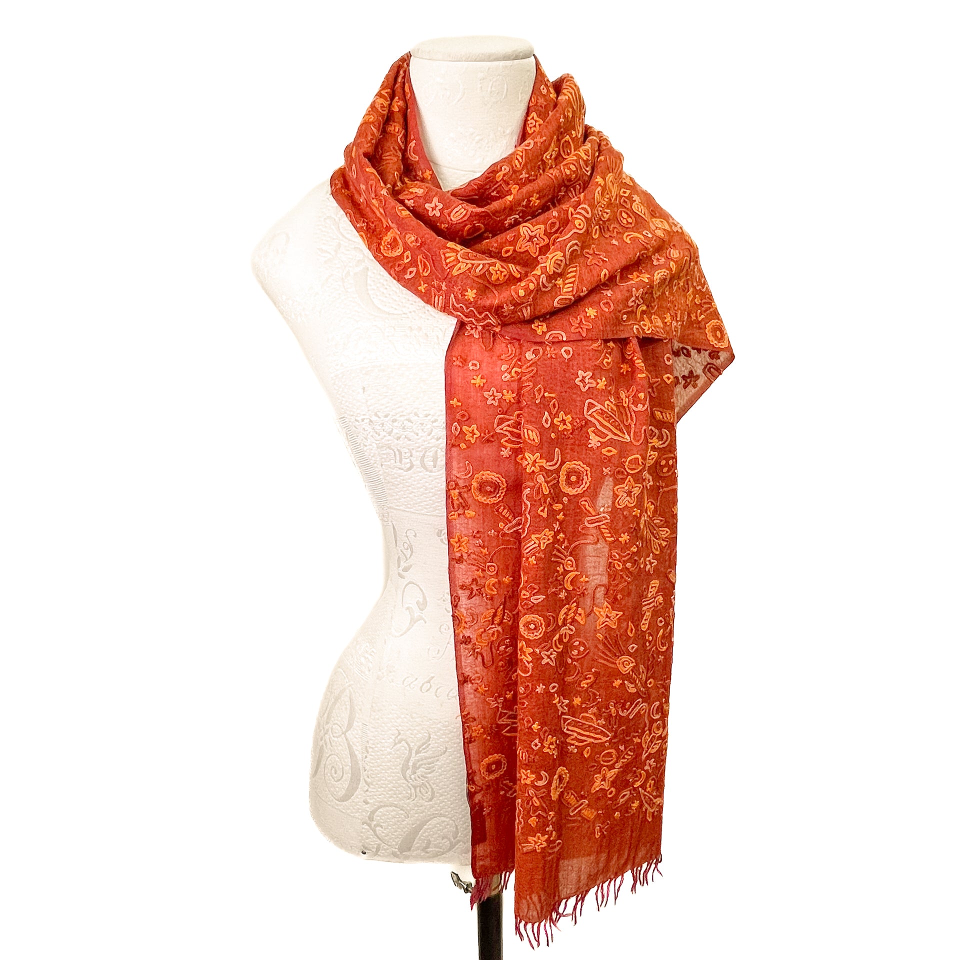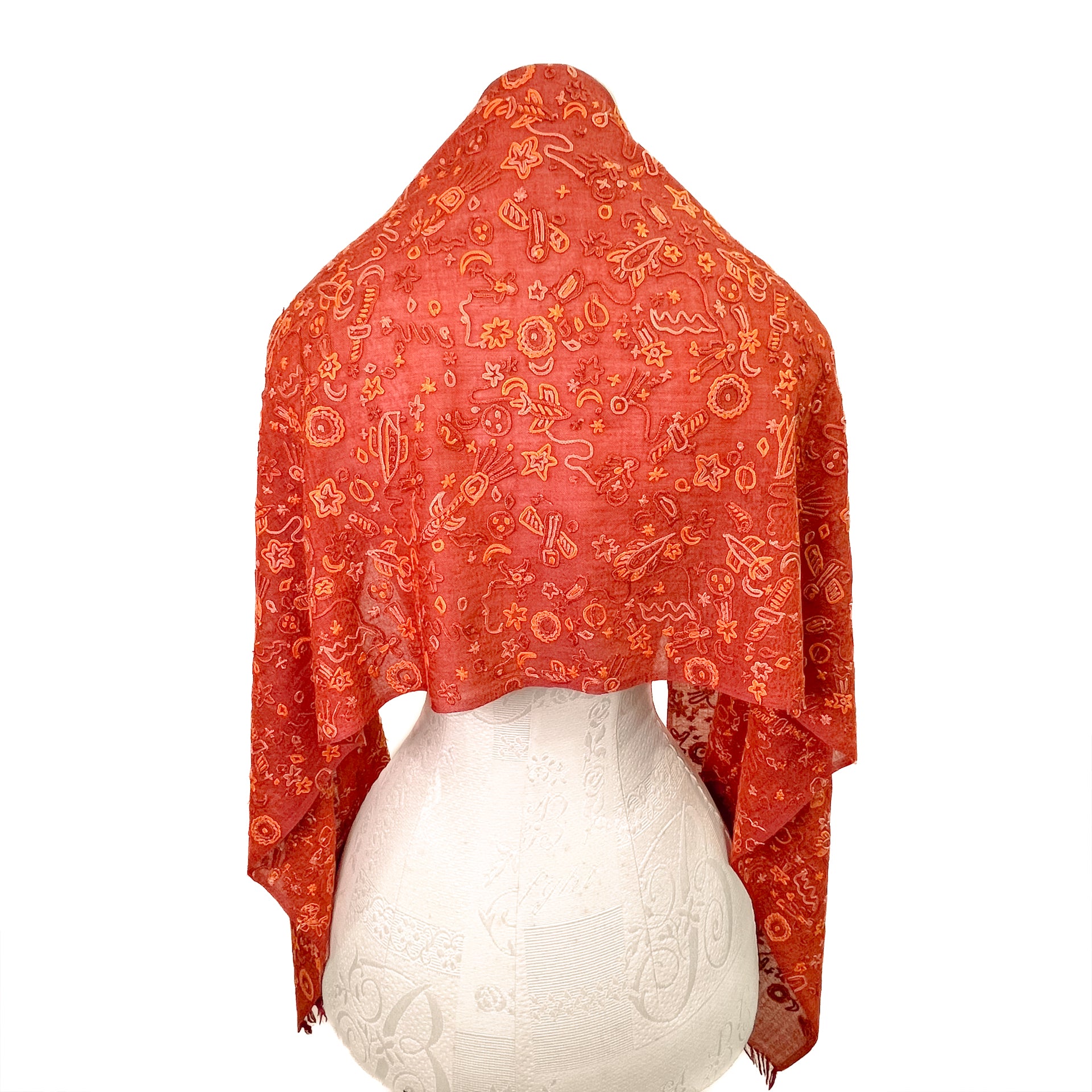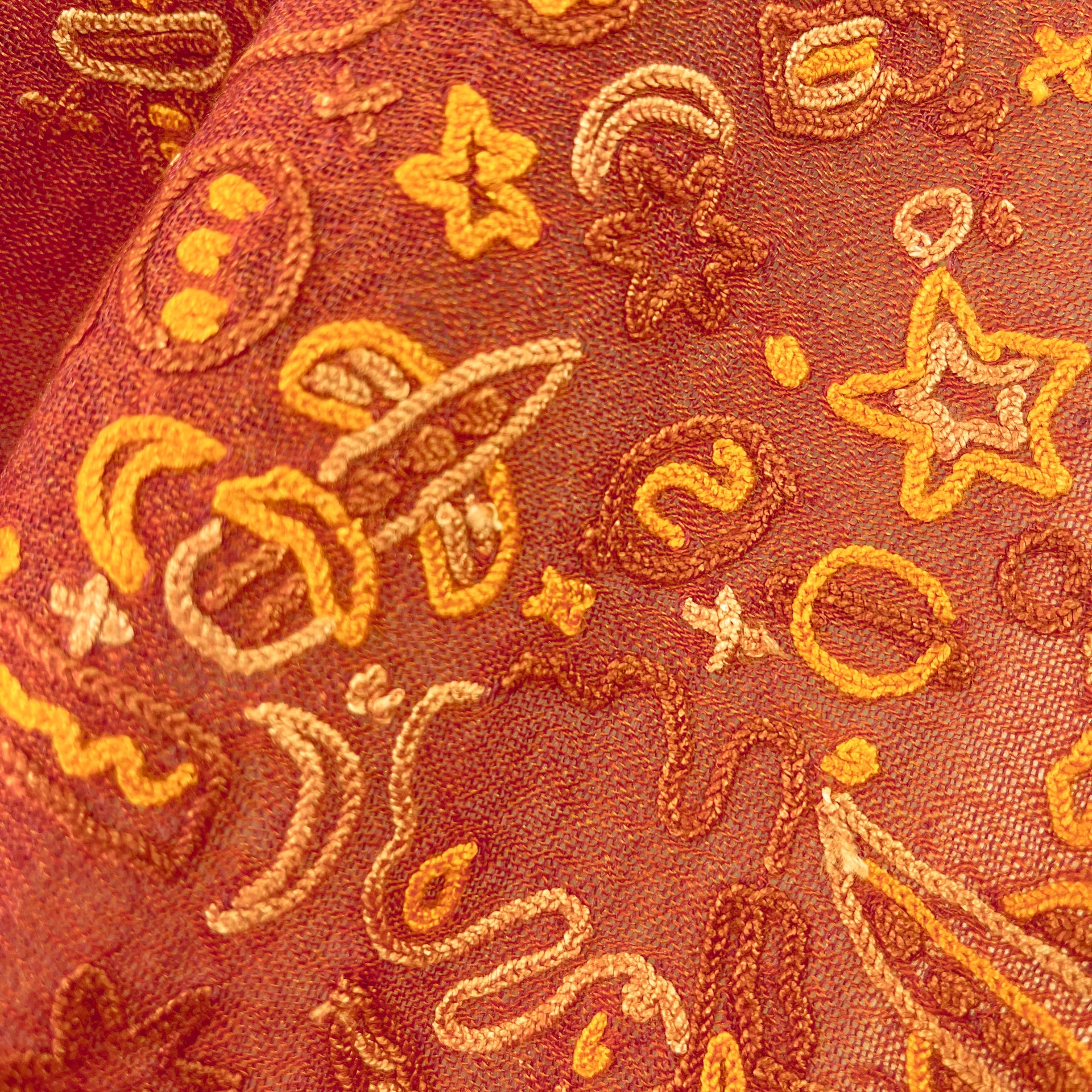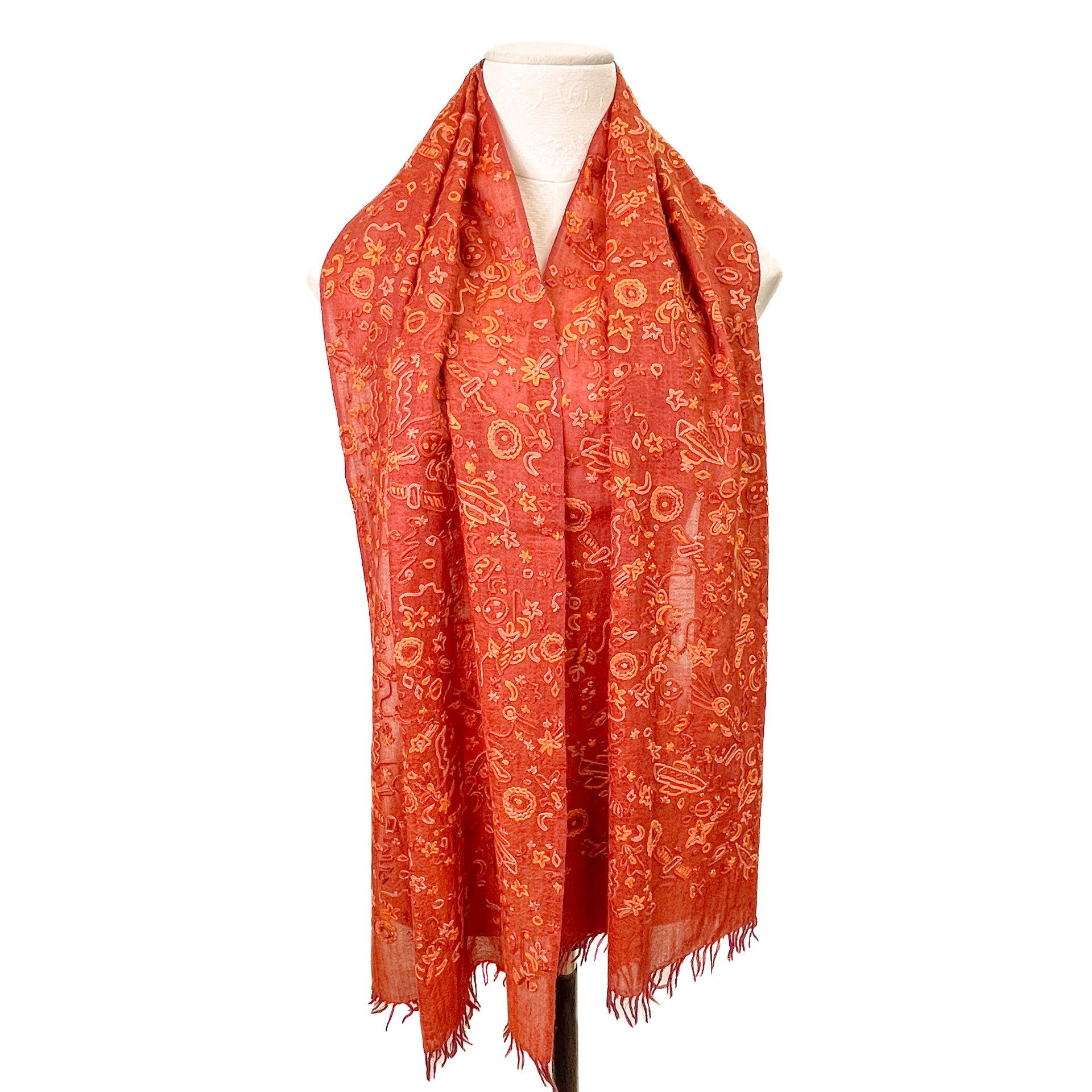 SPACE ODYSSEY ウール&シルク 手刺繍ストール (オレンジ)