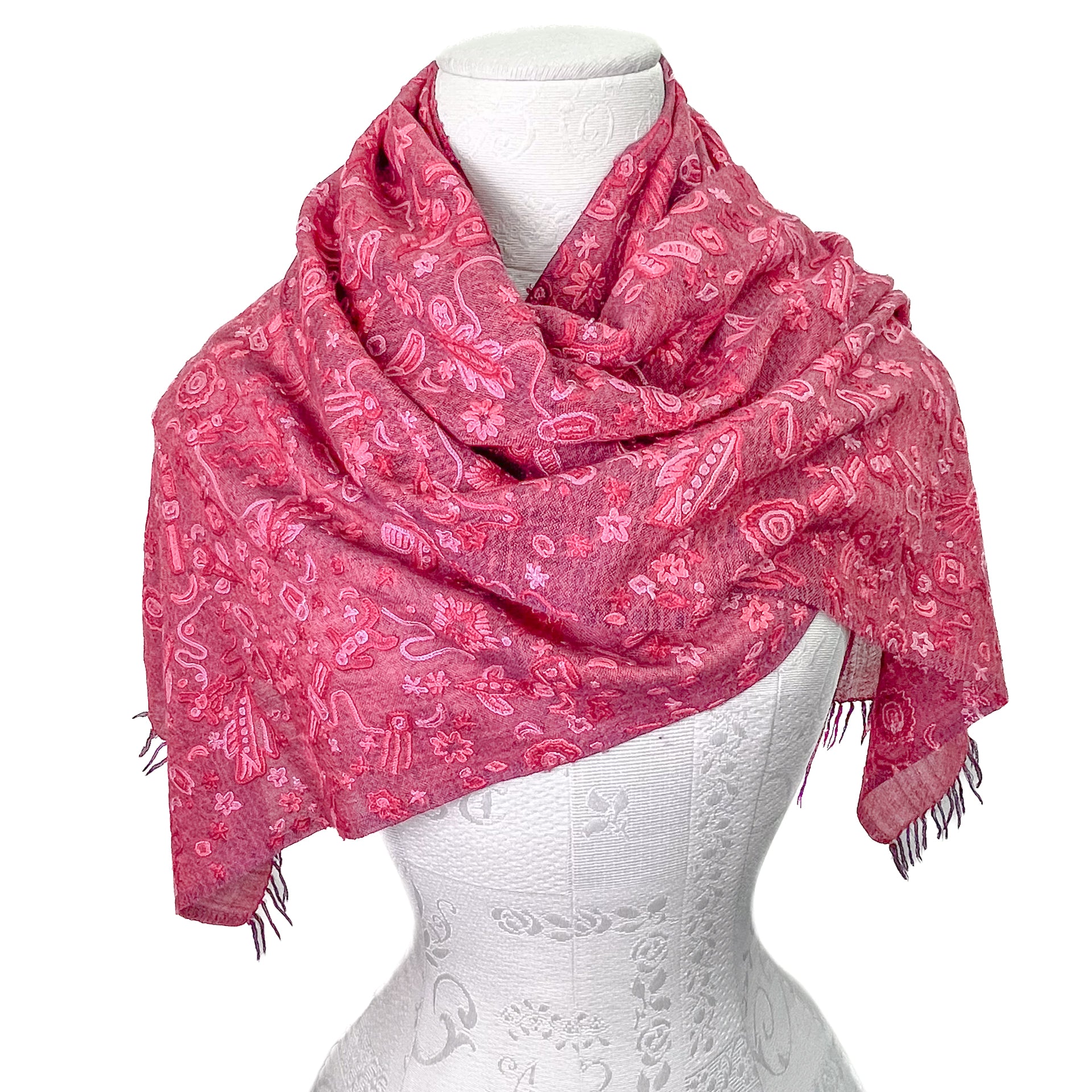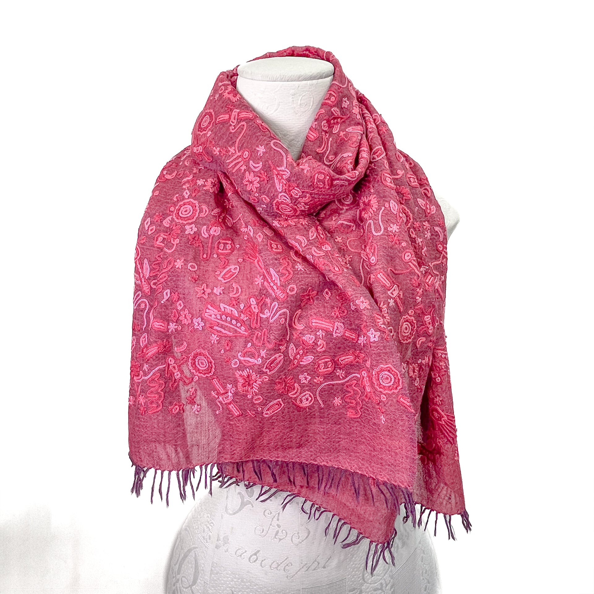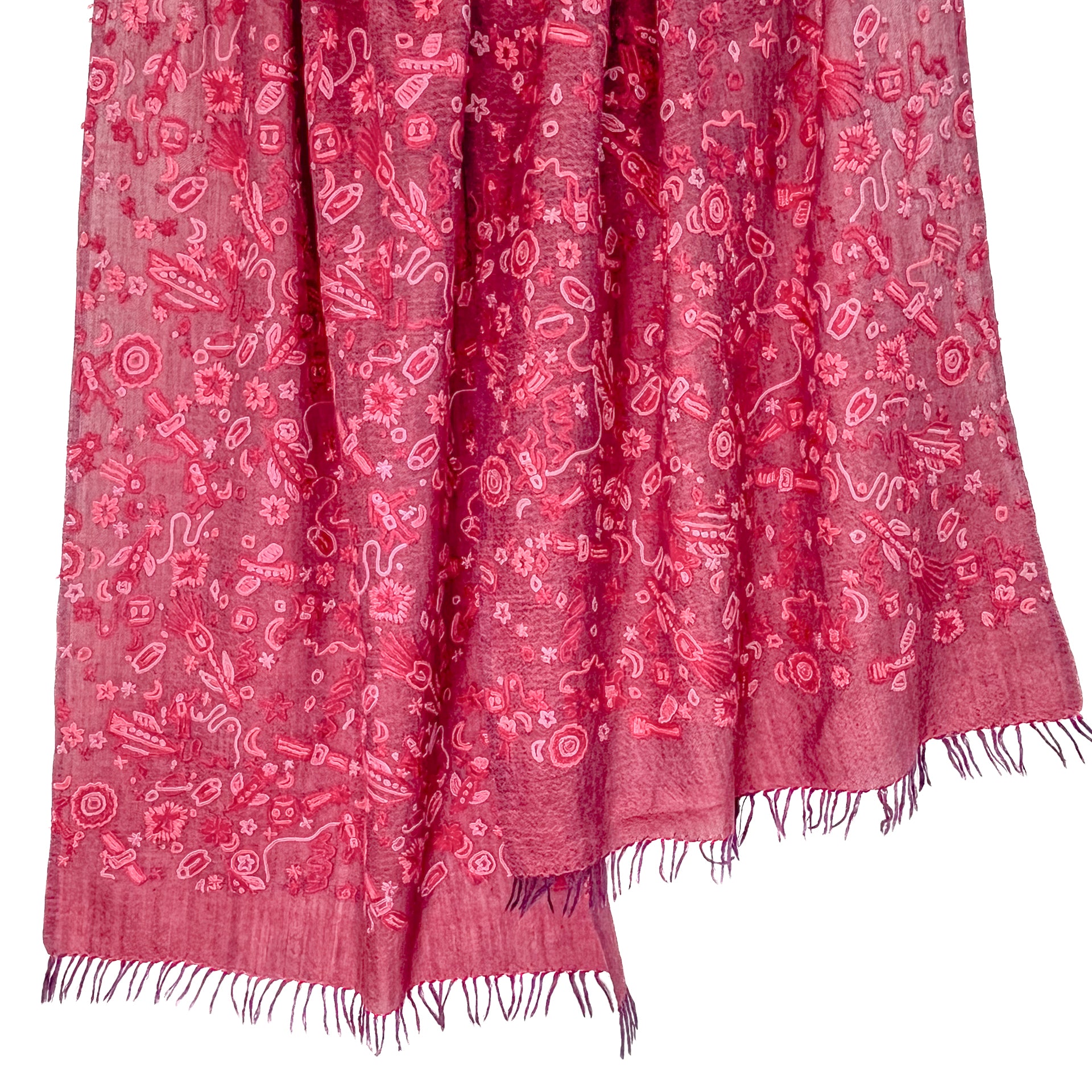 SPACE ODYSSEY ウール&シルク 手刺繍ストール (フューシャピンク)