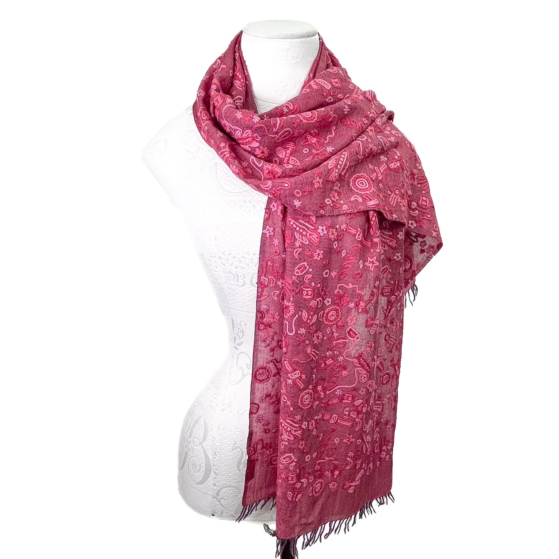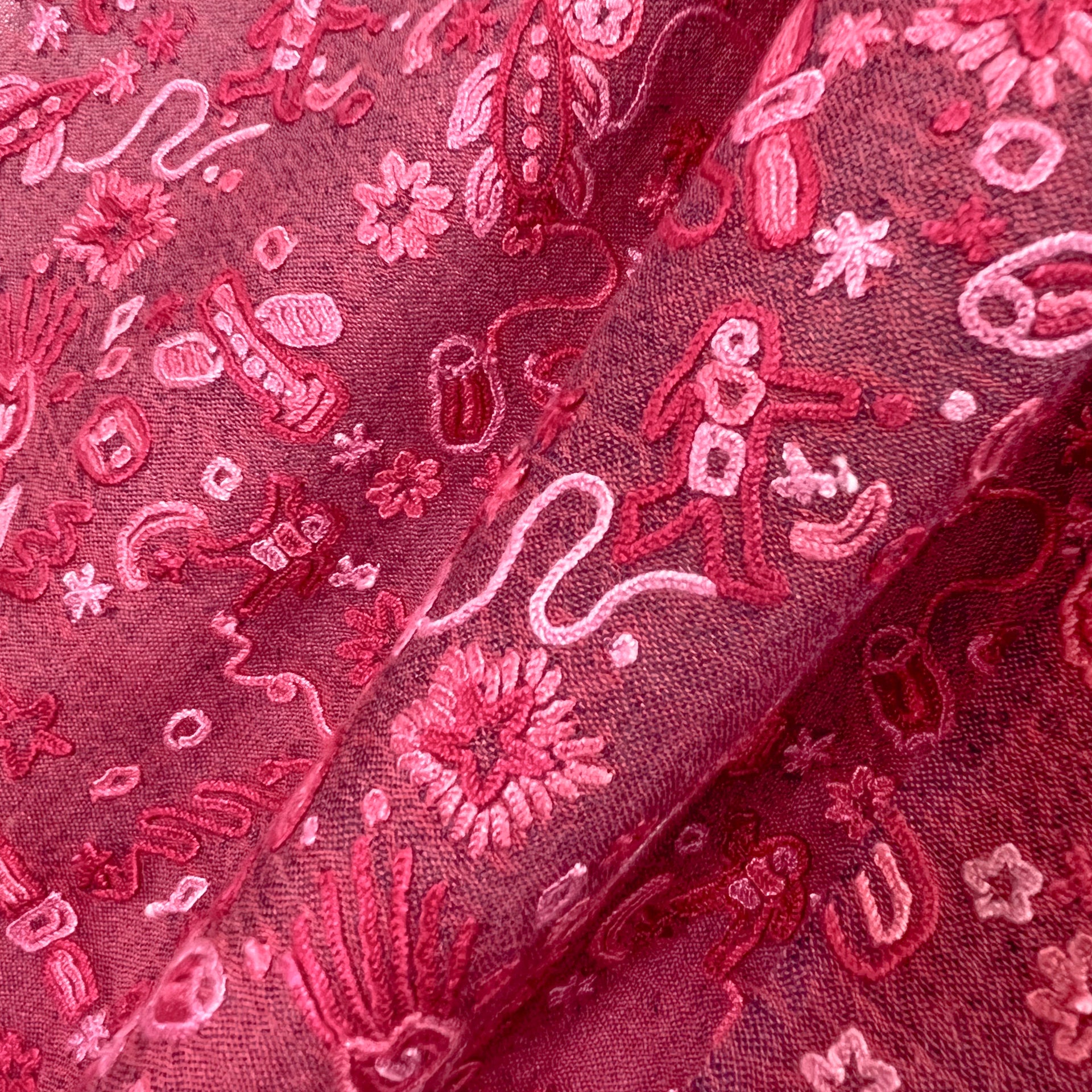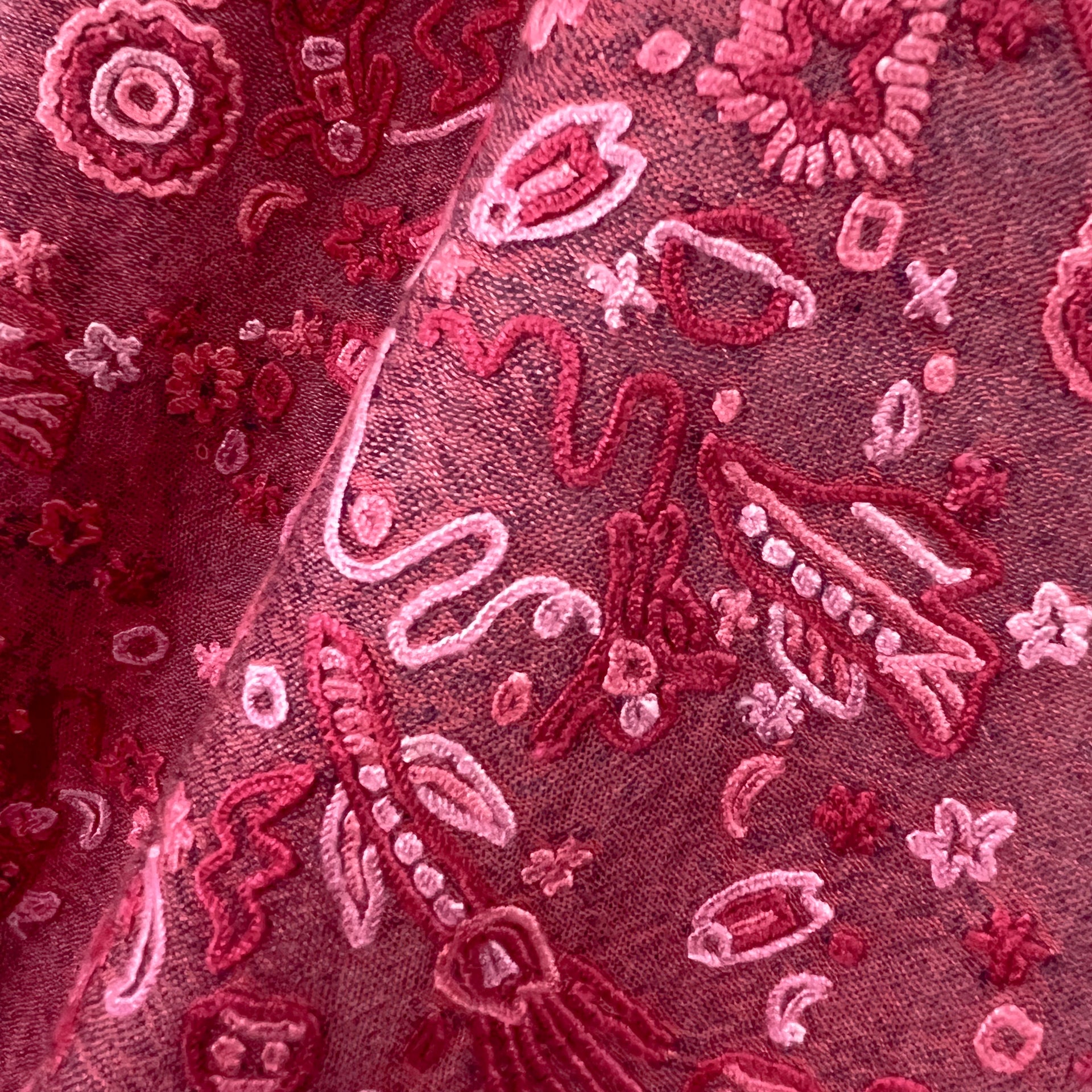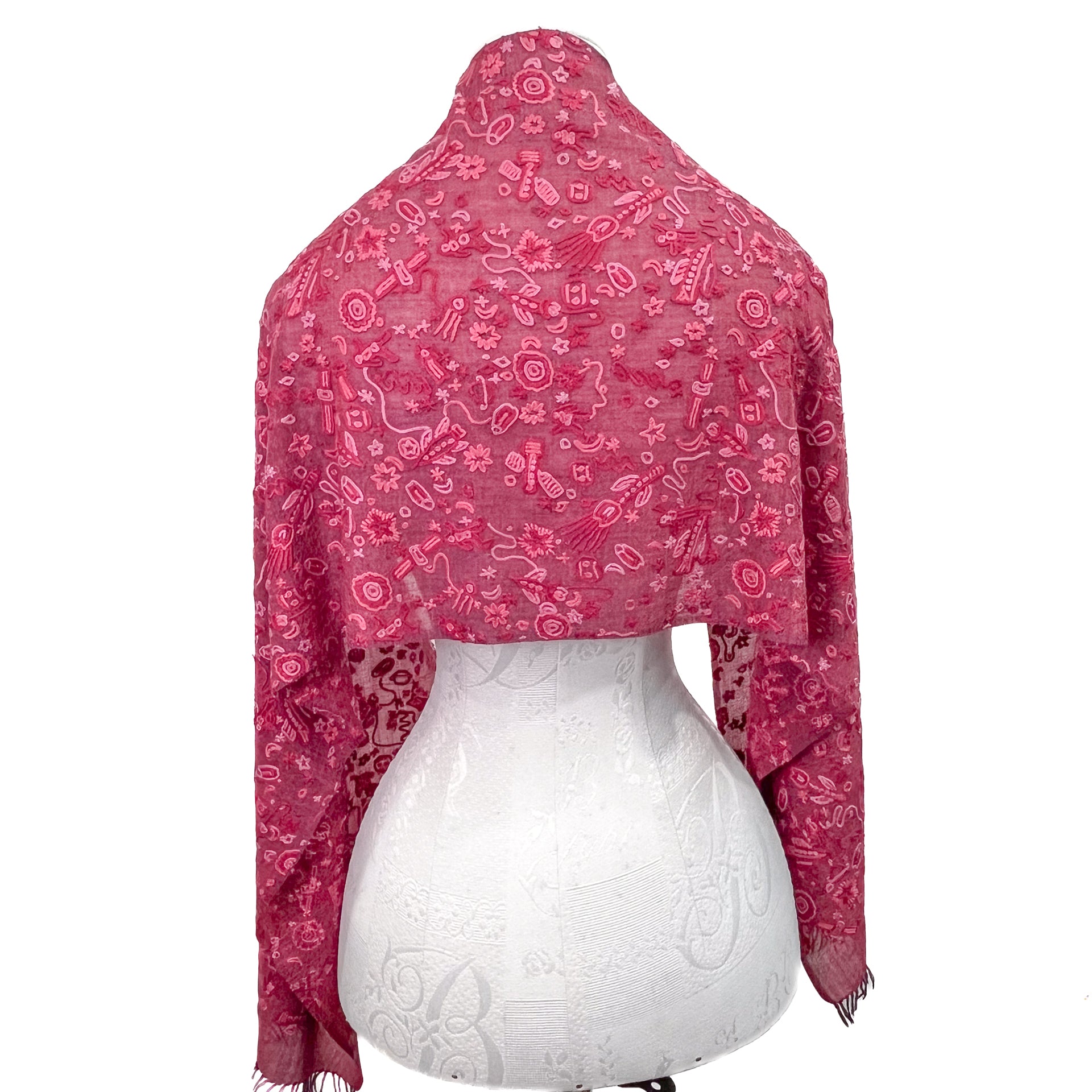 SPACE ODYSSEY ウール&シルク 手刺繍ストール (フューシャピンク)