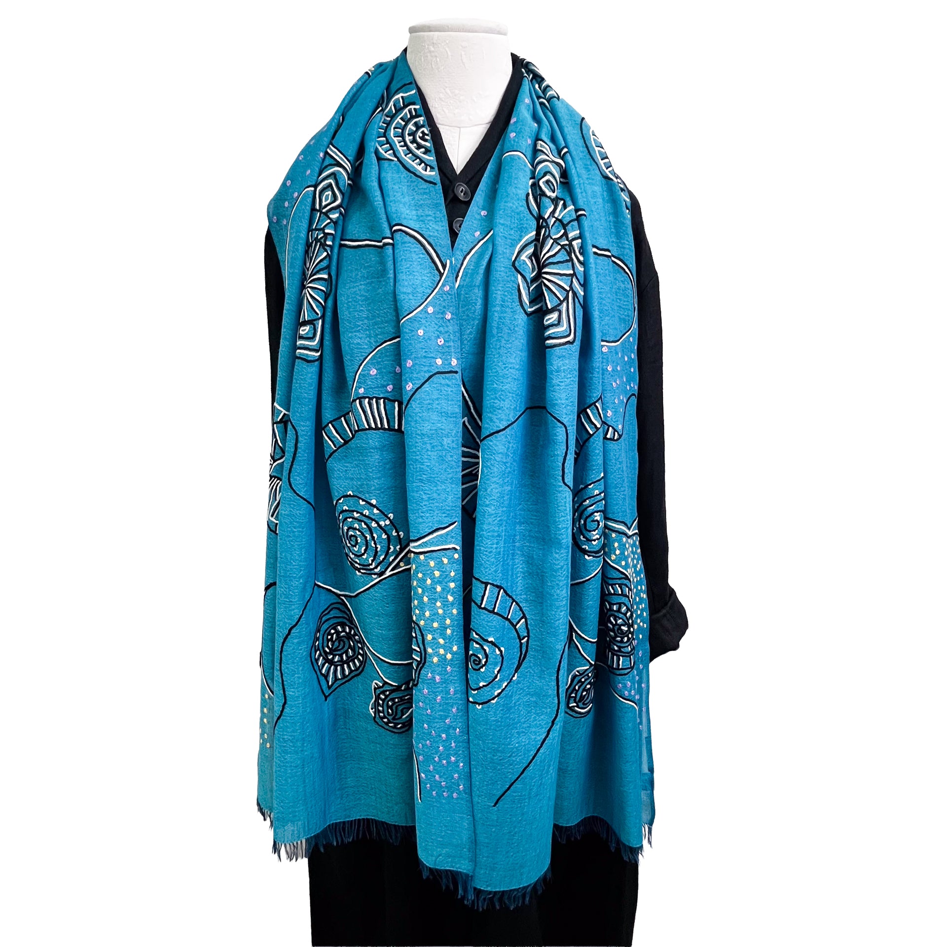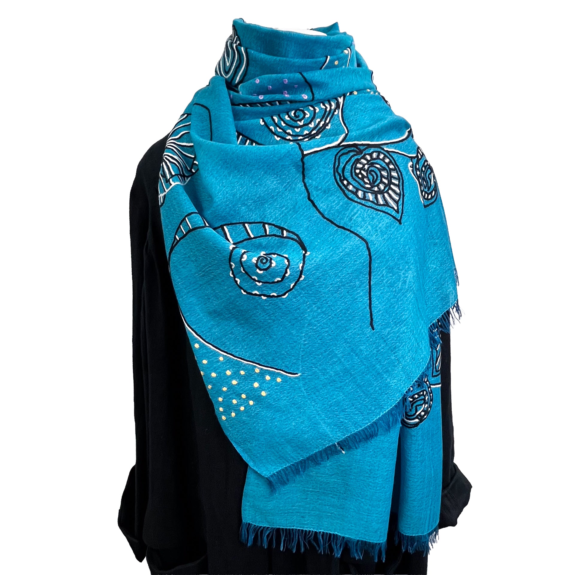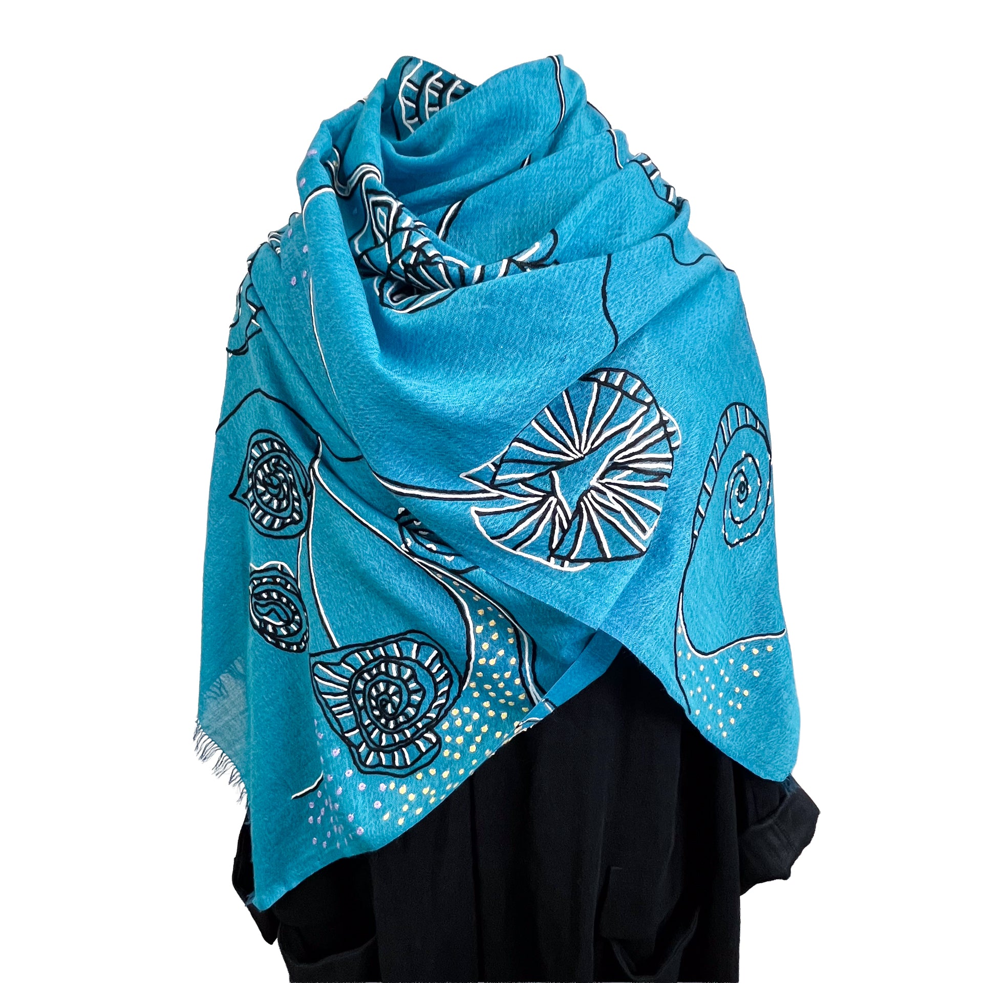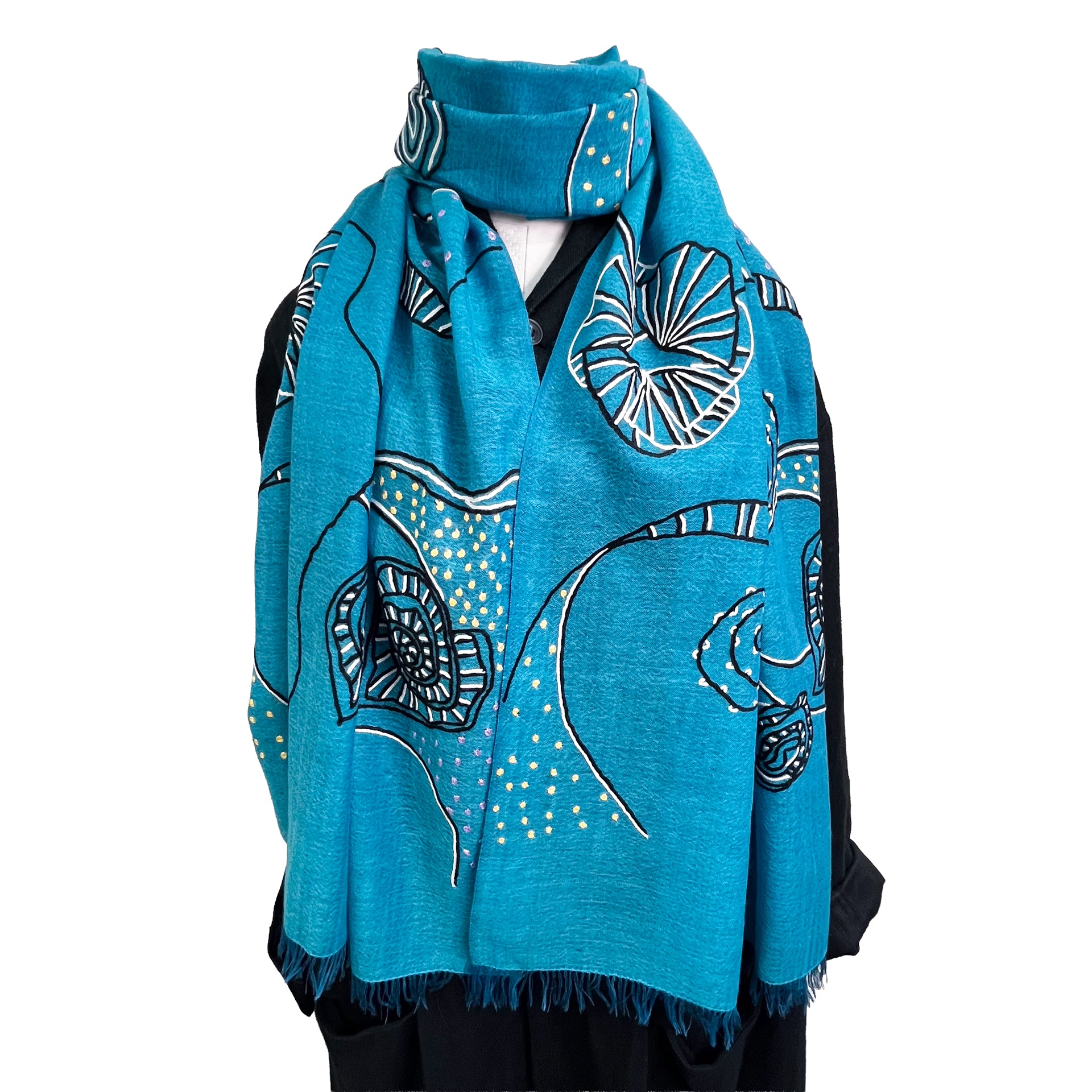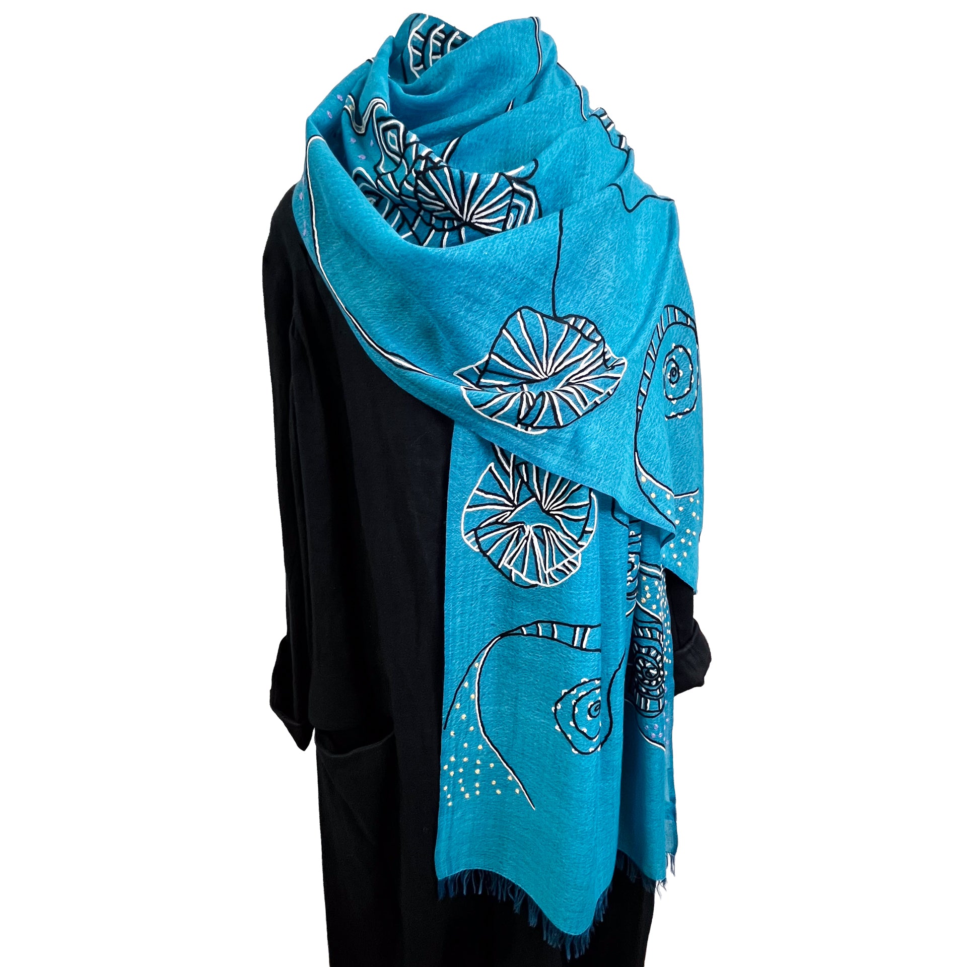 Ammonite ウール&シルク アリー手刺繍ストール(ターコイズ)