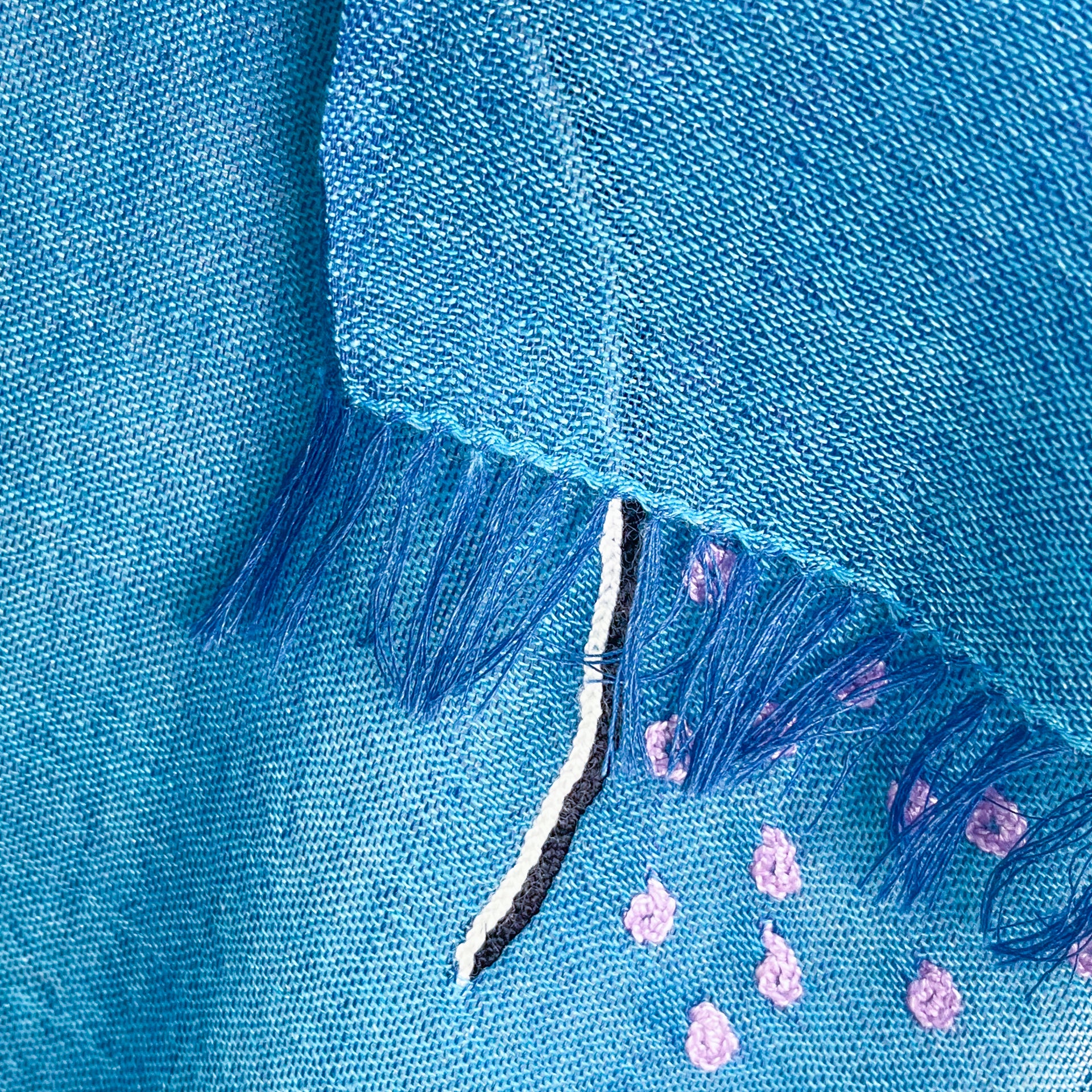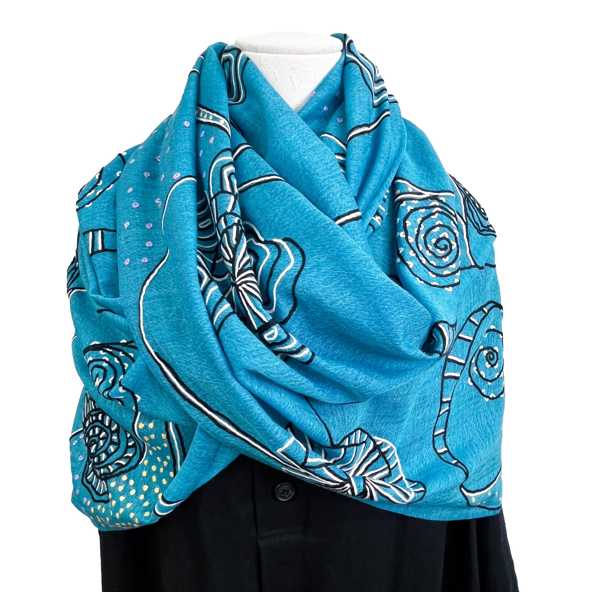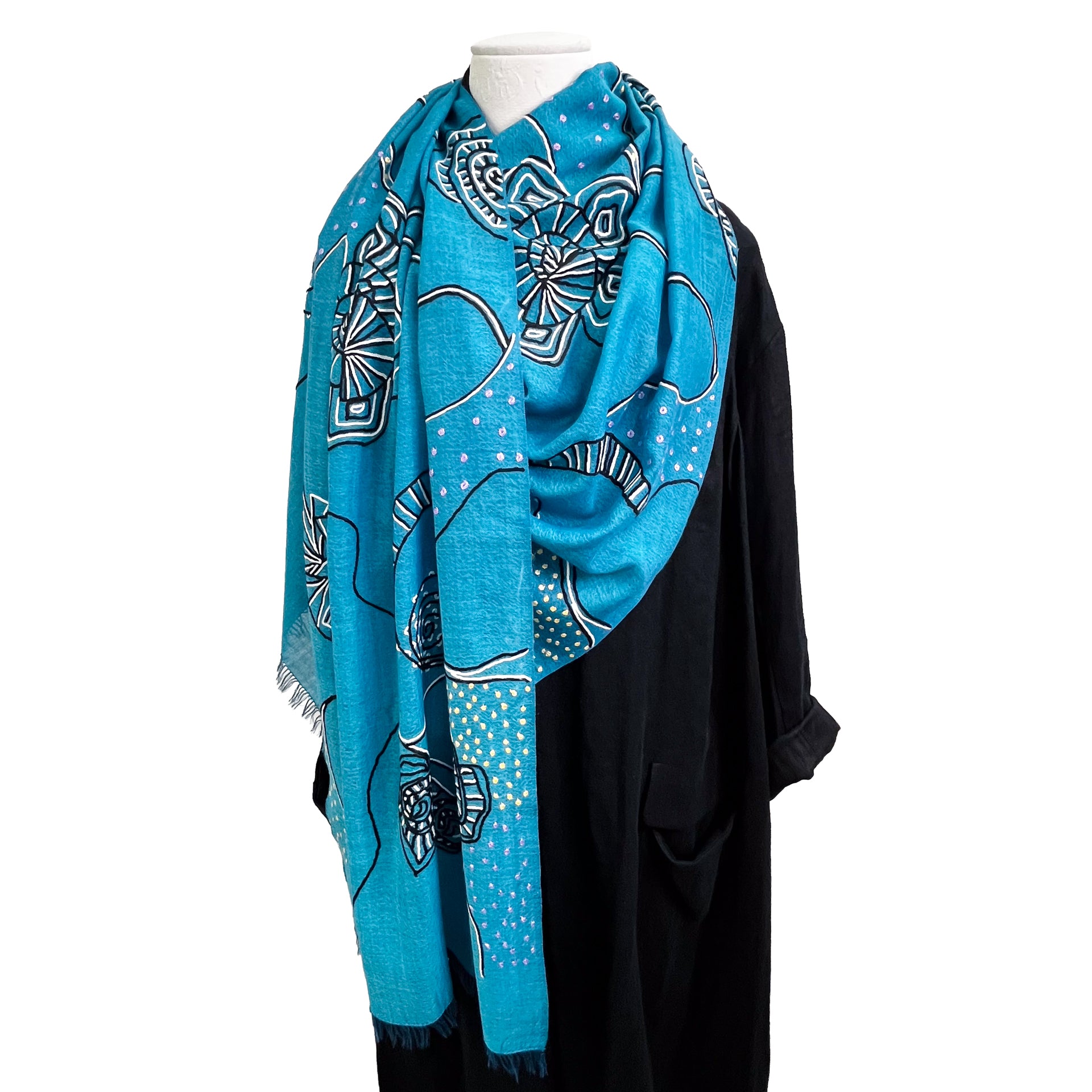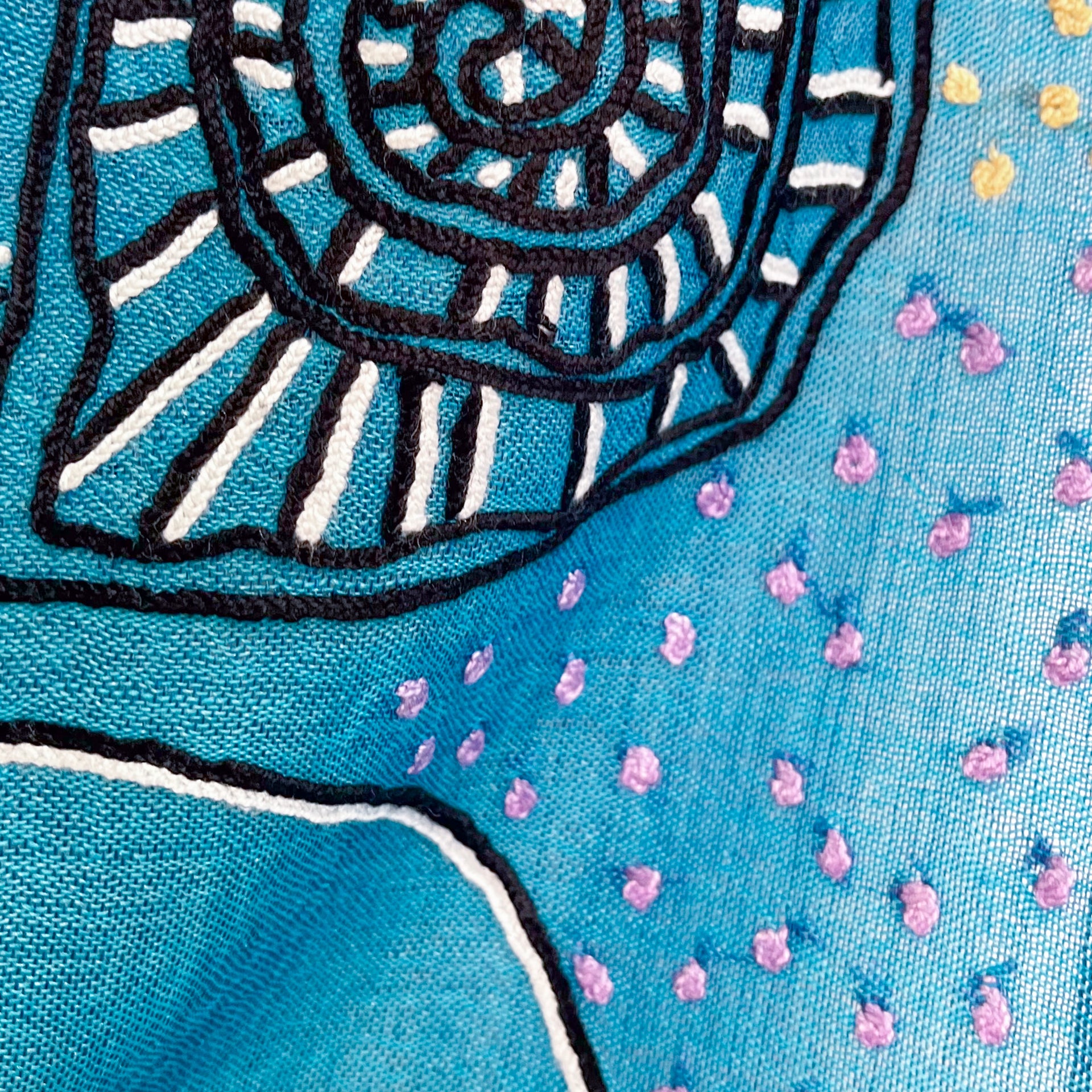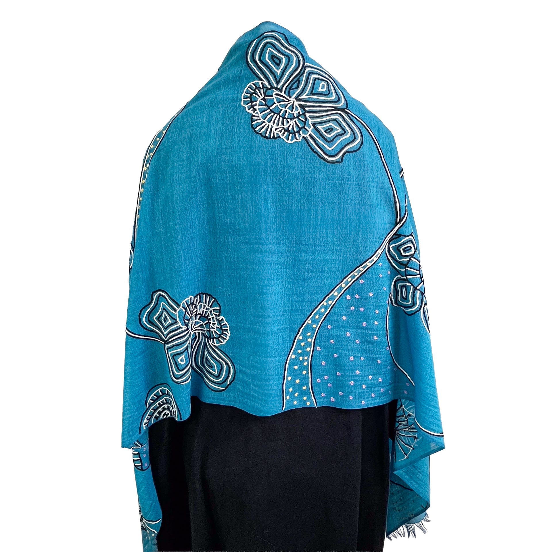 Ammonite ウール&シルク アリー手刺繍ストール(ターコイズ)