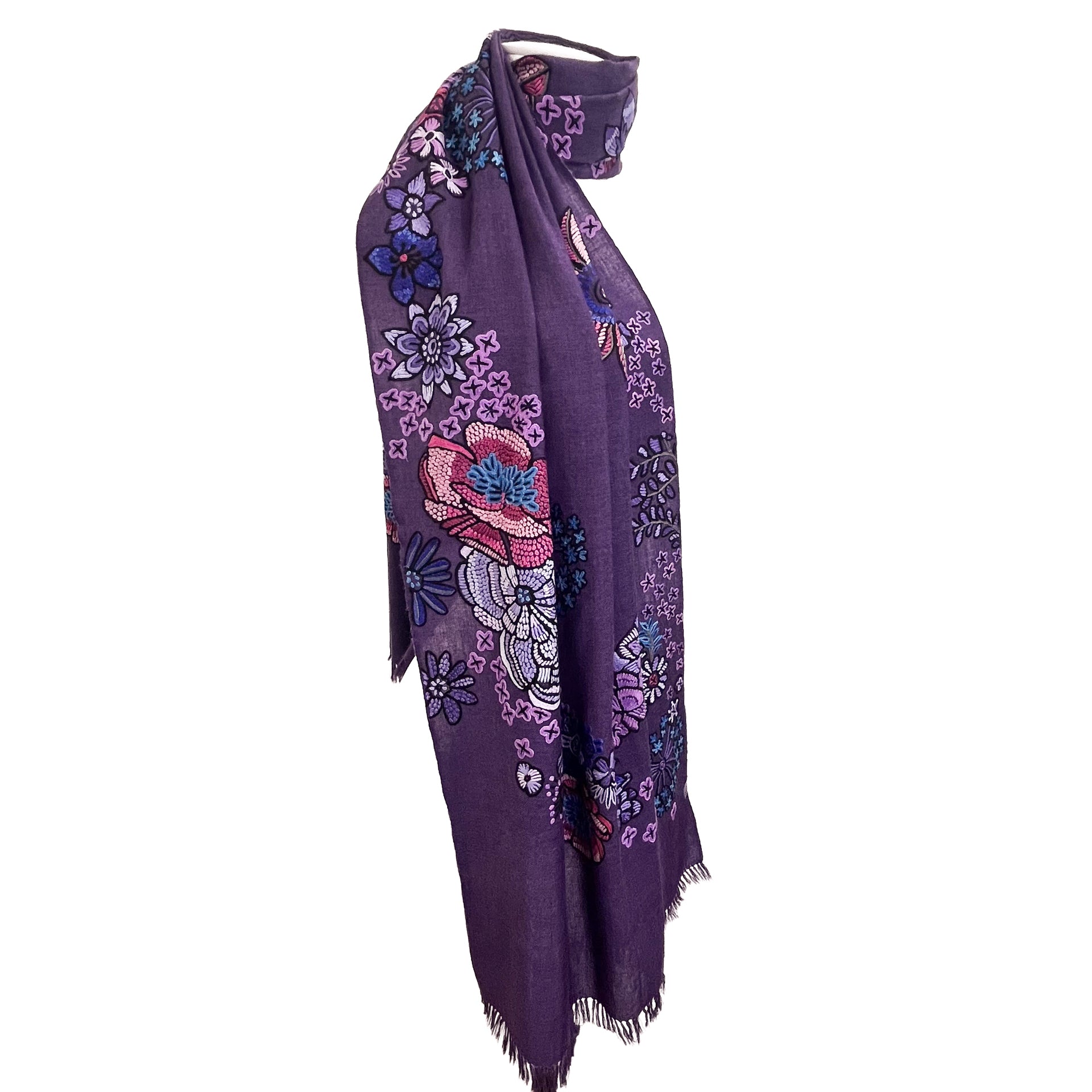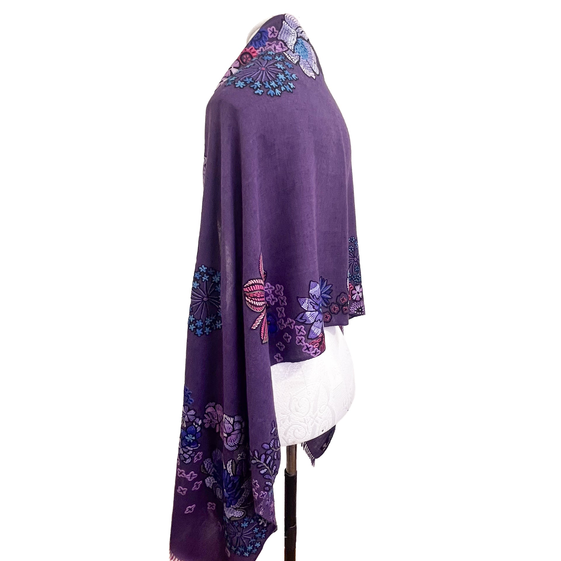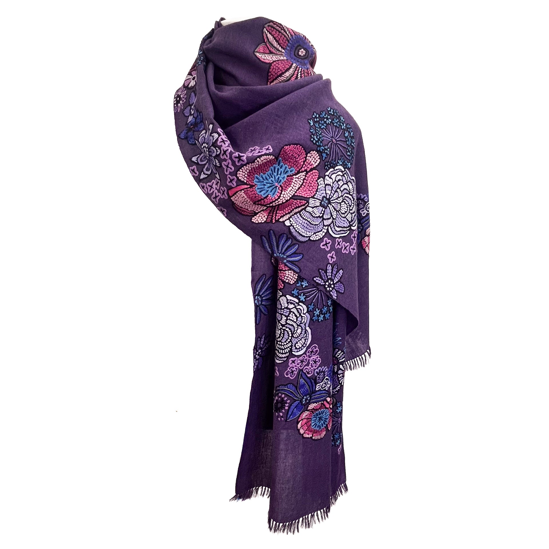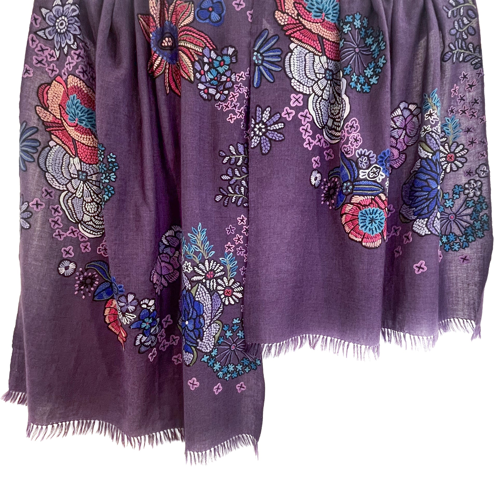 FLOWER MERRY GO ROUND ウール アリー手刺繍ストール (ダークパープル)