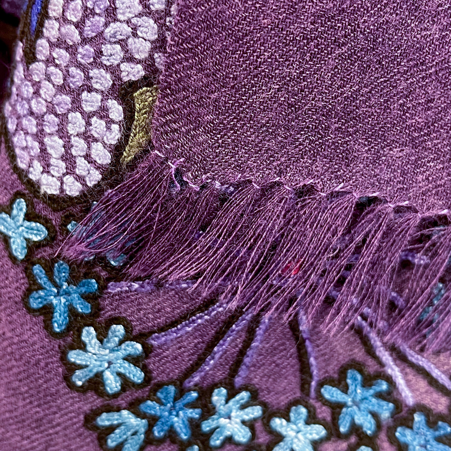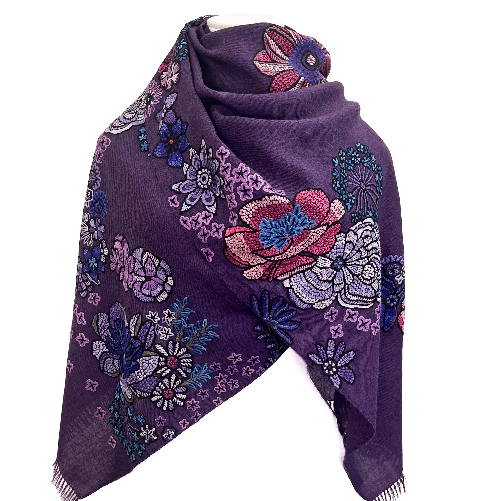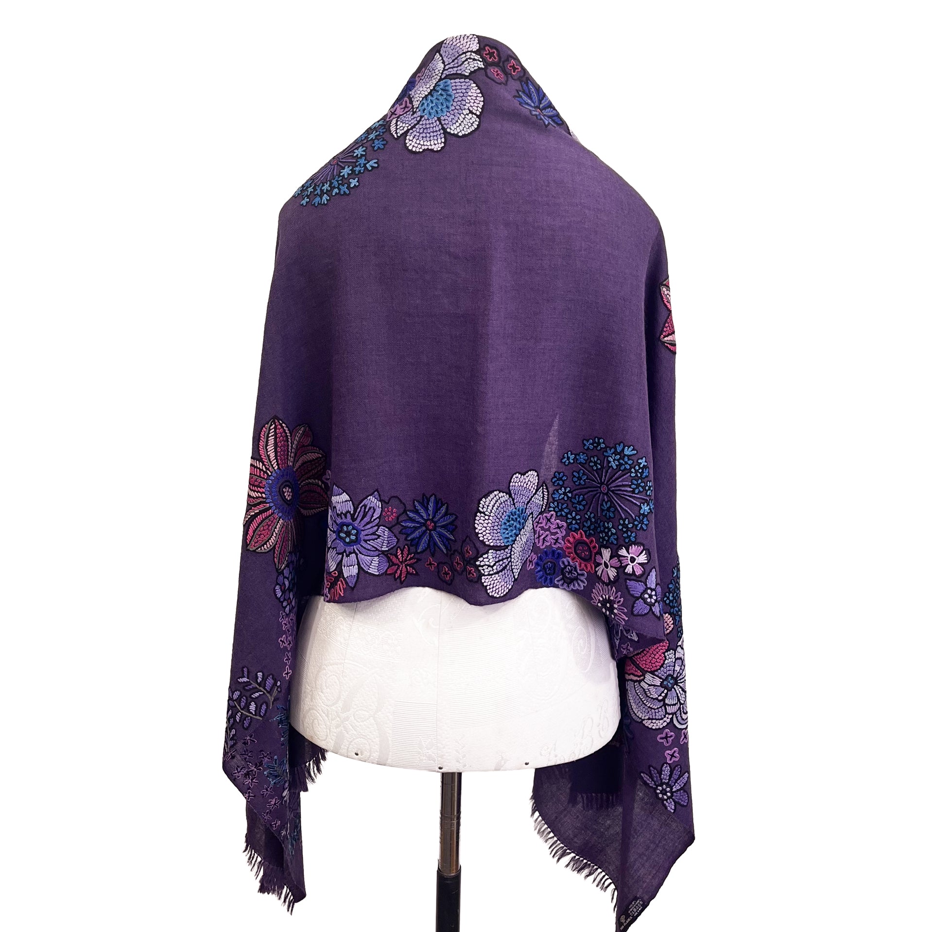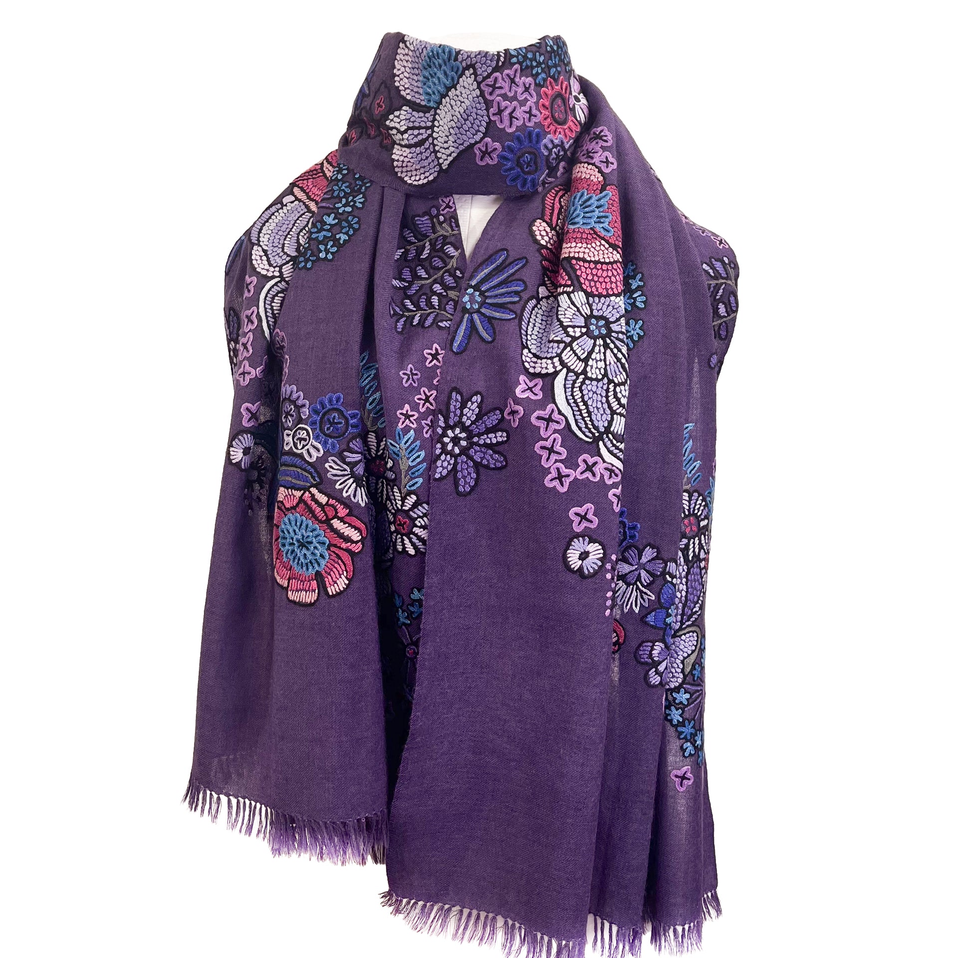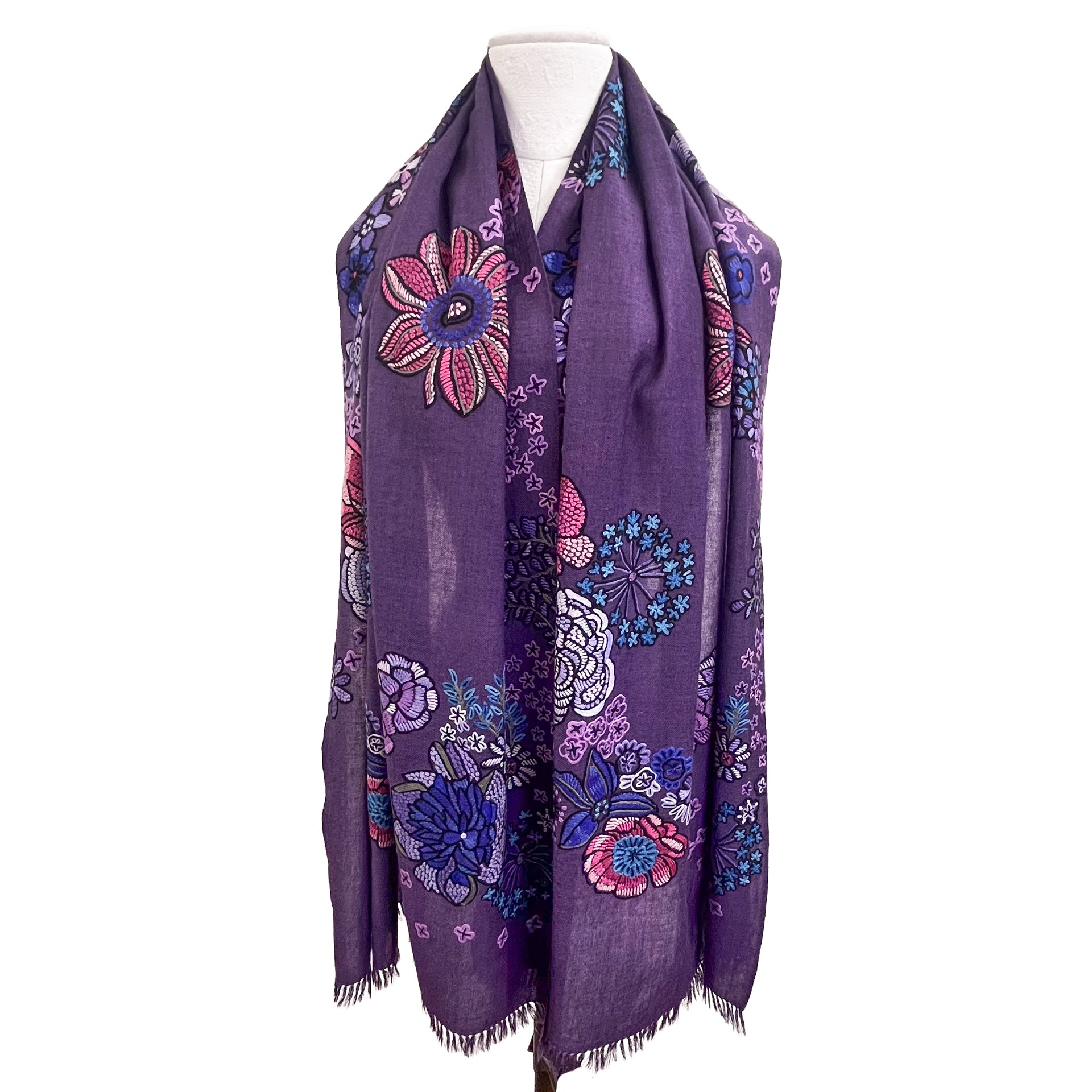 FLOWER MERRY GO ROUND ウール アリー手刺繍ストール (ダークパープル)