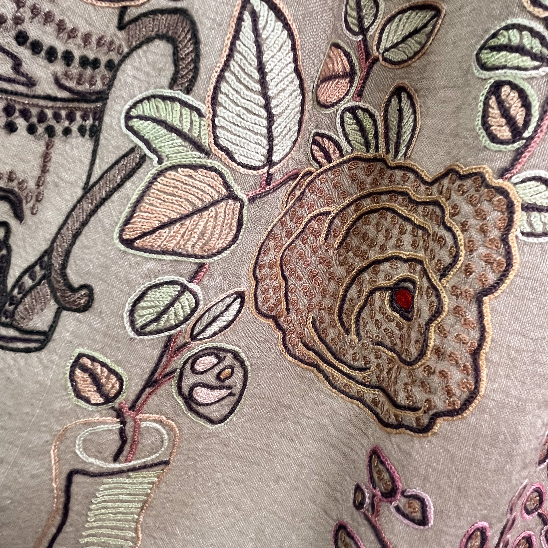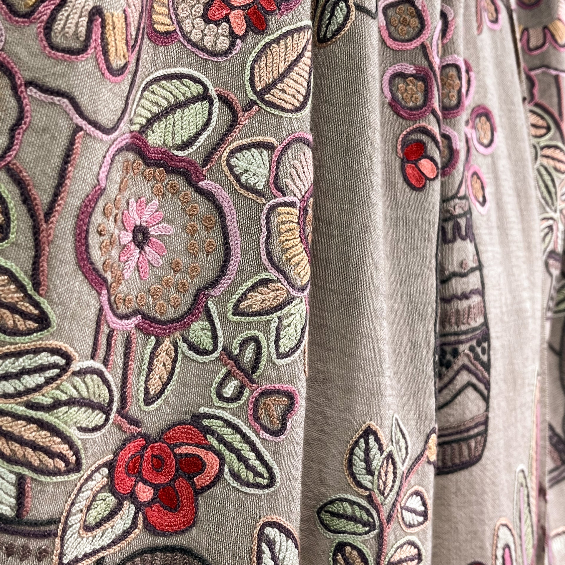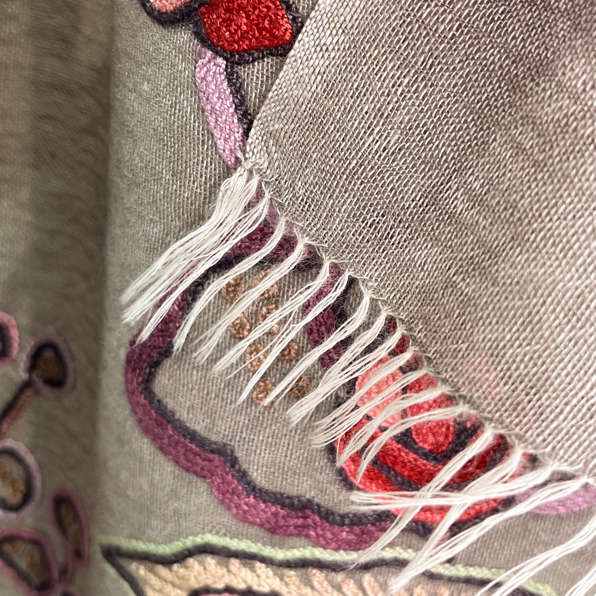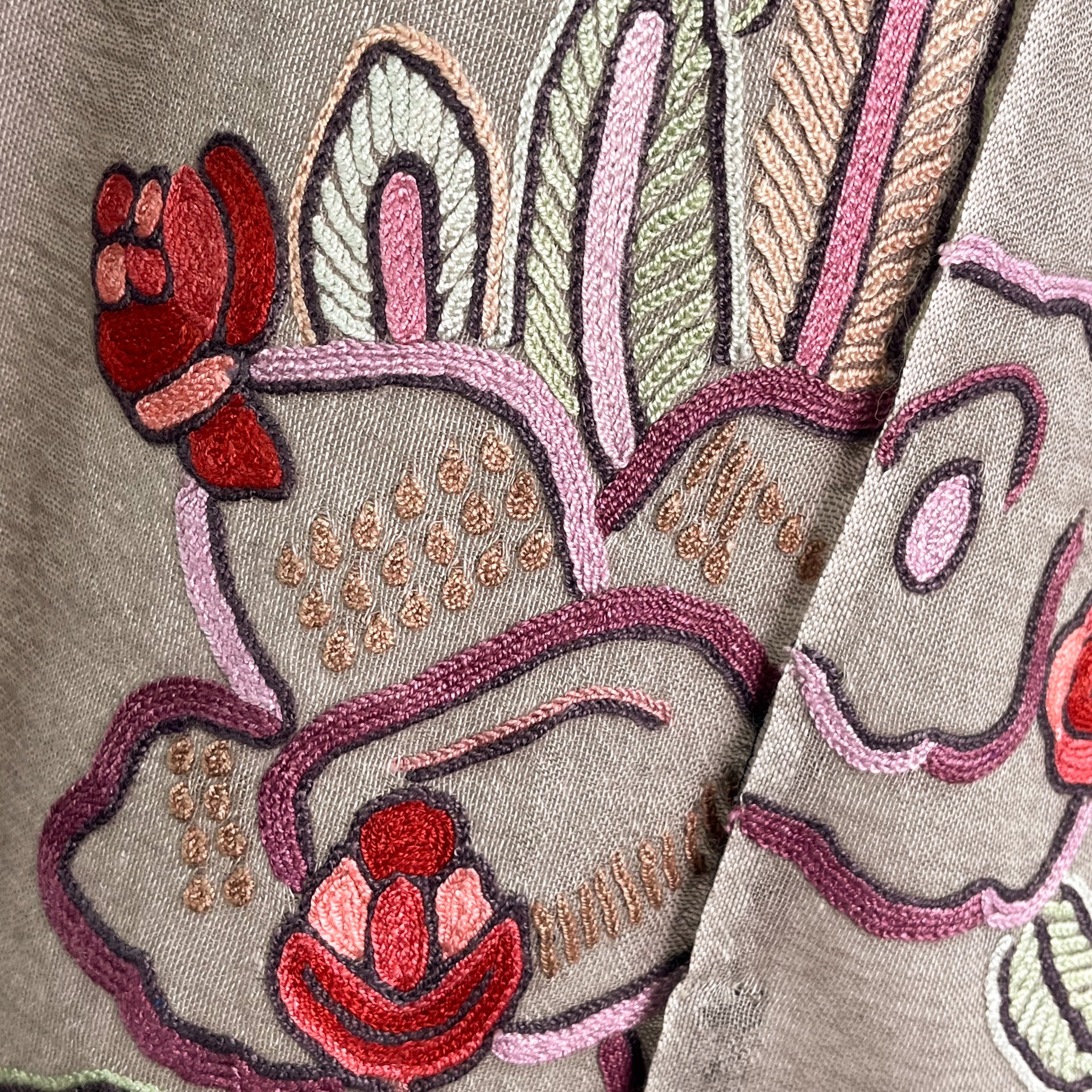 FLOWER POT ウール&シルク アリー手刺繍ストール (グレージュ)