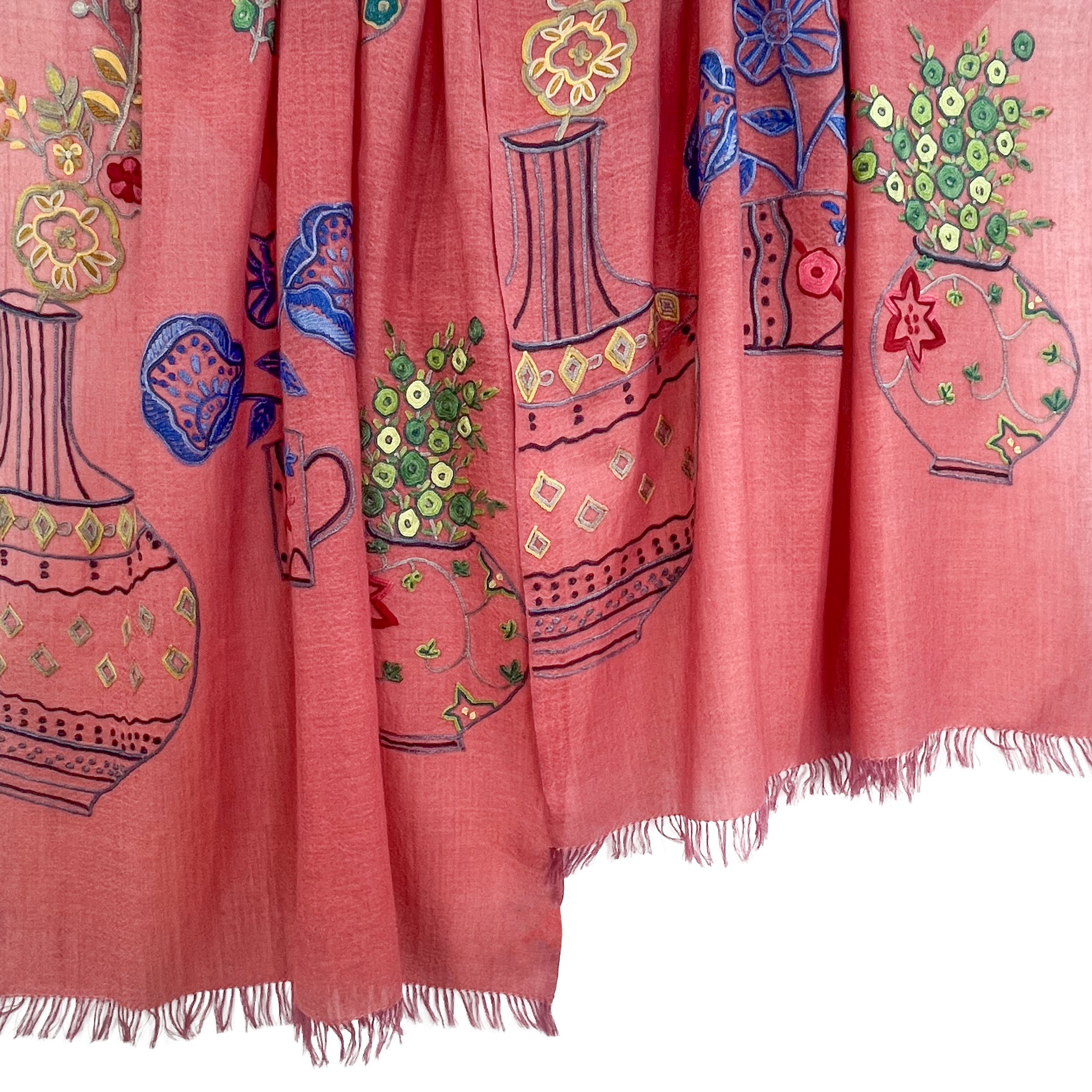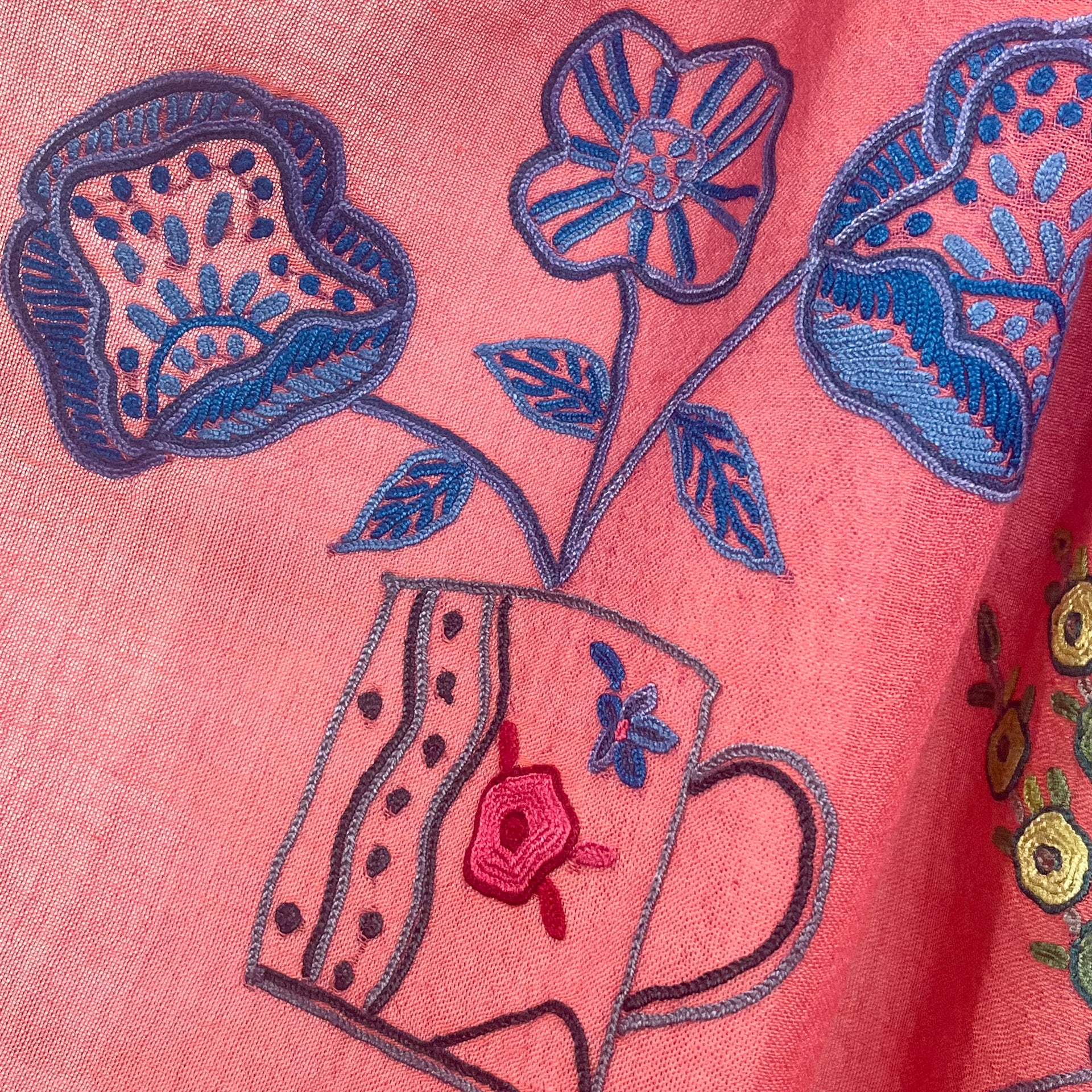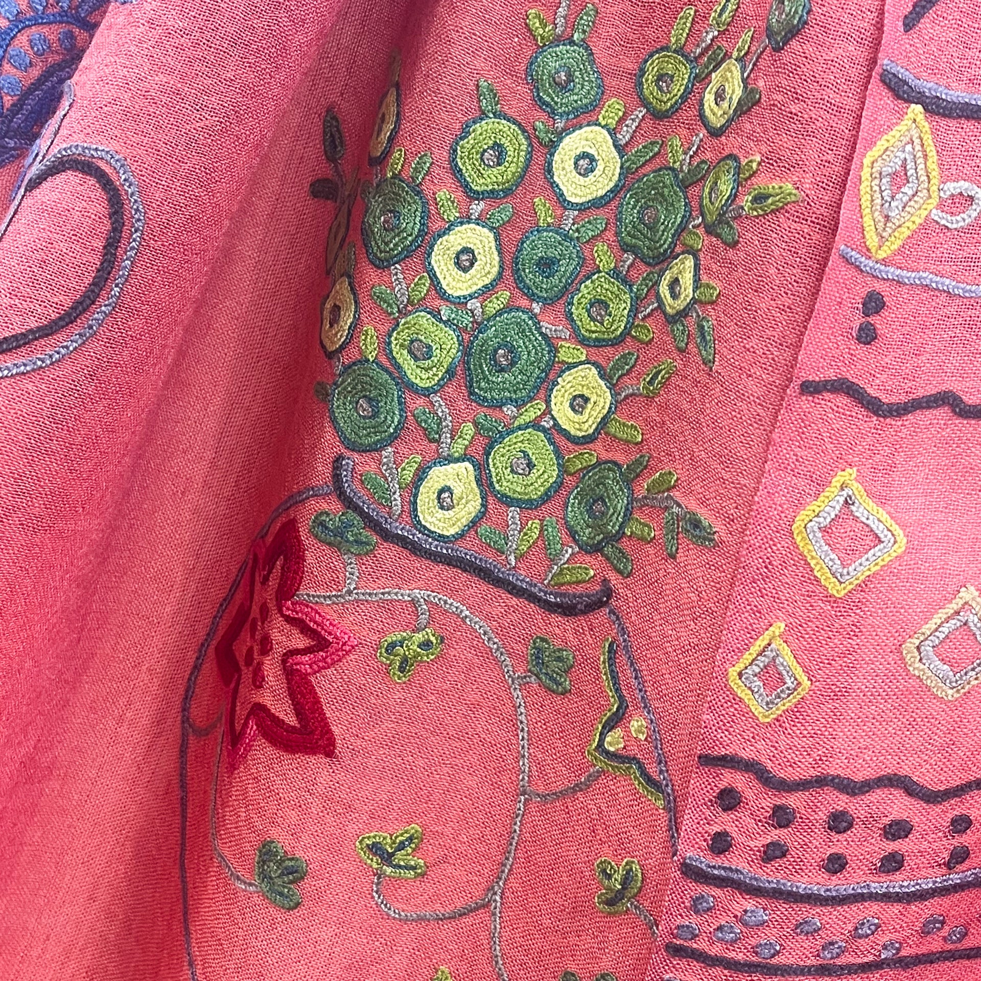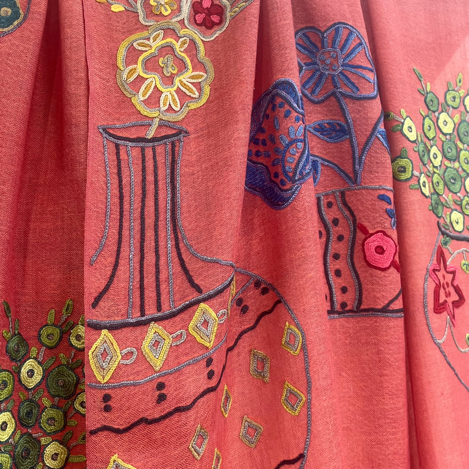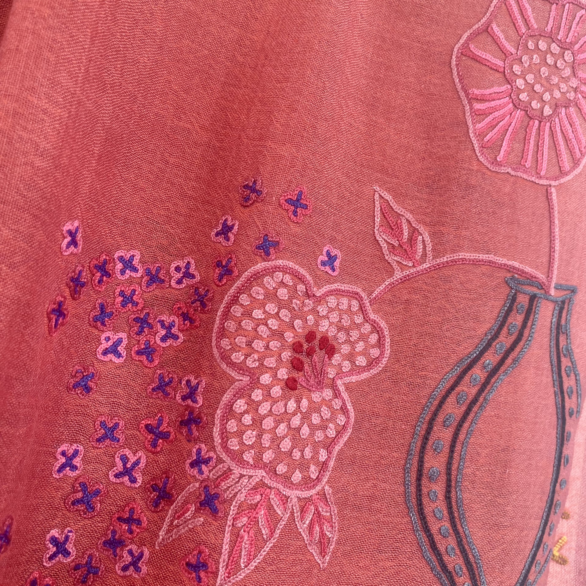 NEW FLOWER POT ウール&シルク アリー手刺繍ストール (オレンジ)