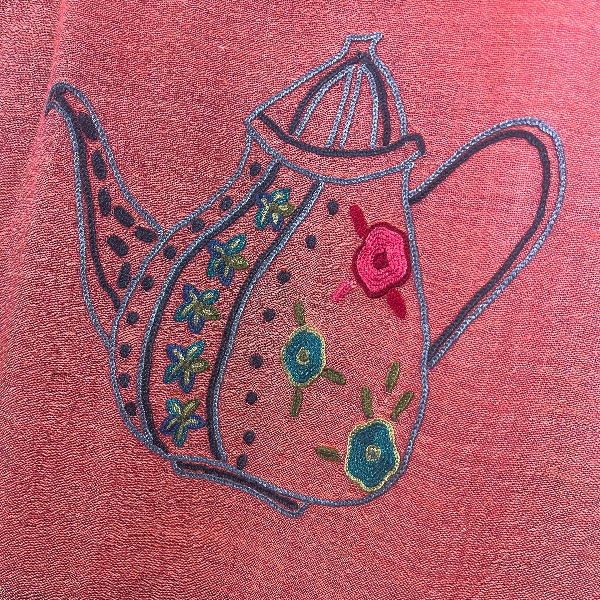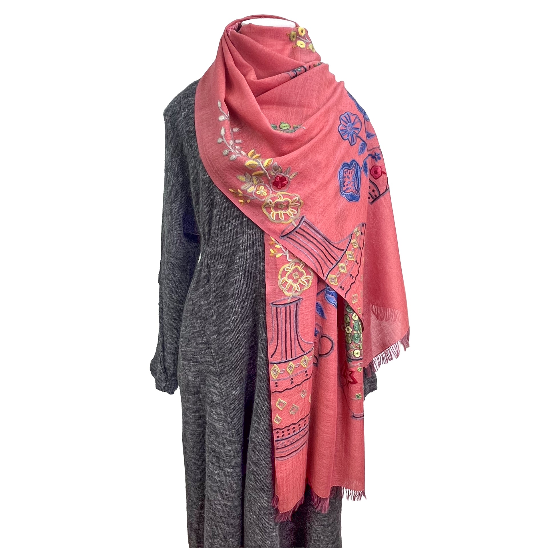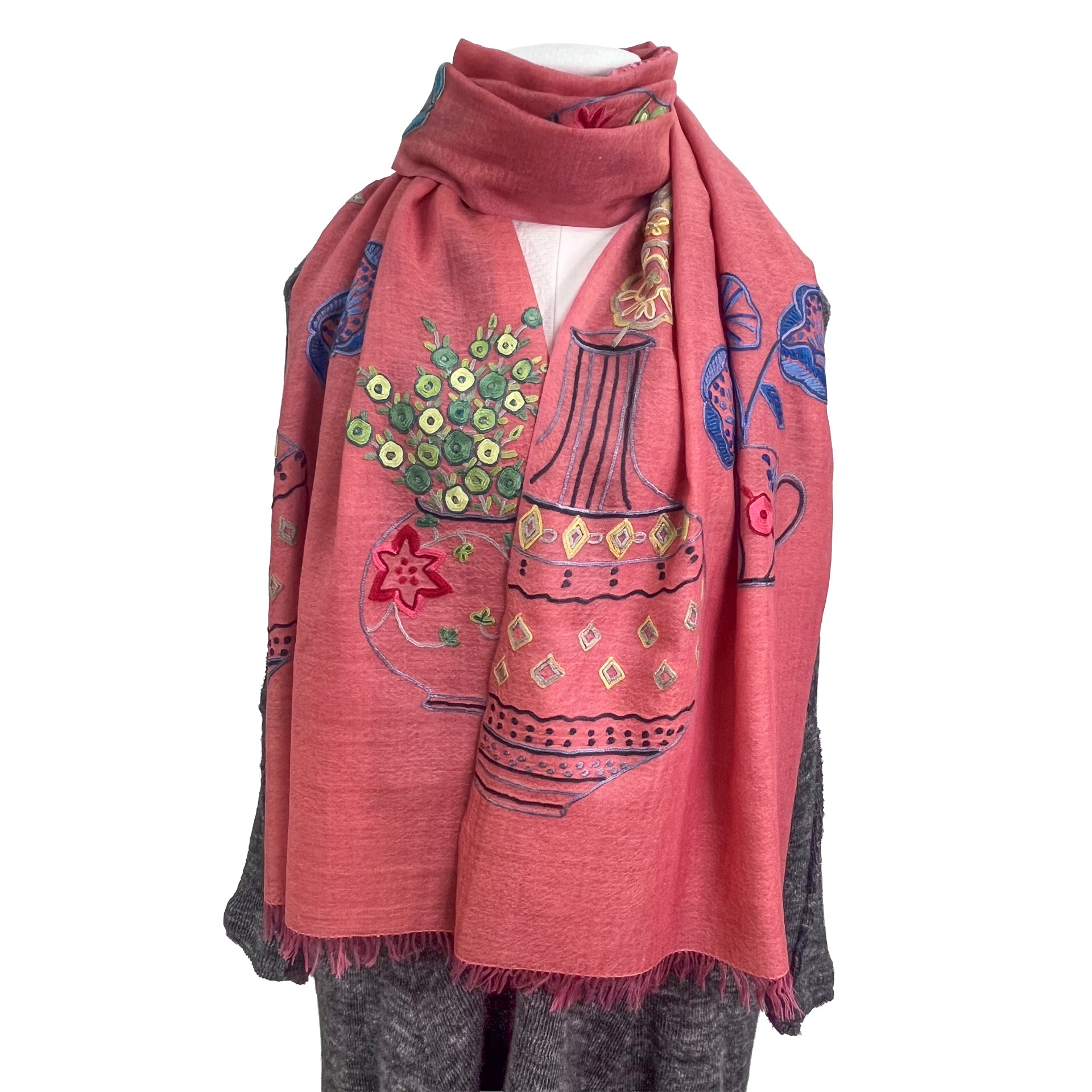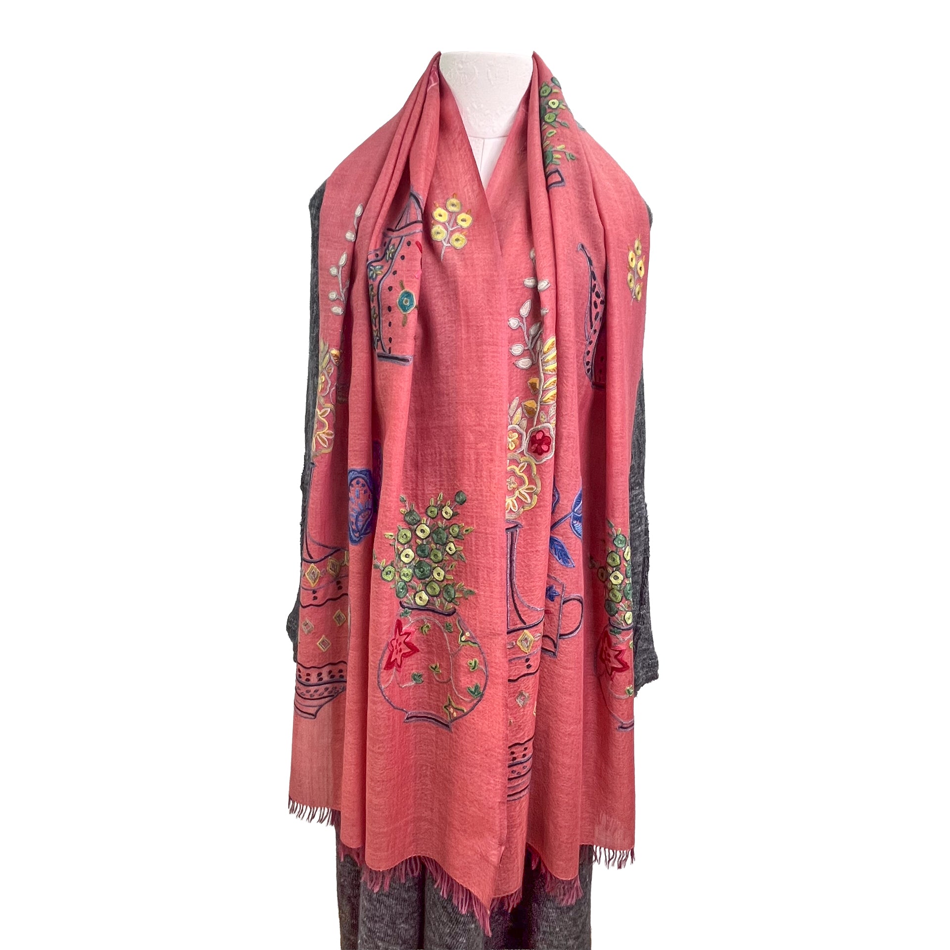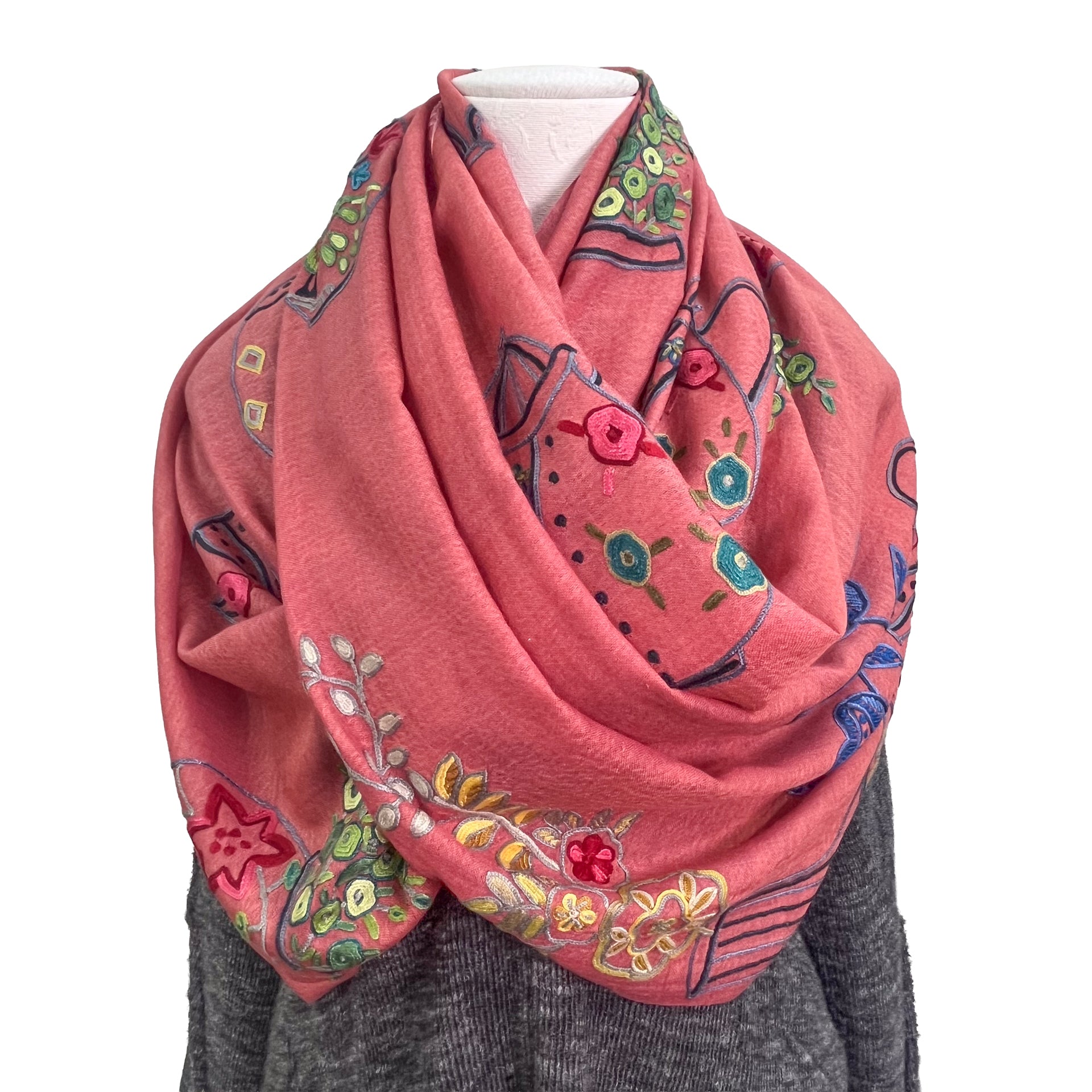 NEW FLOWER POT ウール&シルク アリー手刺繍ストール (オレンジ)