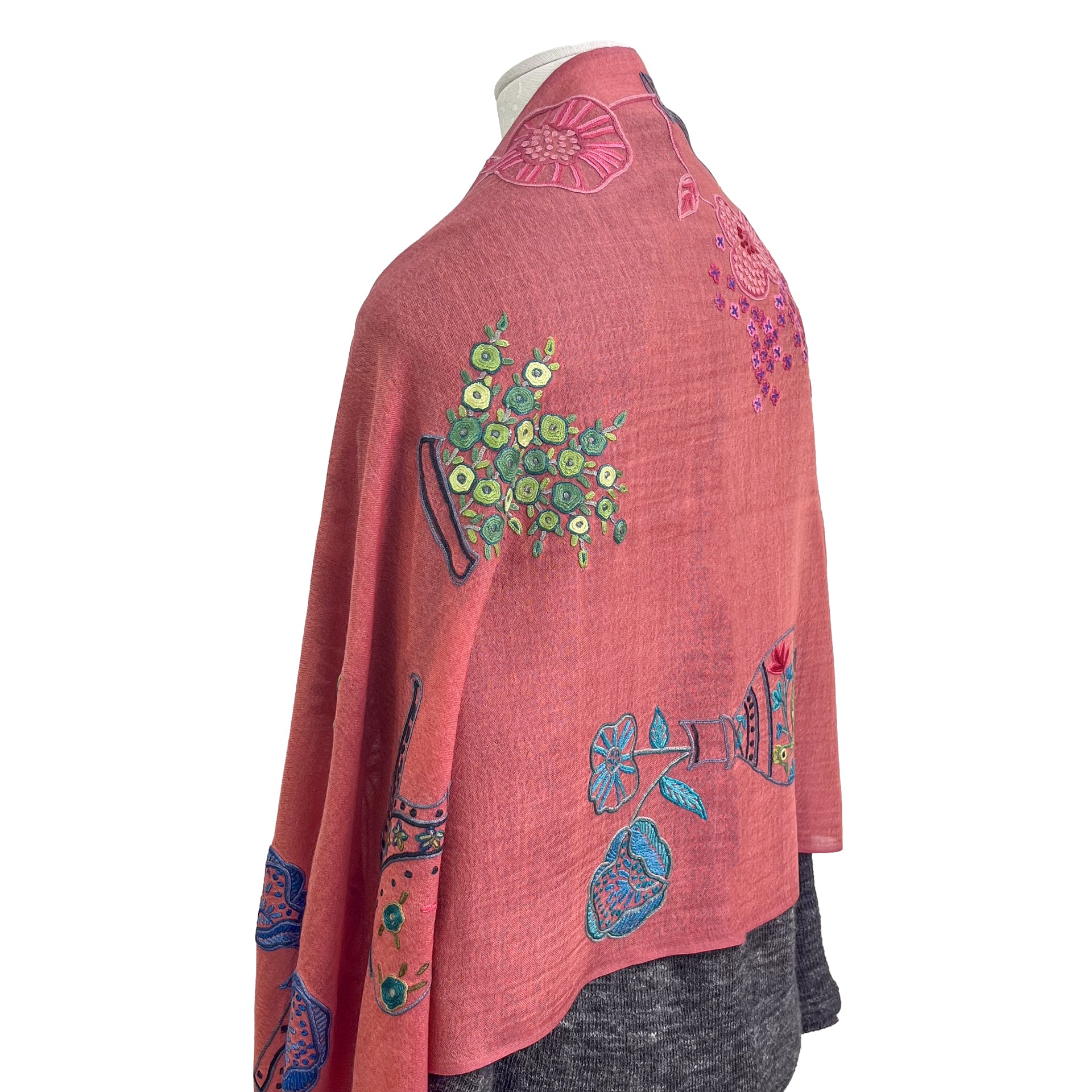S-WTA9043_0063Fusion Flowers ウール&シルク アリー手刺繍ストール (ダークグリーン)