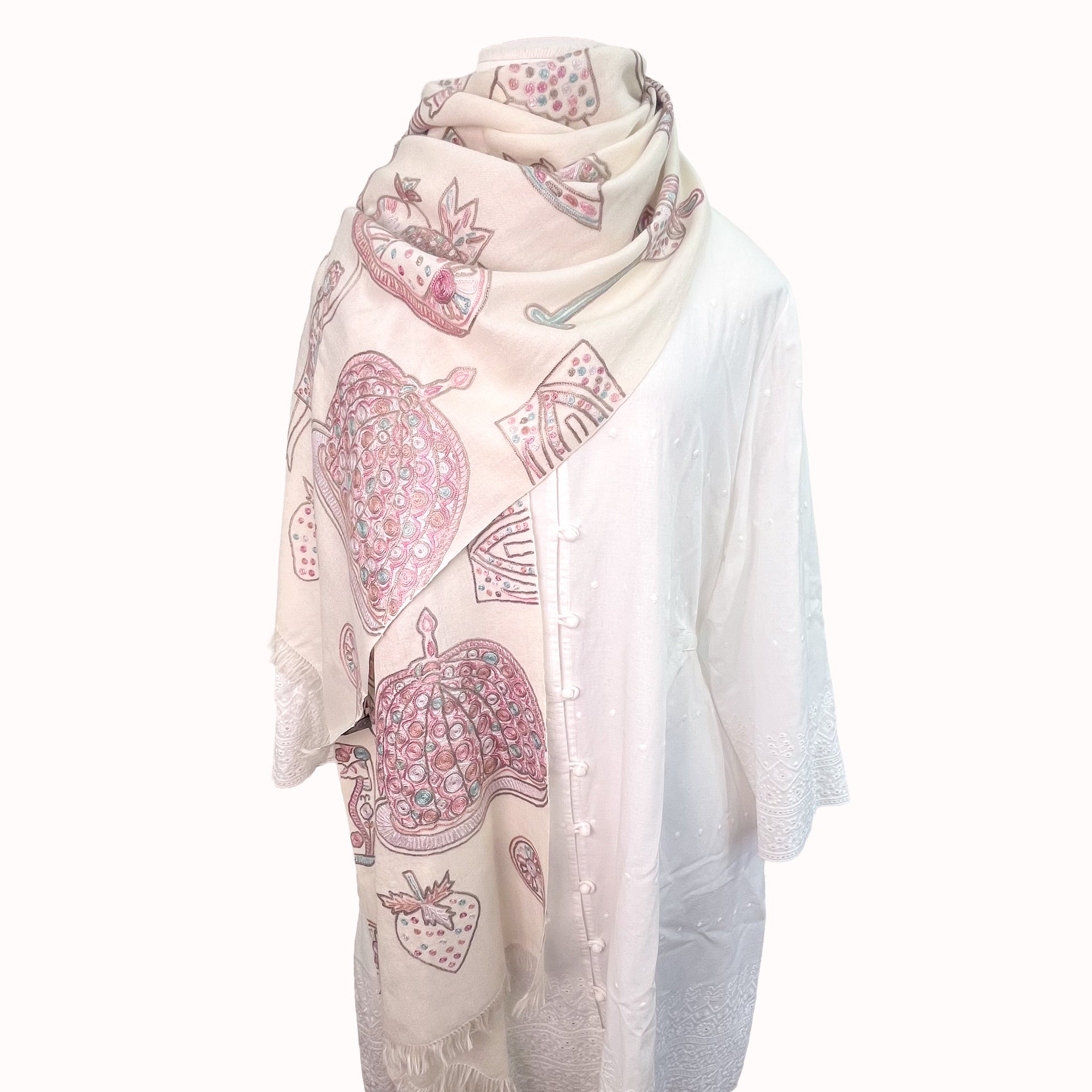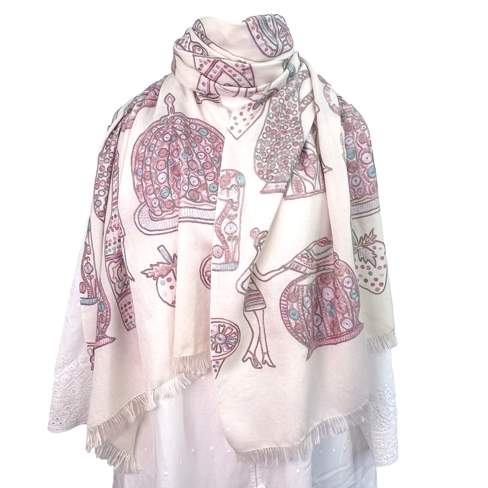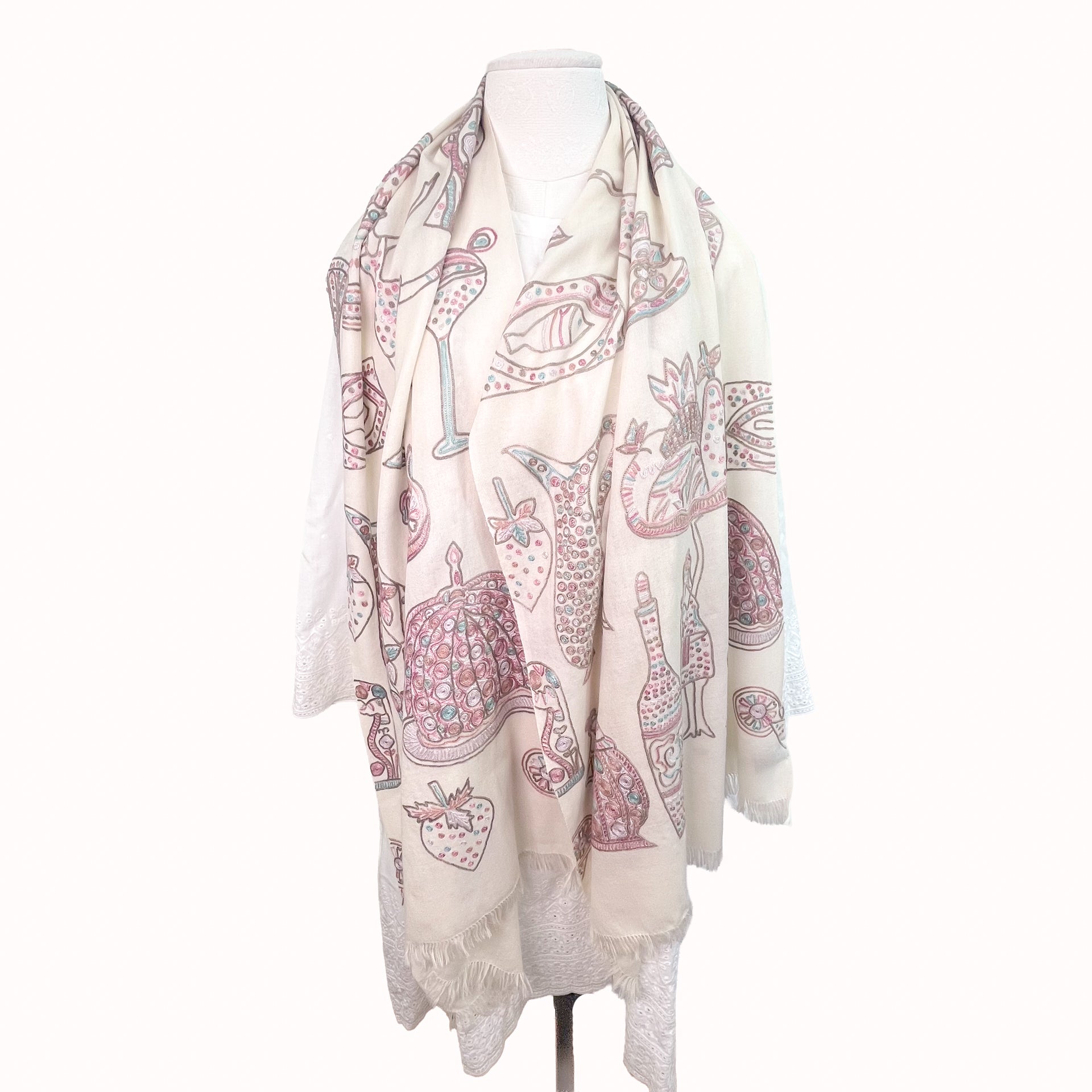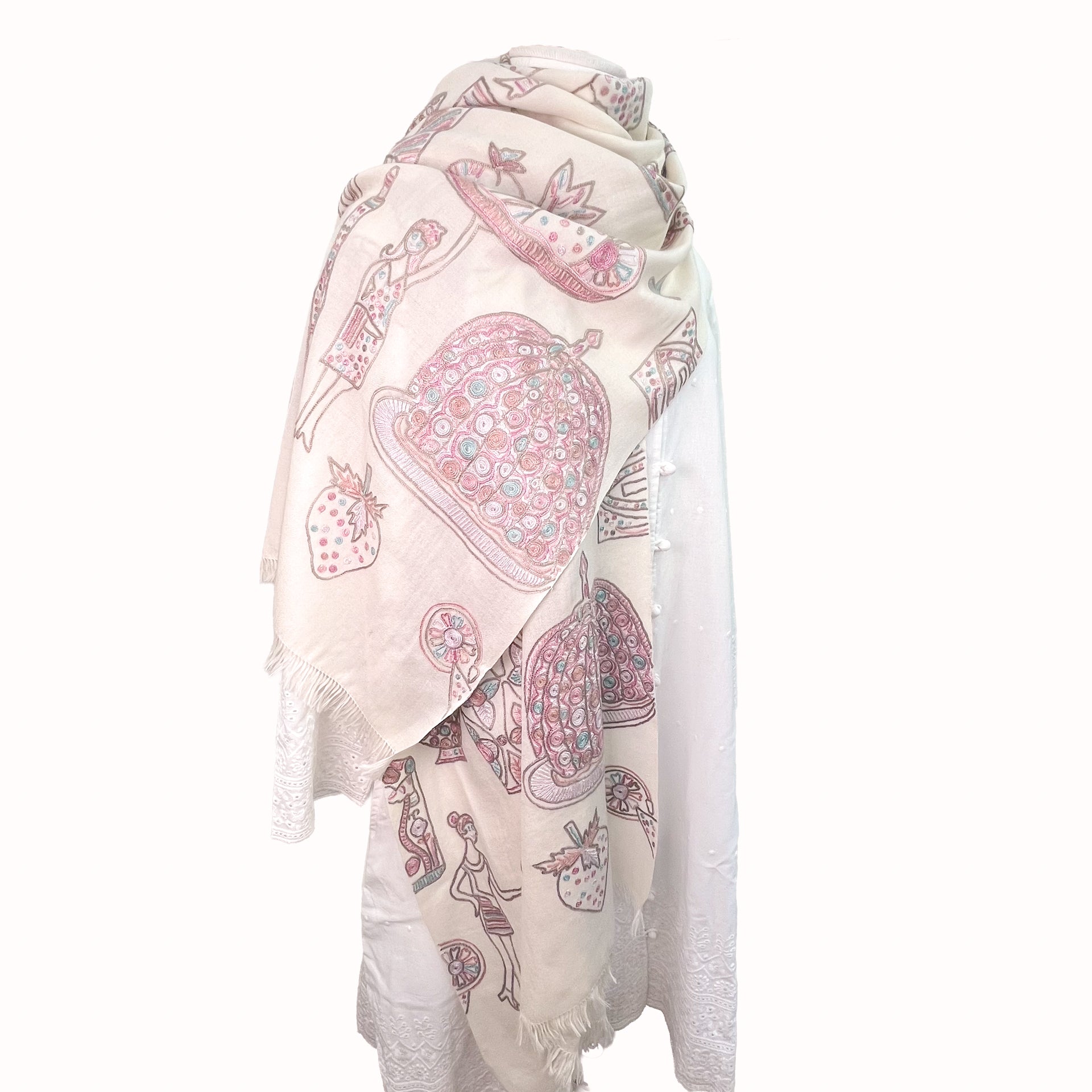 PARTY ファインウールシルク アリー手刺繍ストール (ホワイト)