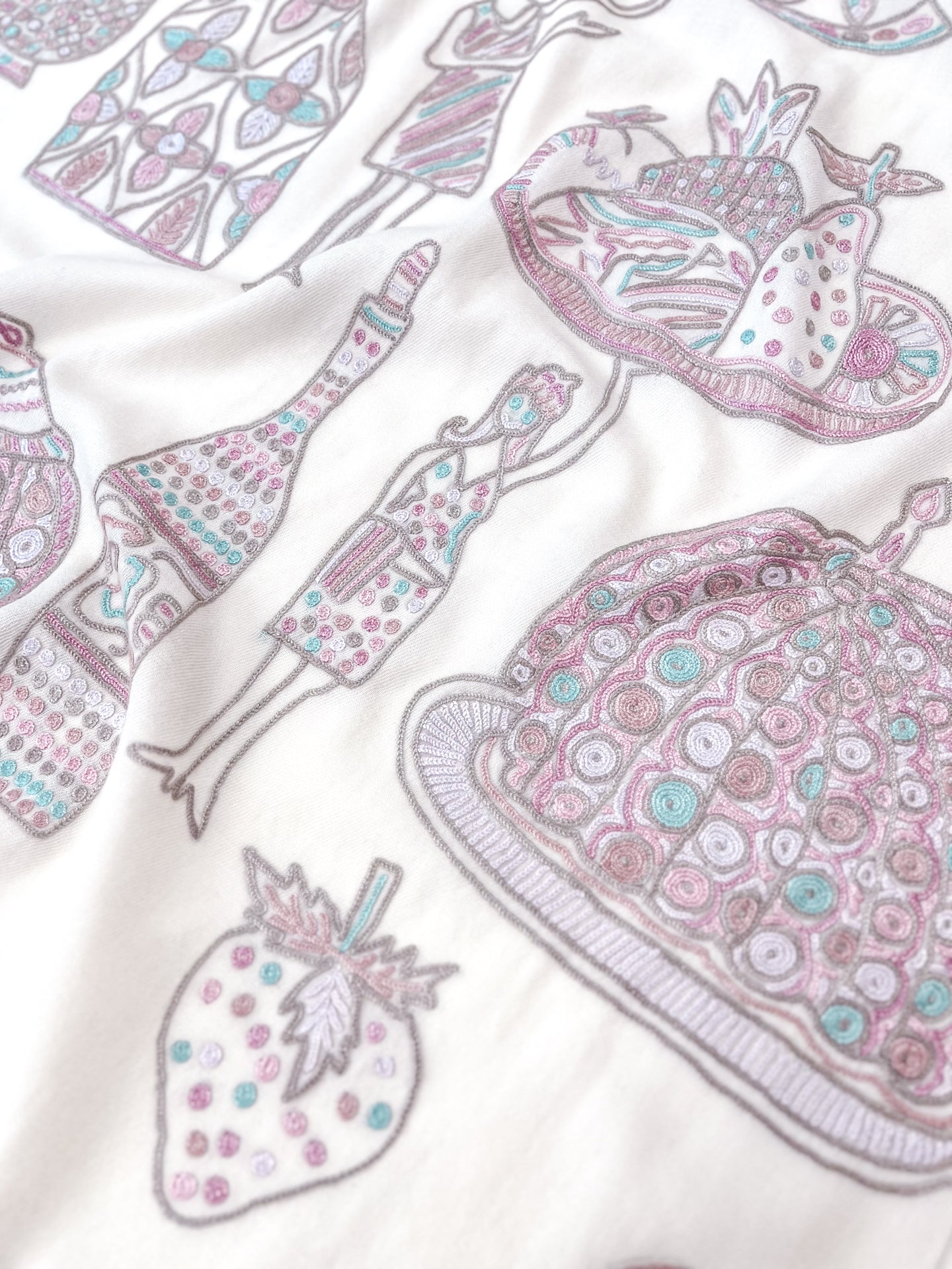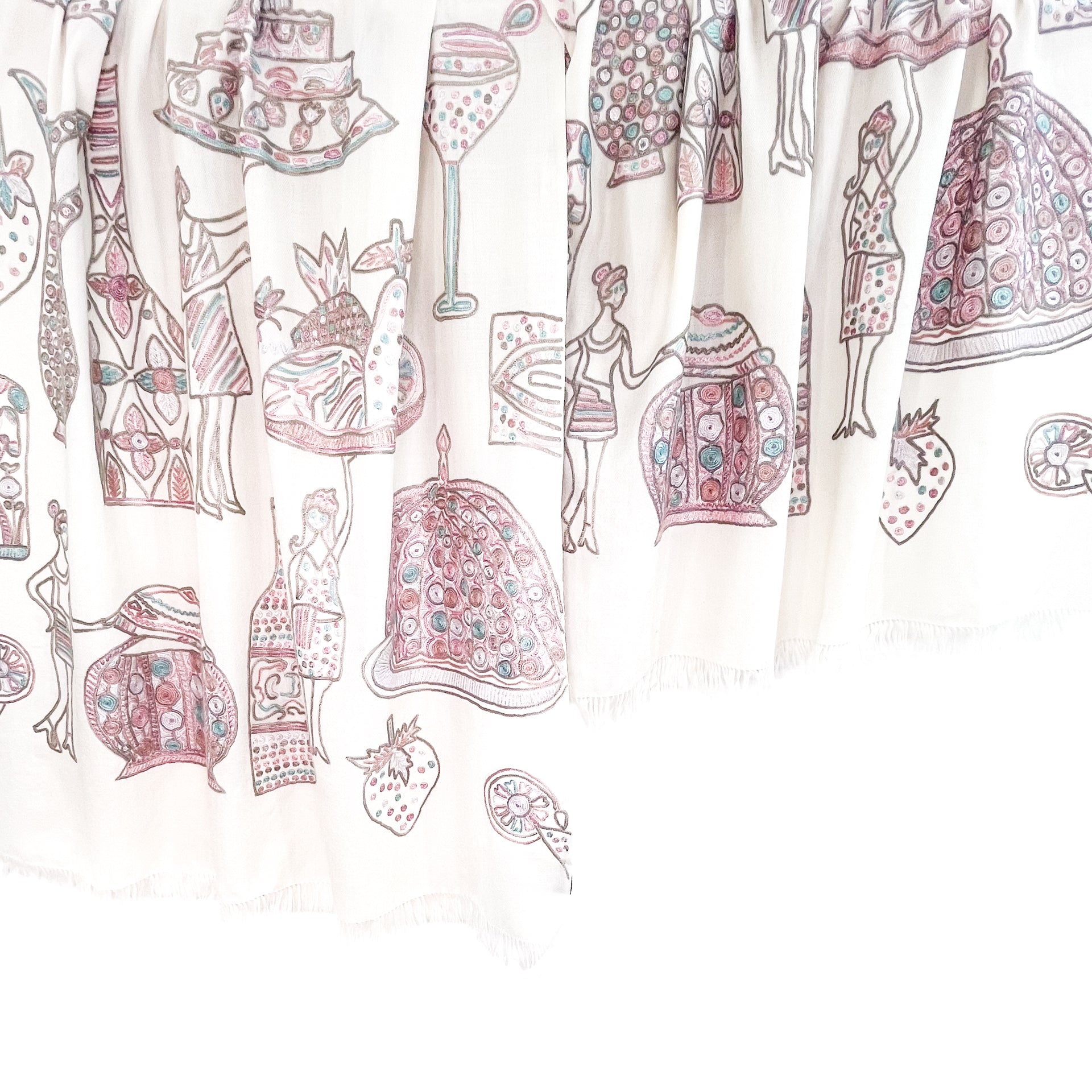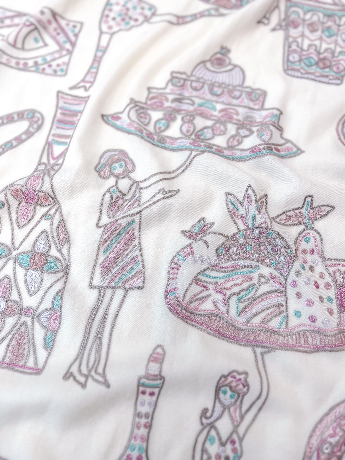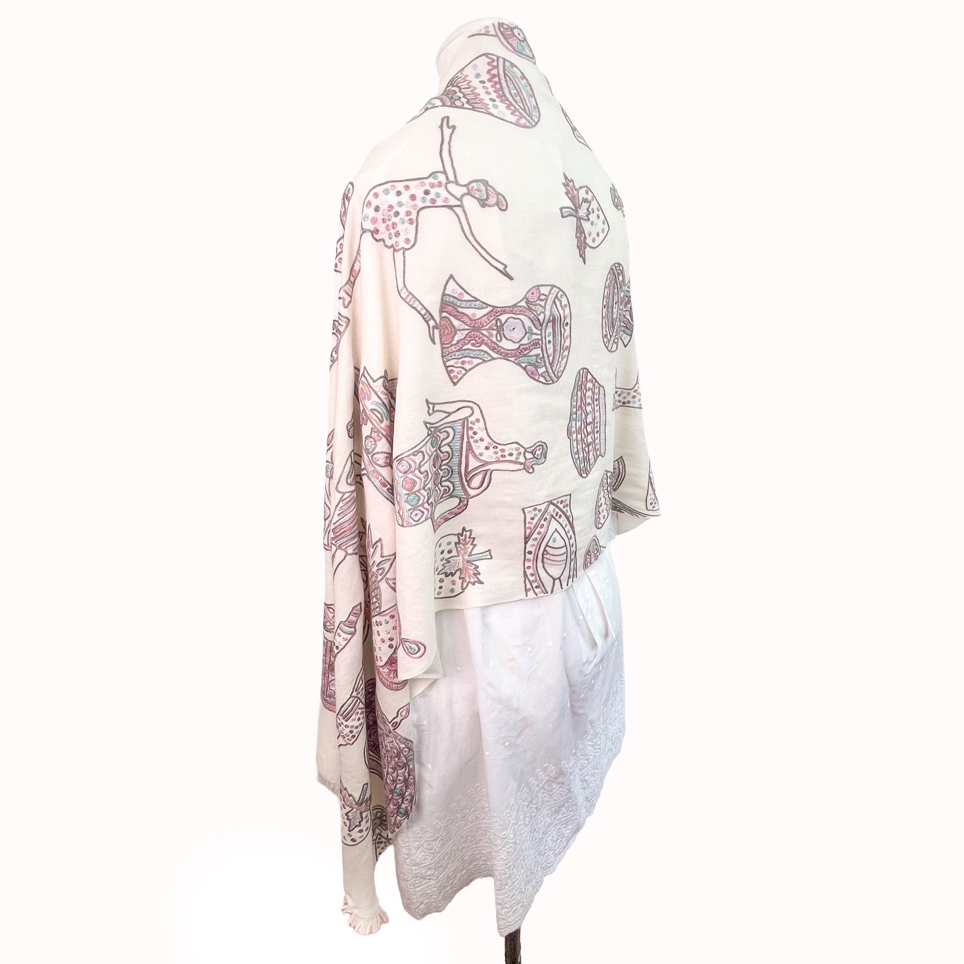 PARTY ファインウールシルク アリー手刺繍ストール (ホワイト)