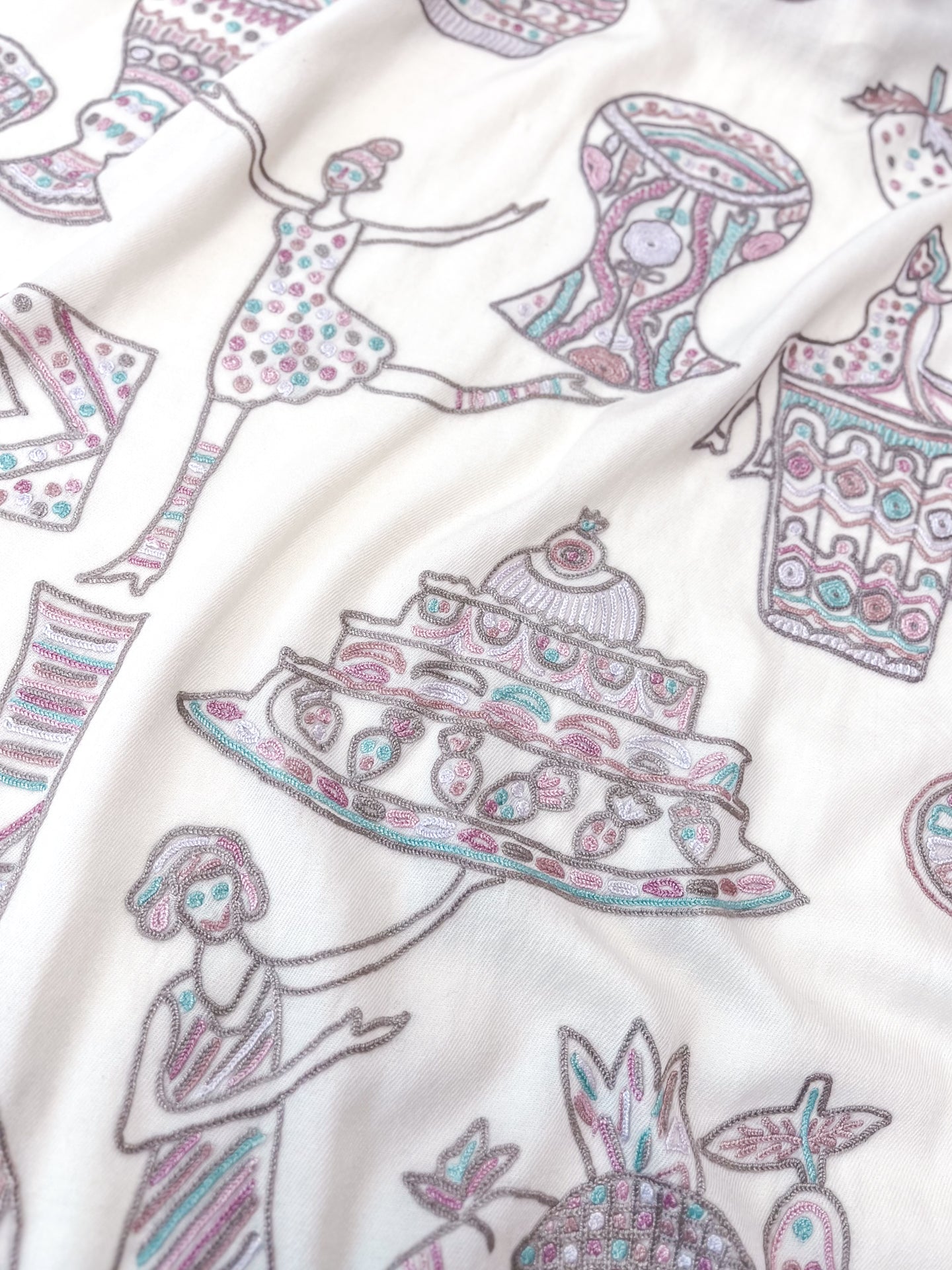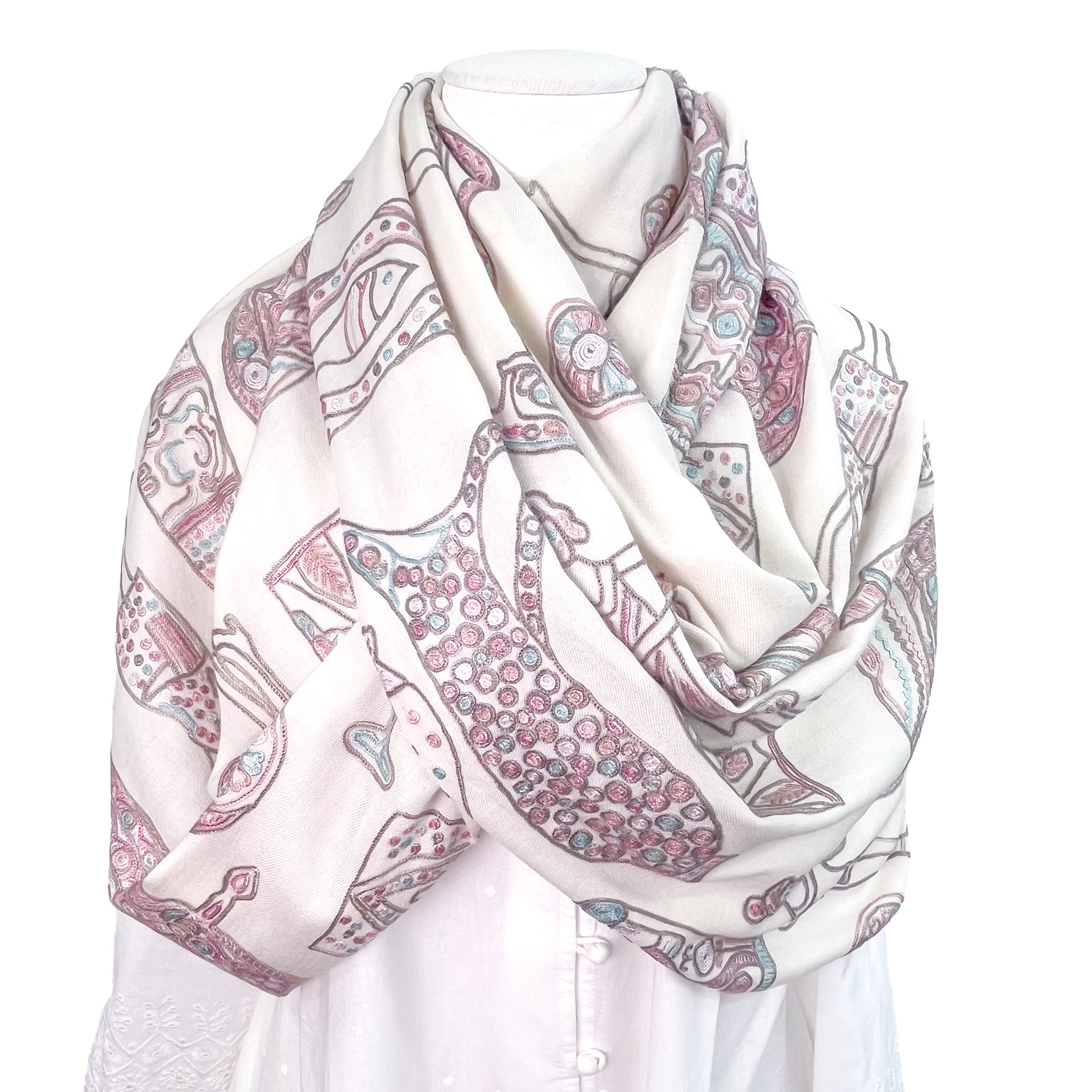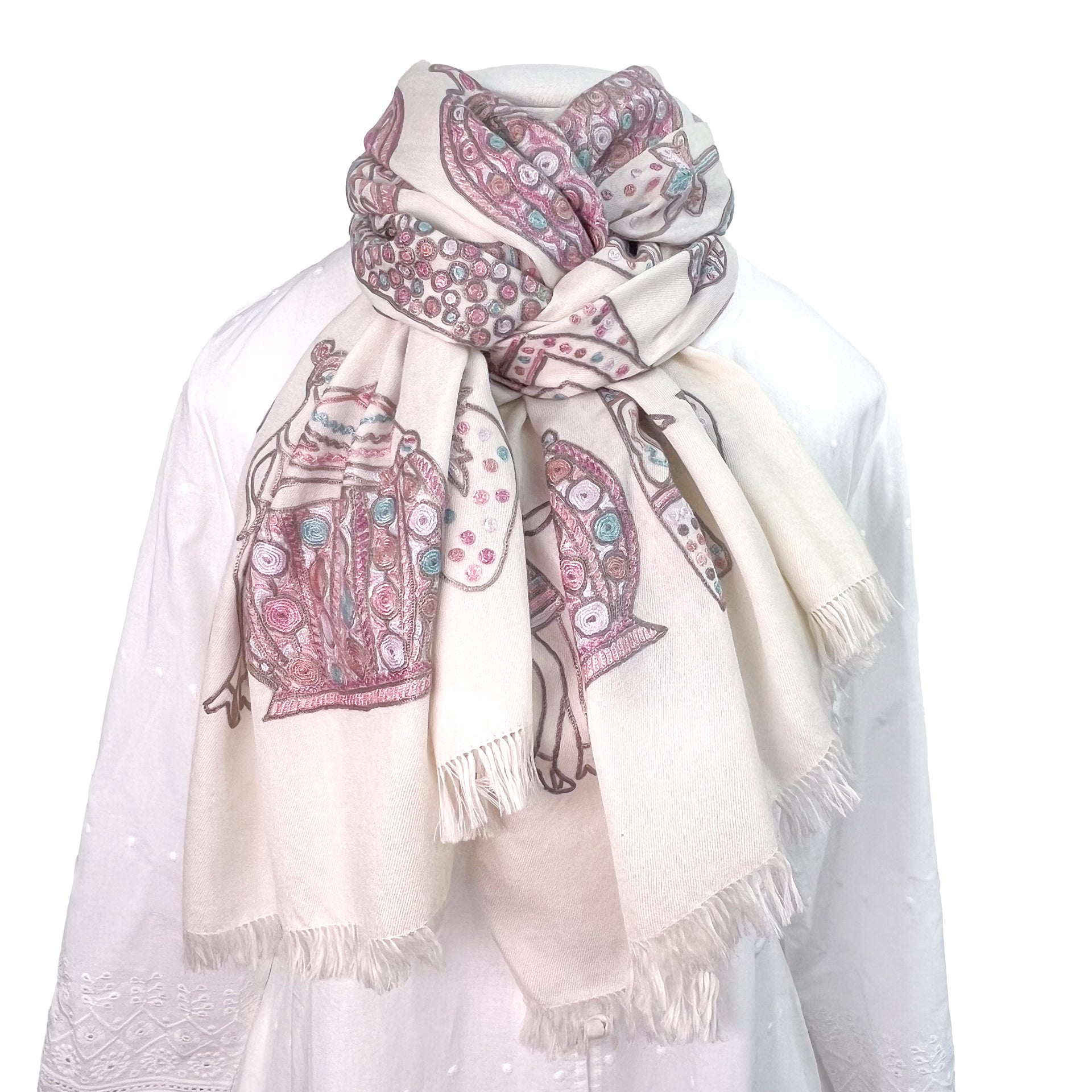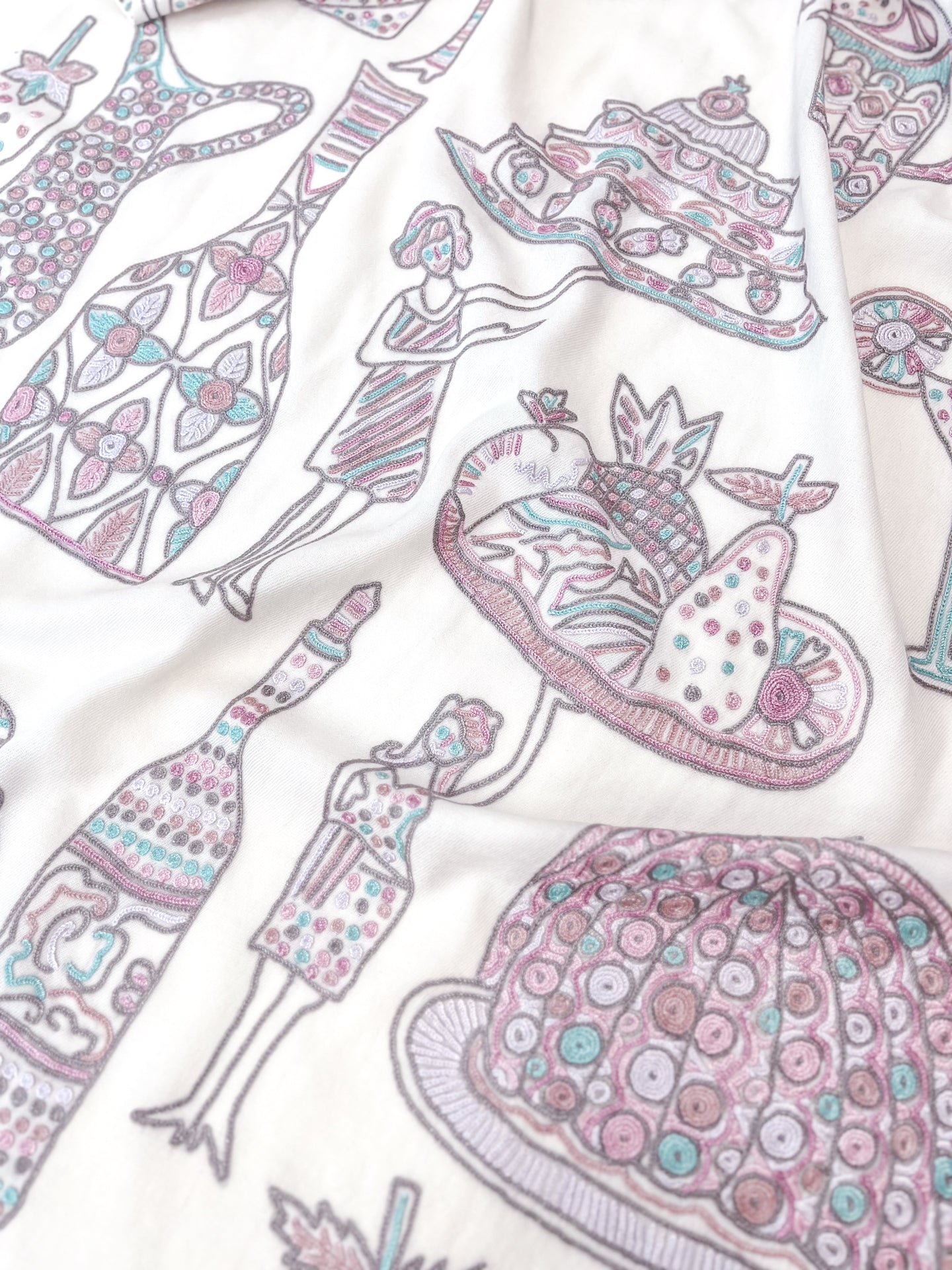 PARTY ファインウールシルク アリー手刺繍ストール (ホワイト)