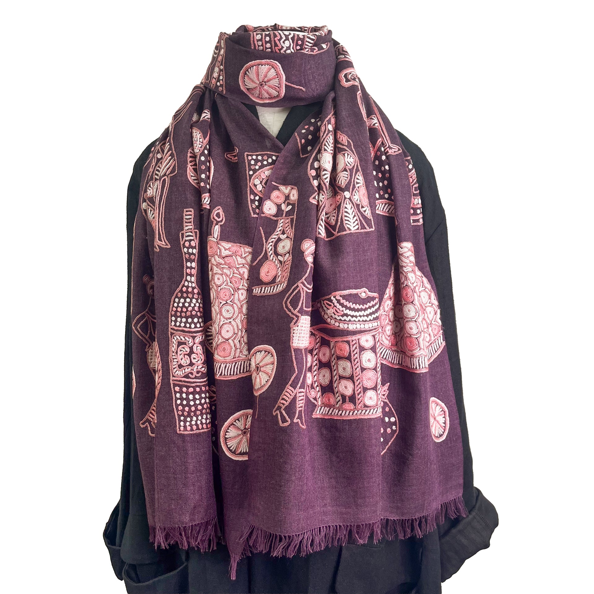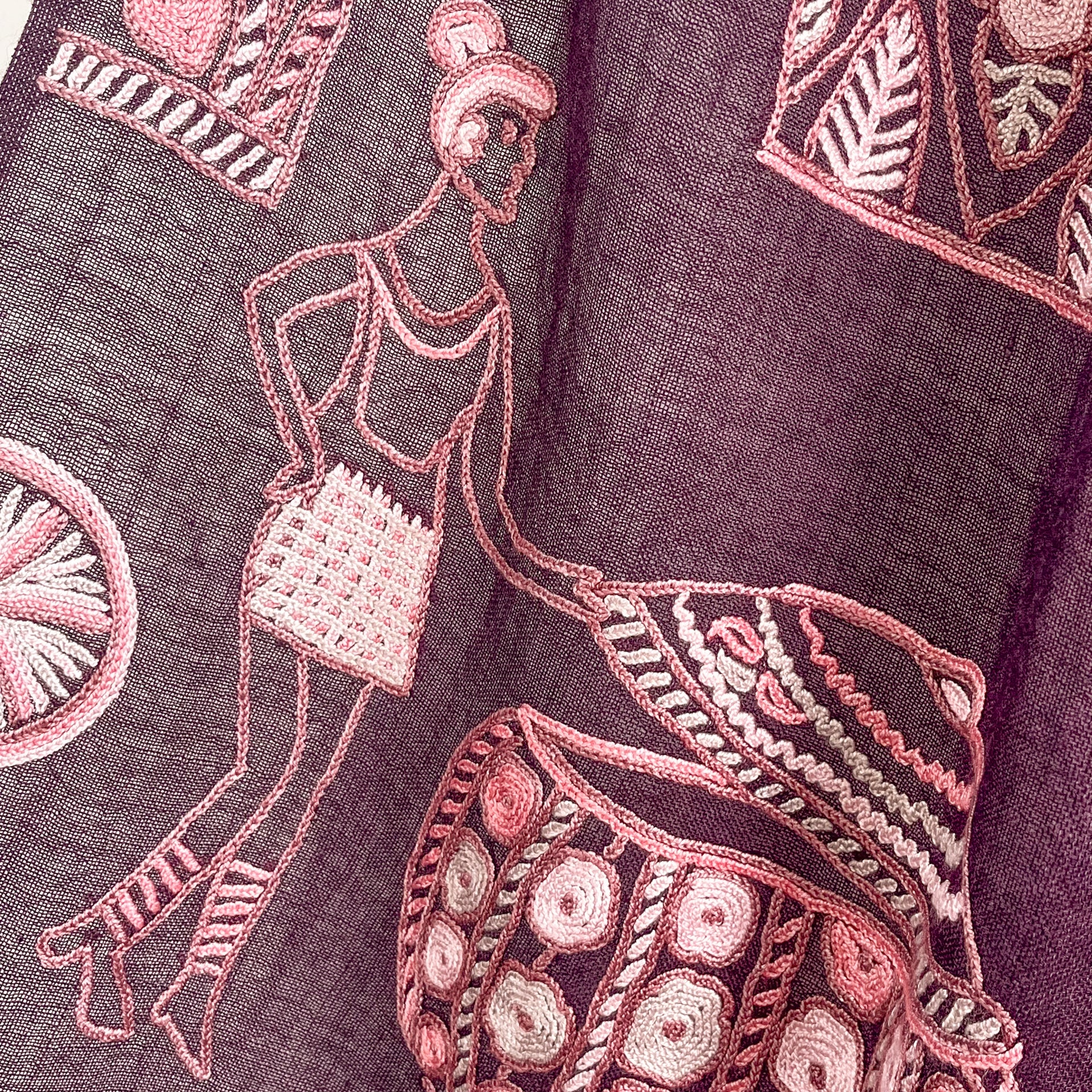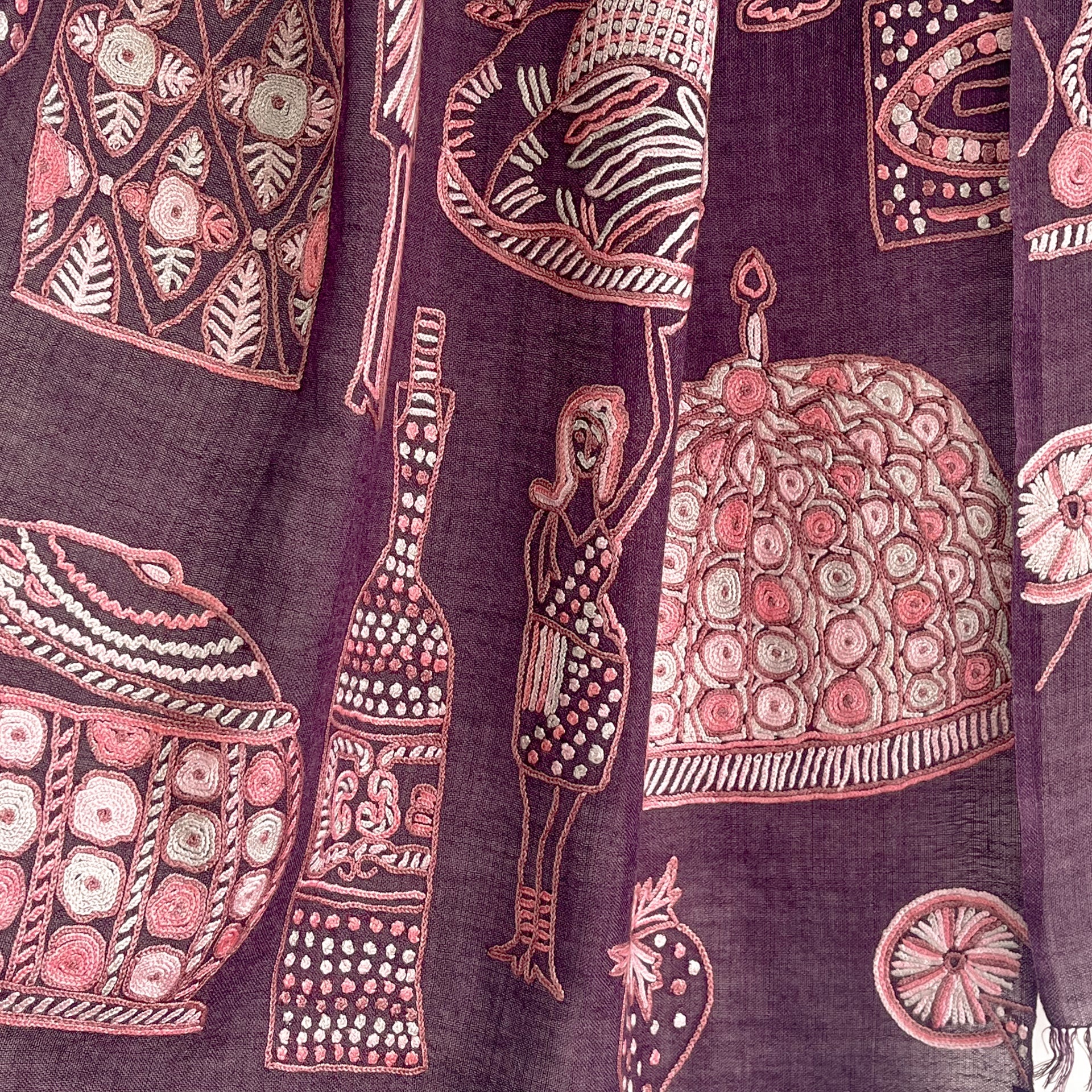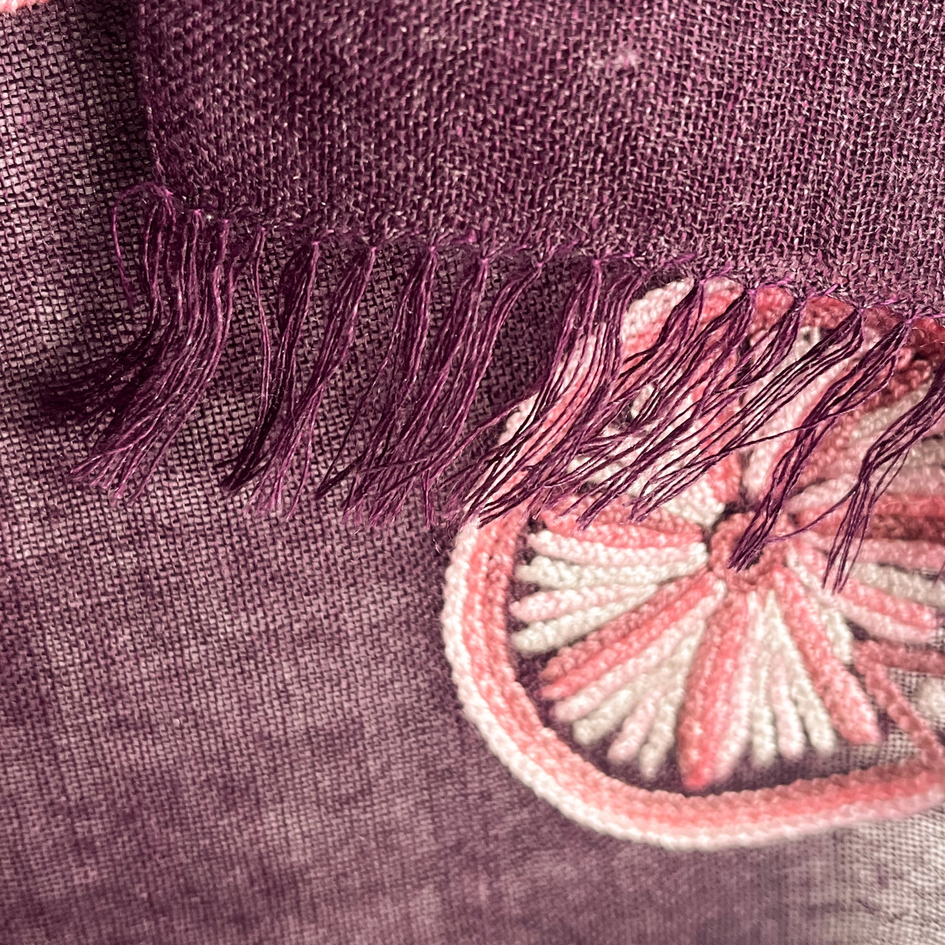 PARTY 薄手ウール&シルク アリー手刺繍ストール (ディープパープル)