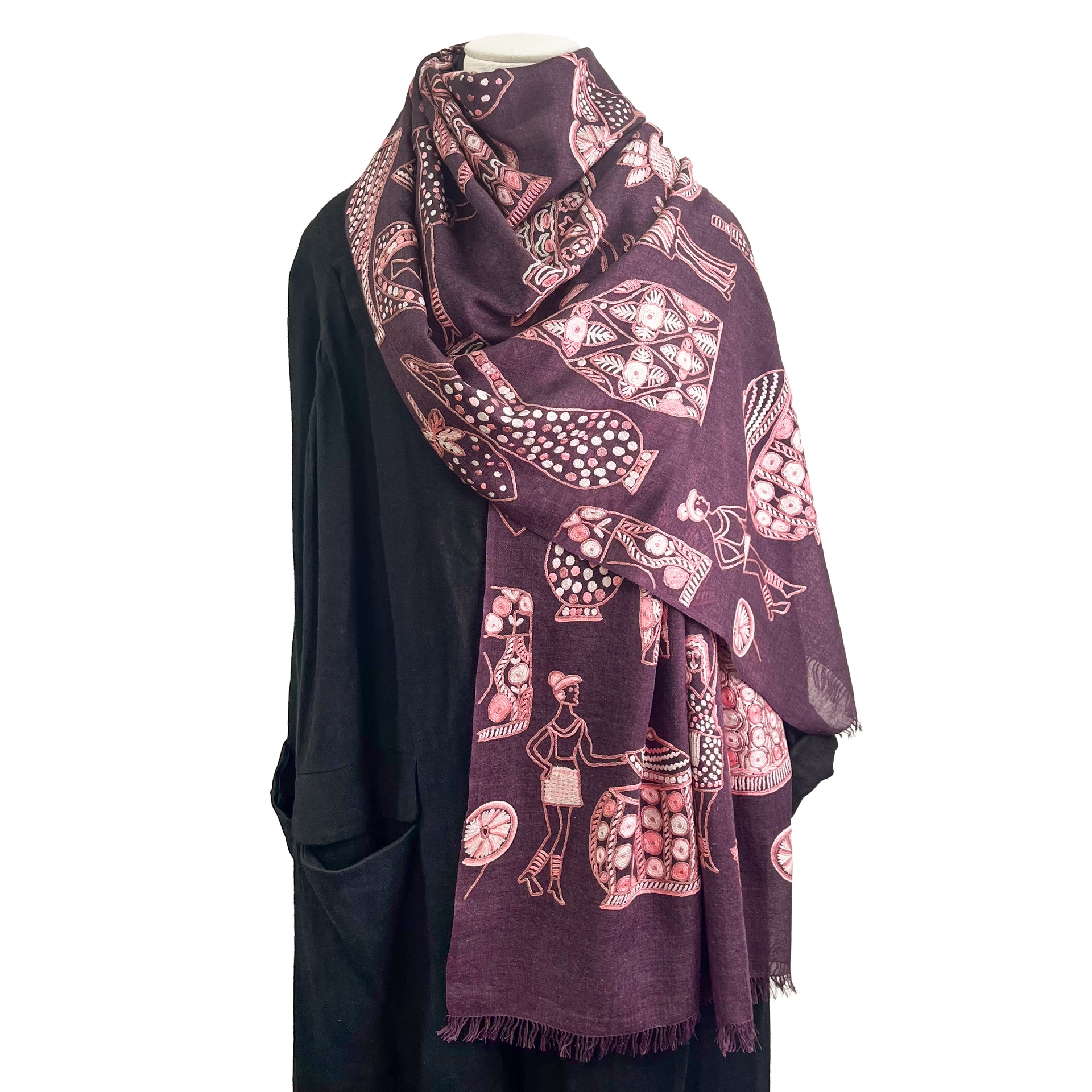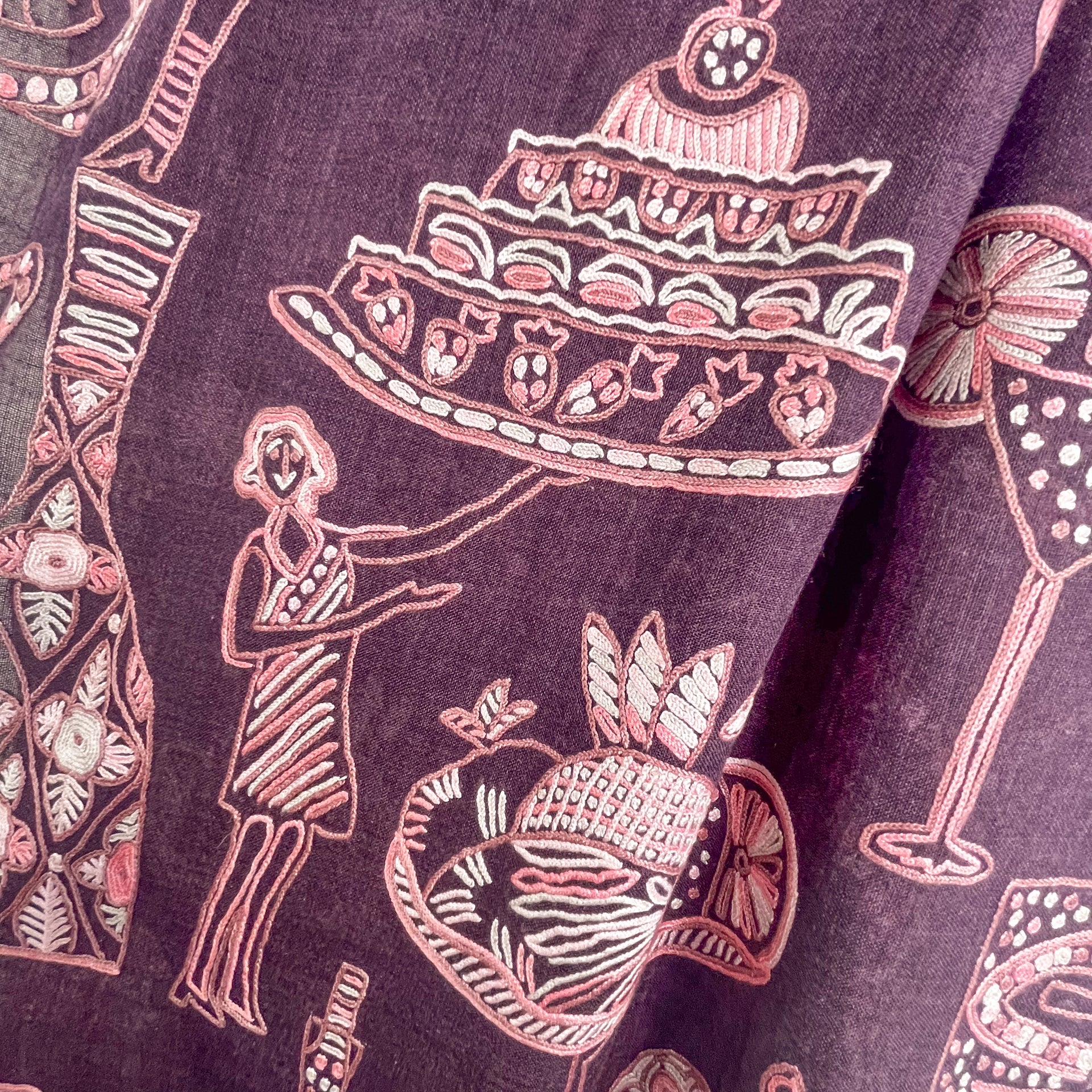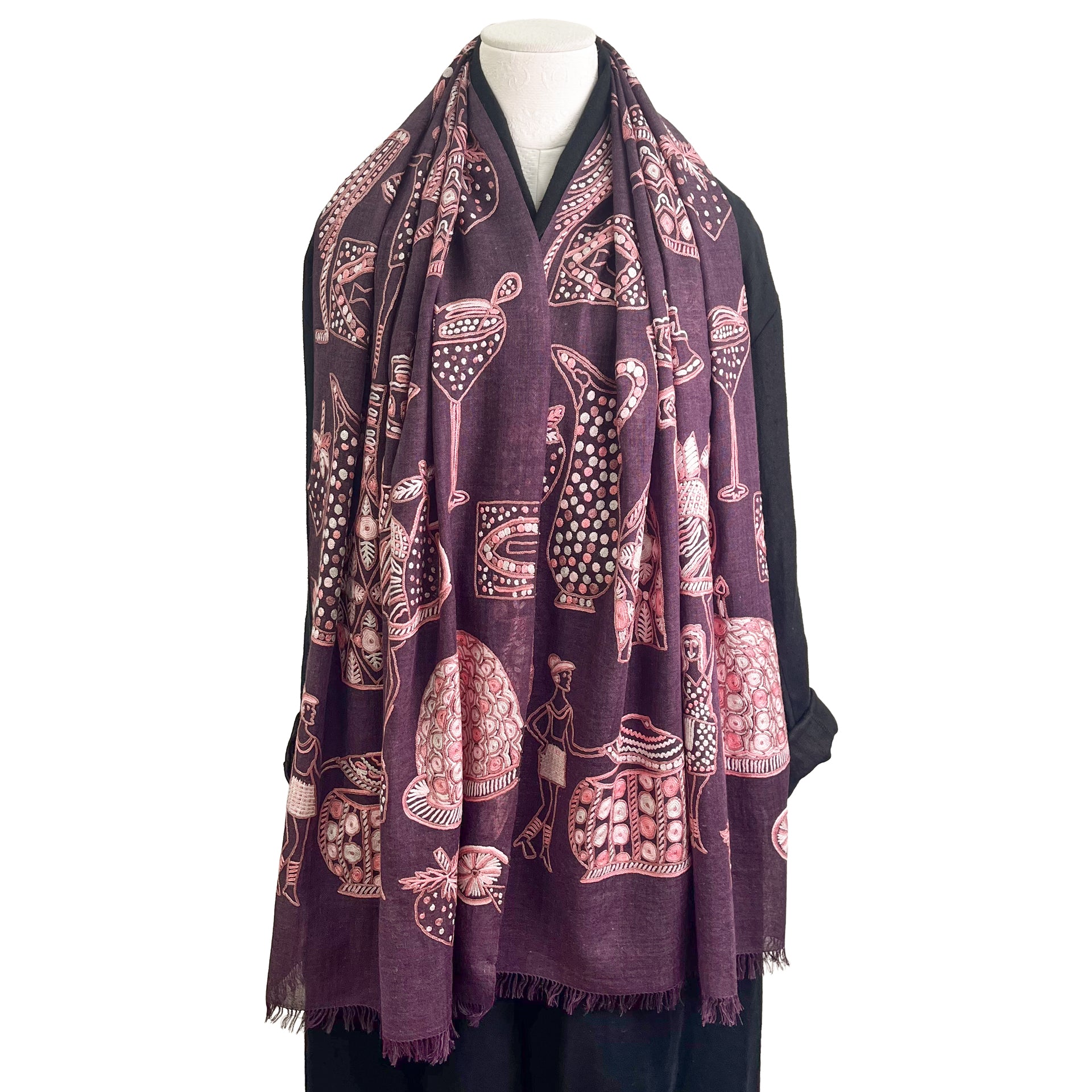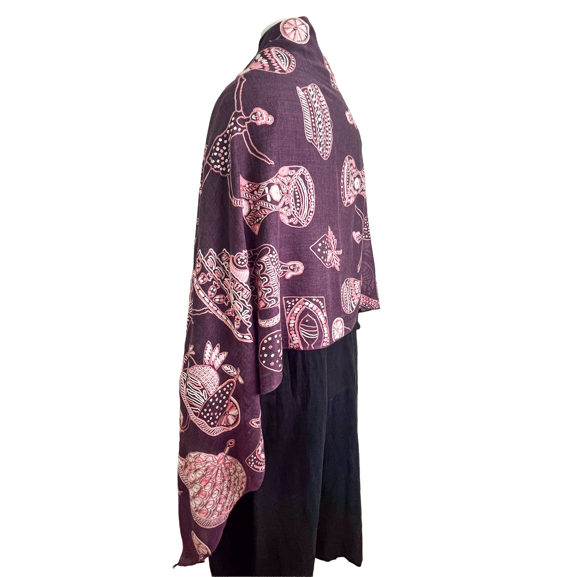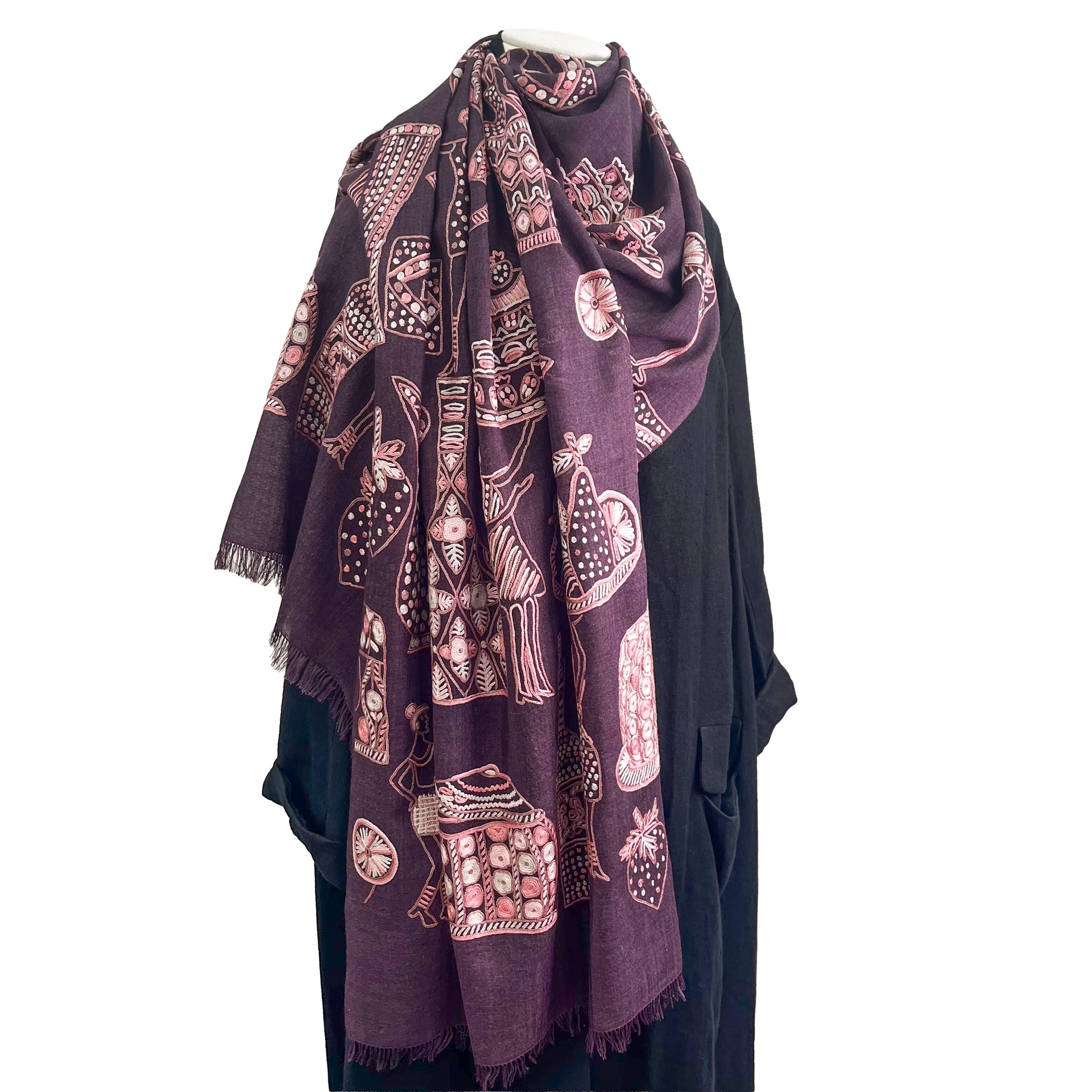 PARTY 薄手ウール&シルク アリー手刺繍ストール (ディープパープル)